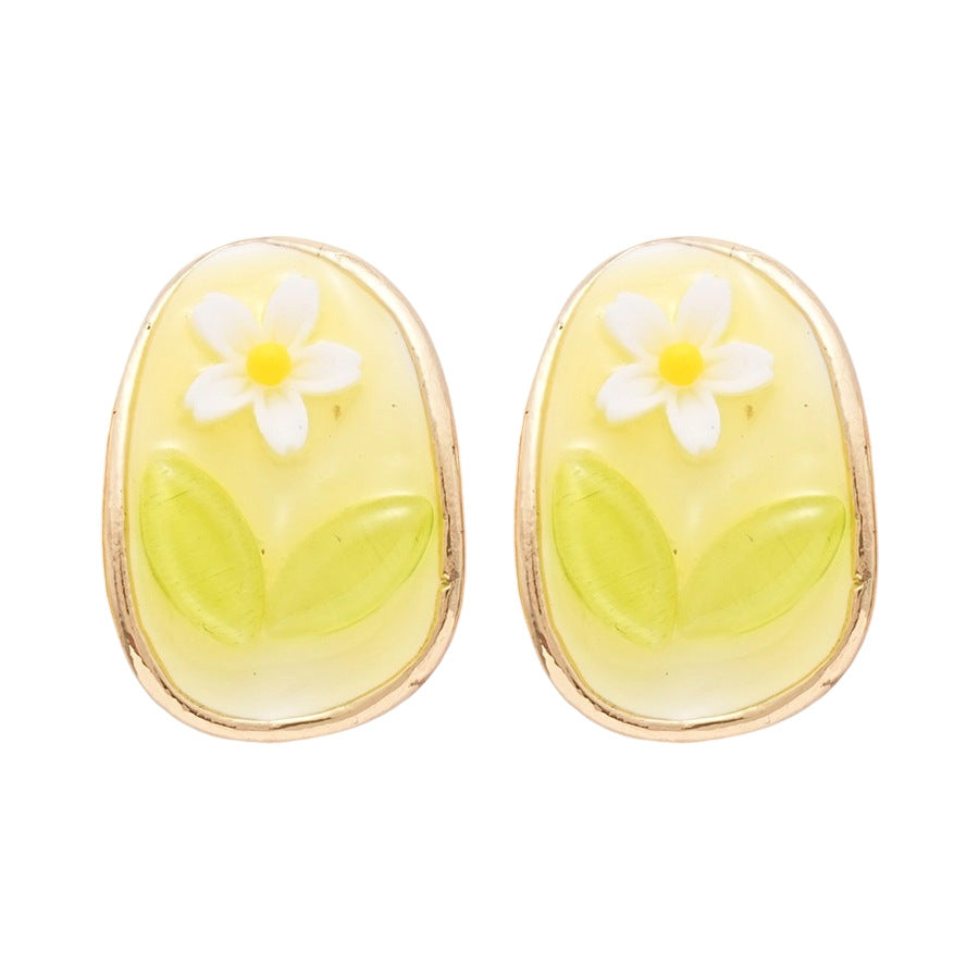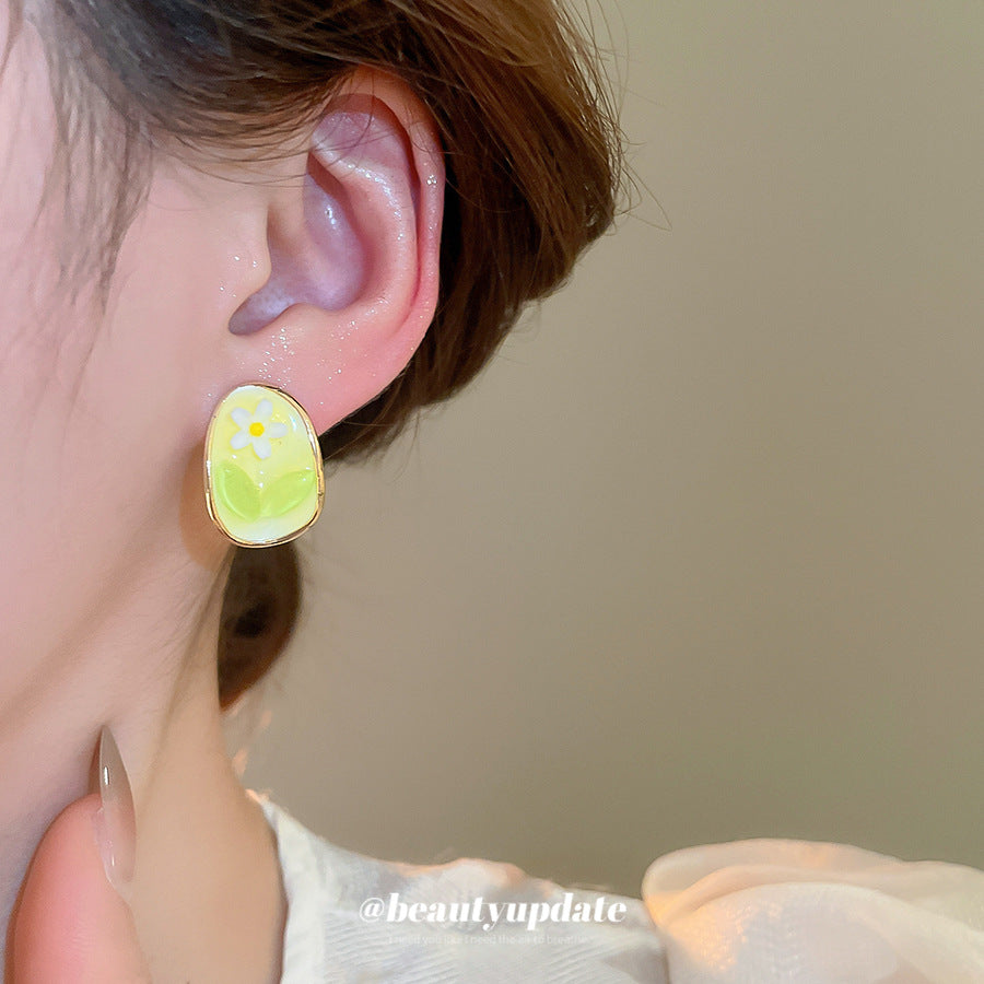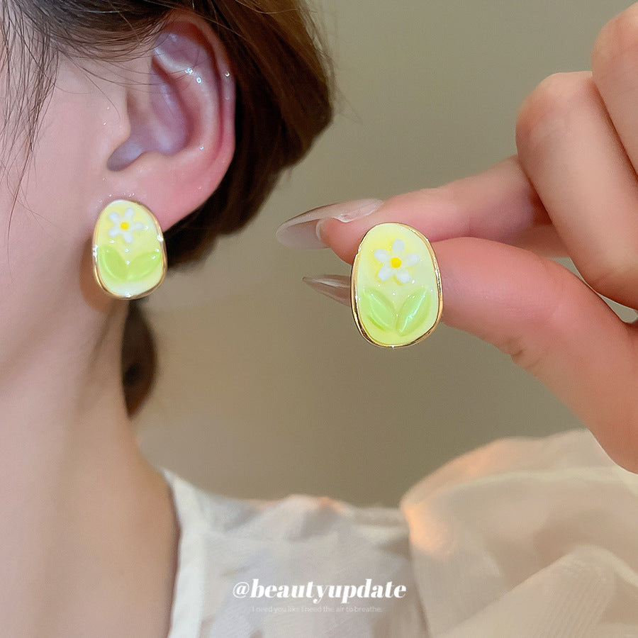 A廠【HE25955】925銀針橢圓形花朵樹葉滴油耳環森系清新甜美耳環時尚耳環設計感小眾 25.04-3