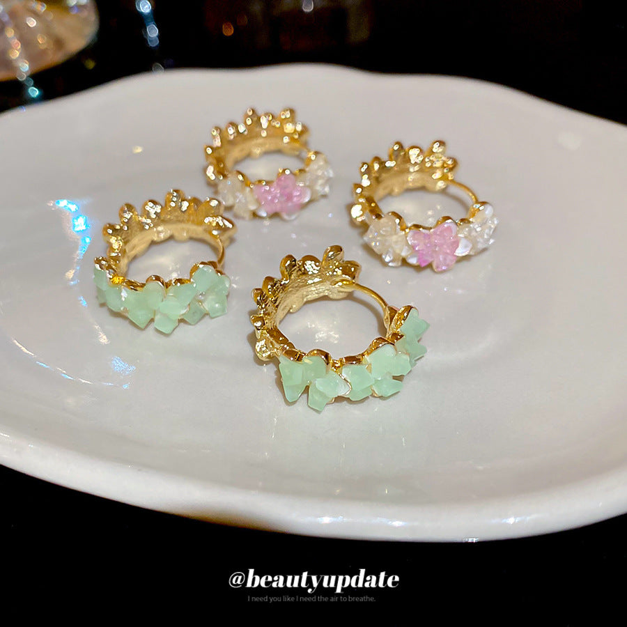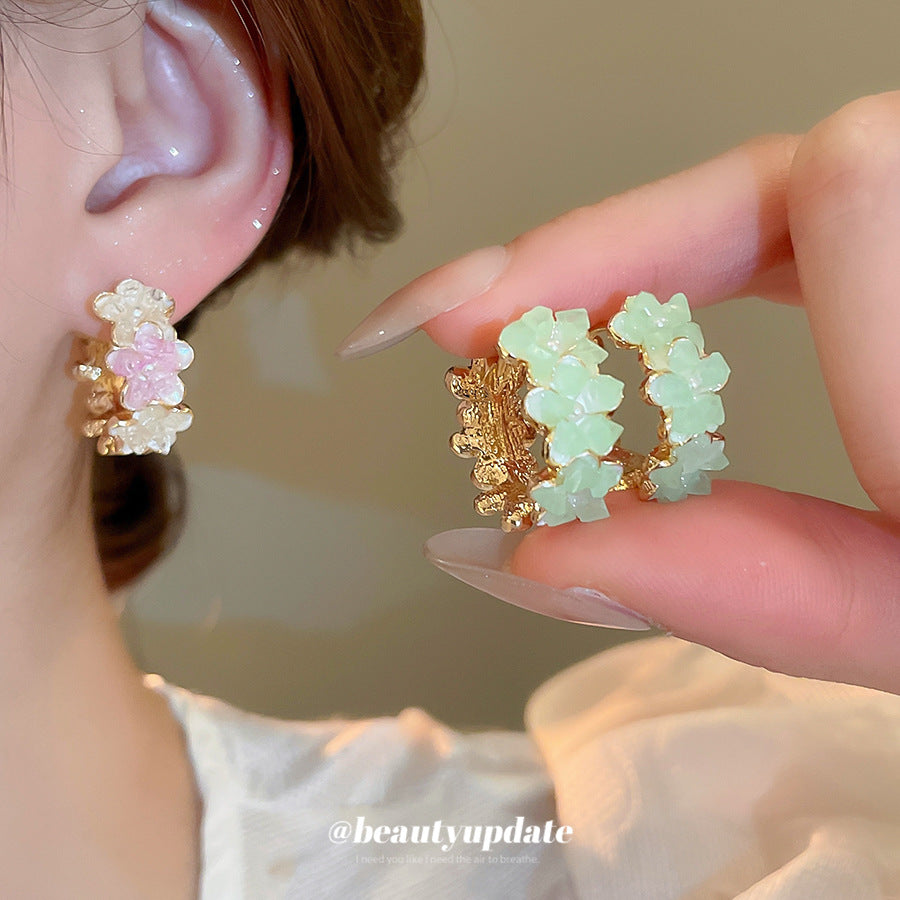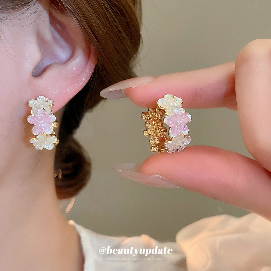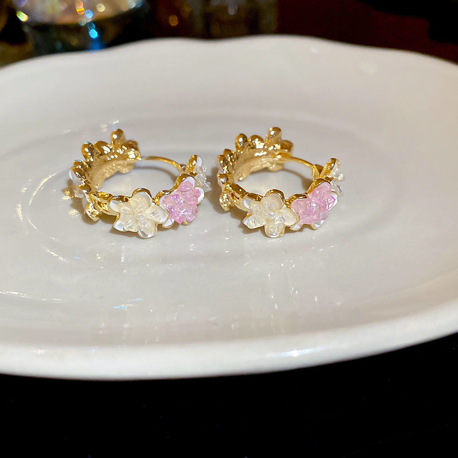 A廠【HE26024】春夏清新甜美花朵水晶耳環女2025新款簡約耳環輕奢高級感耳飾 25.04-4