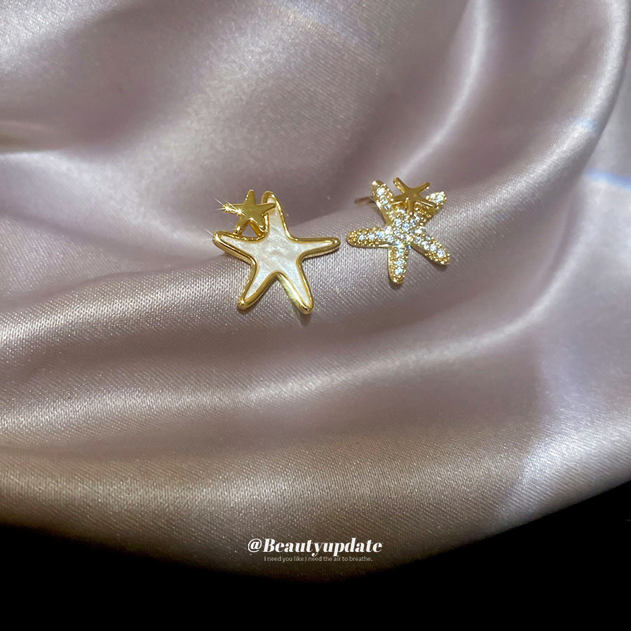 A廠【HE26041】18k真金電鍍925銀針鋯石貝母海星耳環奢華氣質耳環輕奢高級感耳飾女 25.04-3
