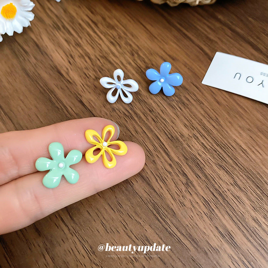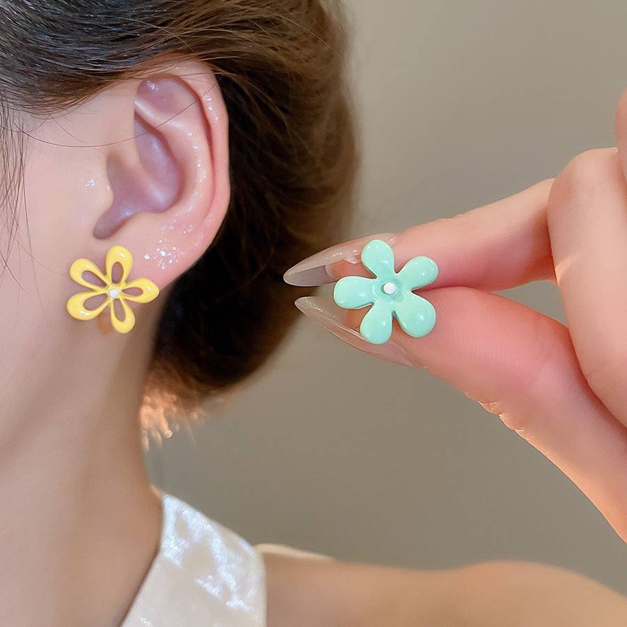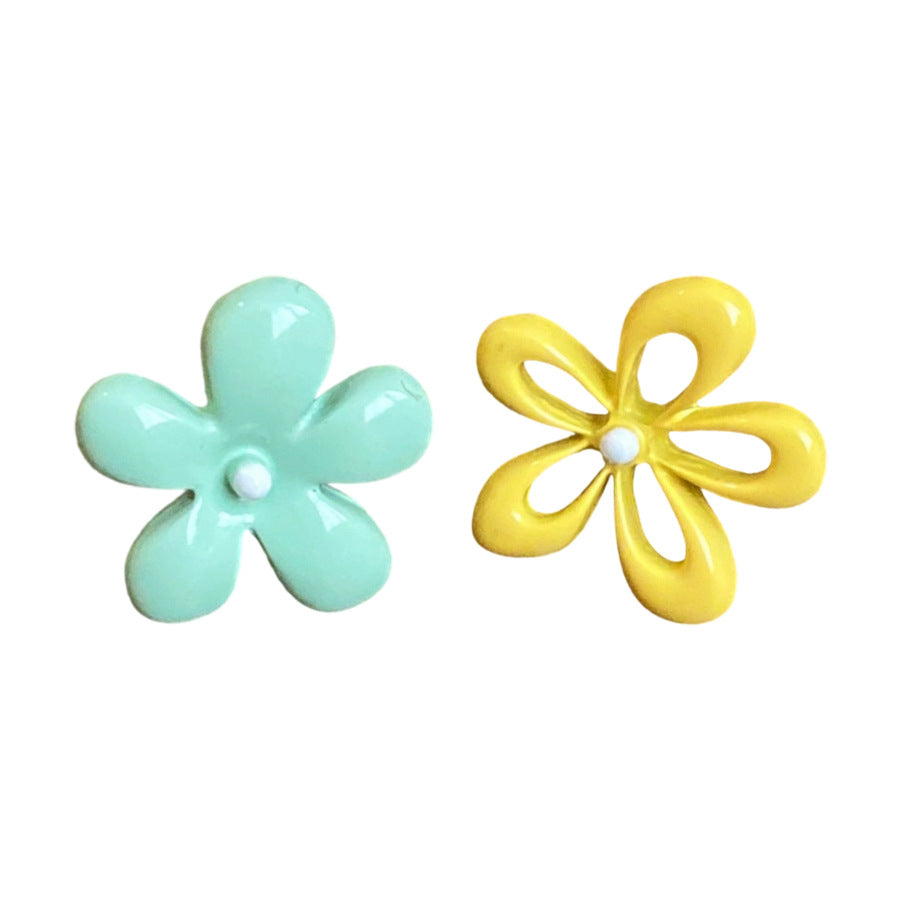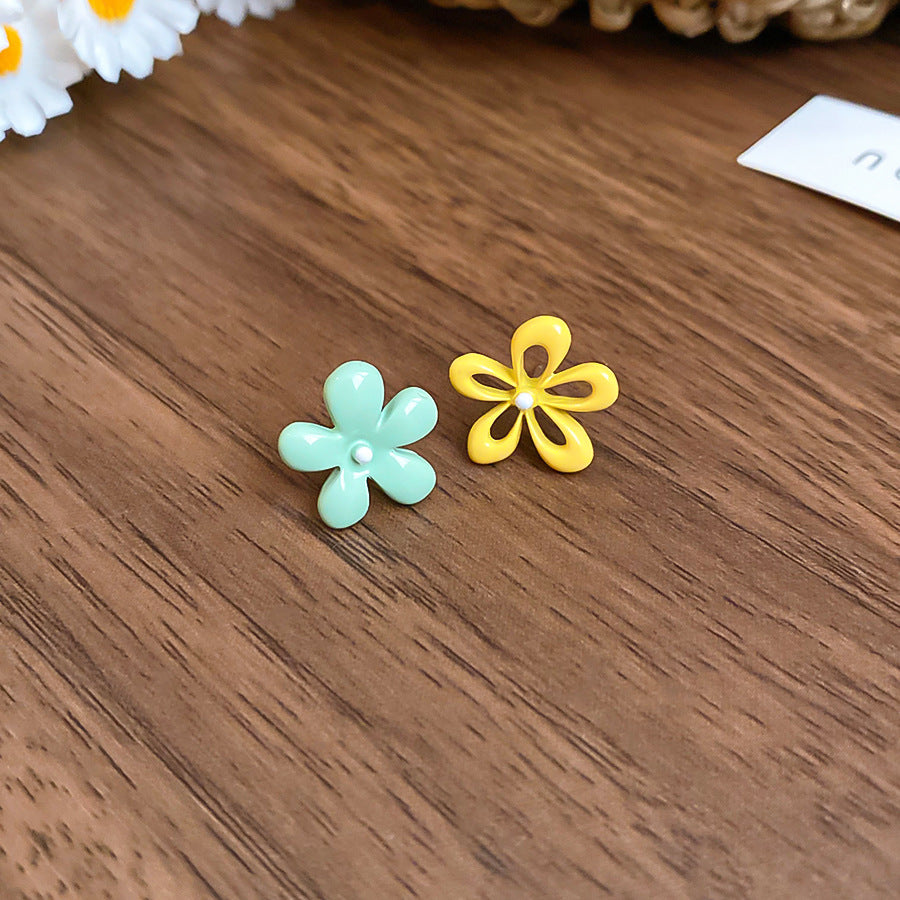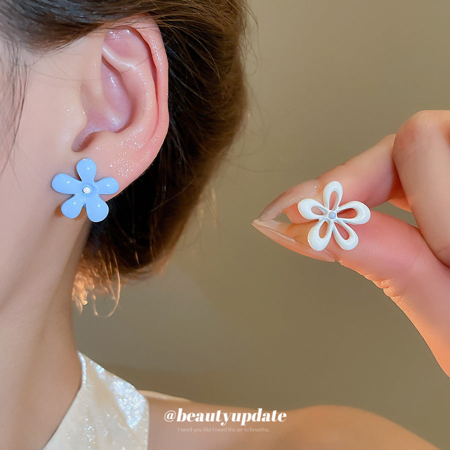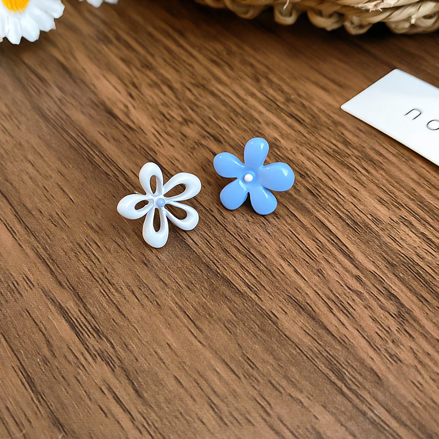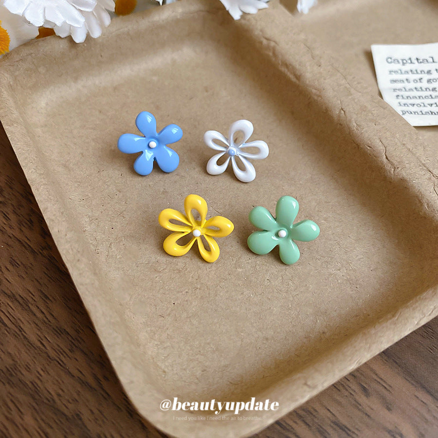 A廠【HE26054】銀色噴漆撞色花朵耳環春夏甜美清新耳環時尚高級感耳飾設計感小眾 25.04-3