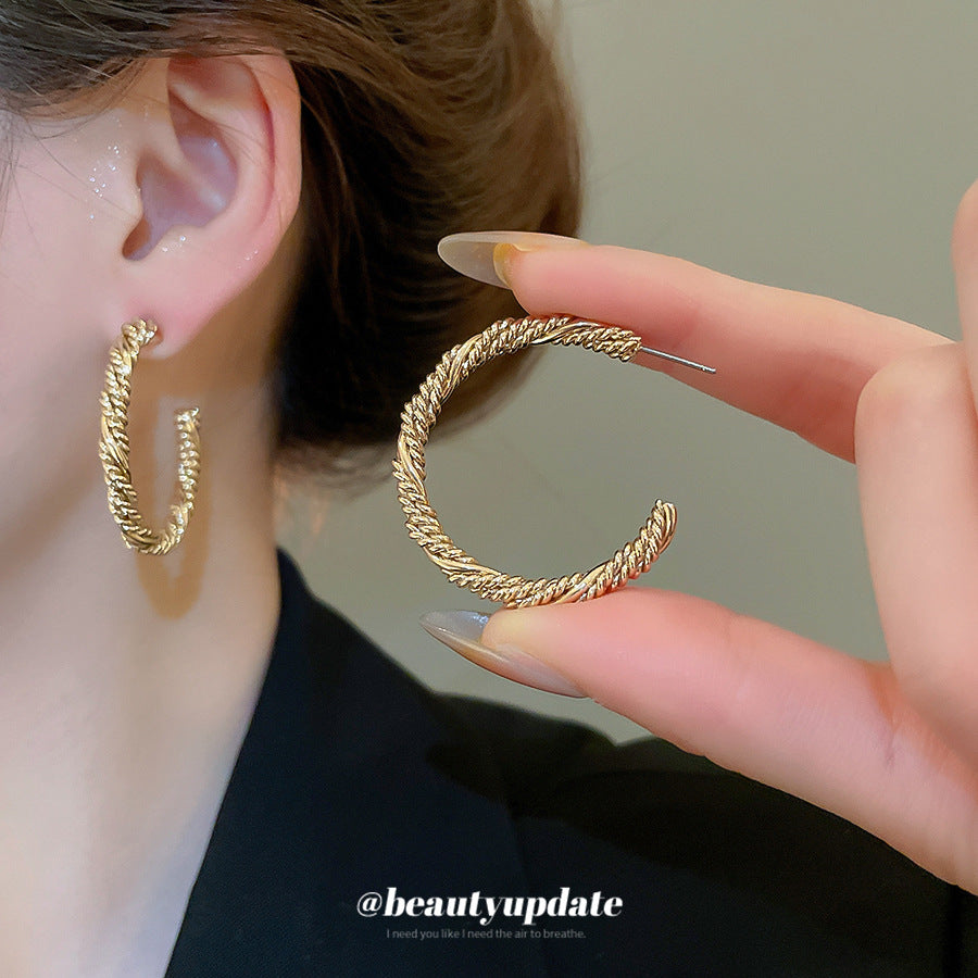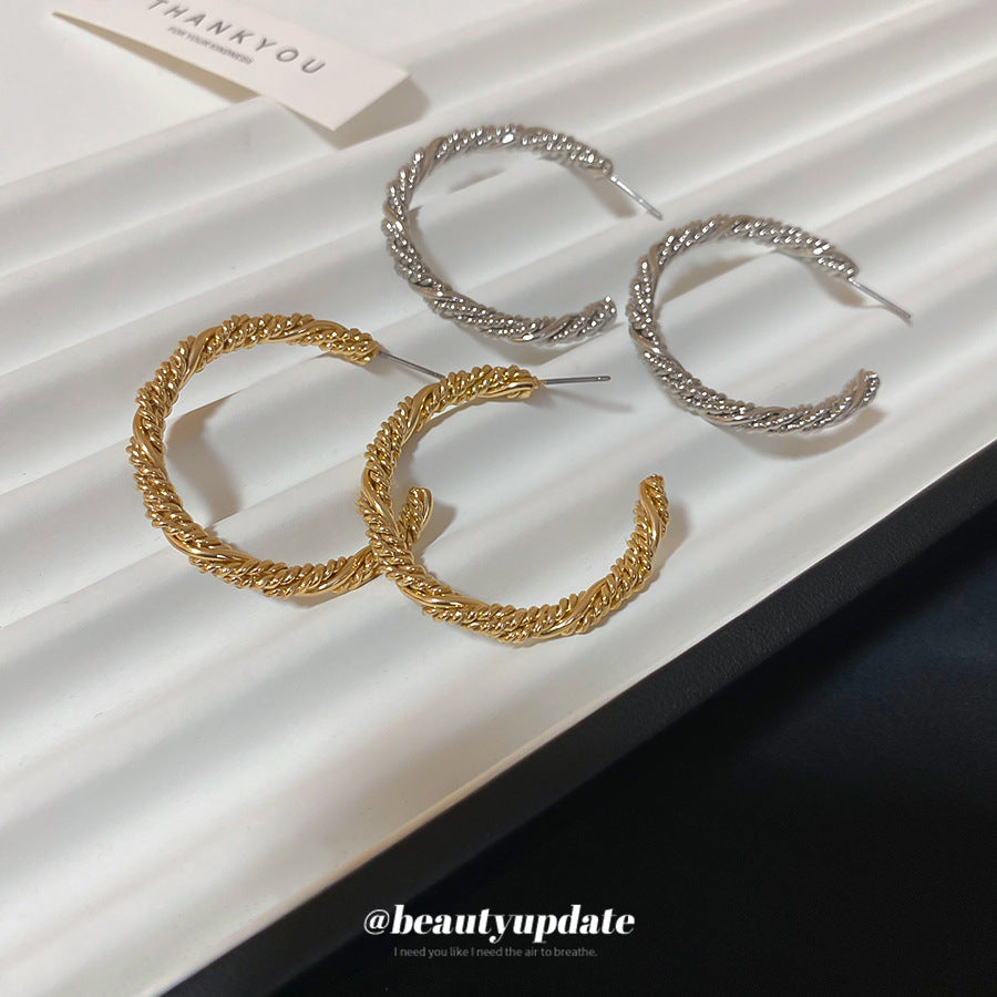 A廠【HE26071】925銀針不規則扭曲纏繞C型耳環輕奢高級感耳環歐美簡約時尚耳環耳飾 25.04-4