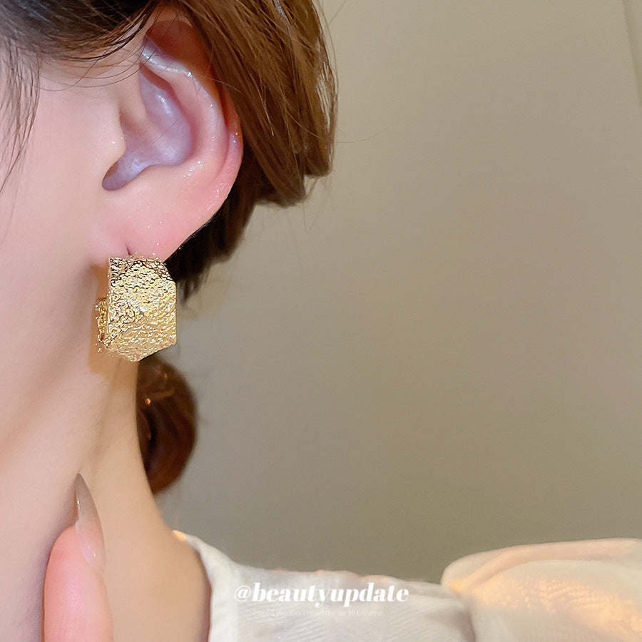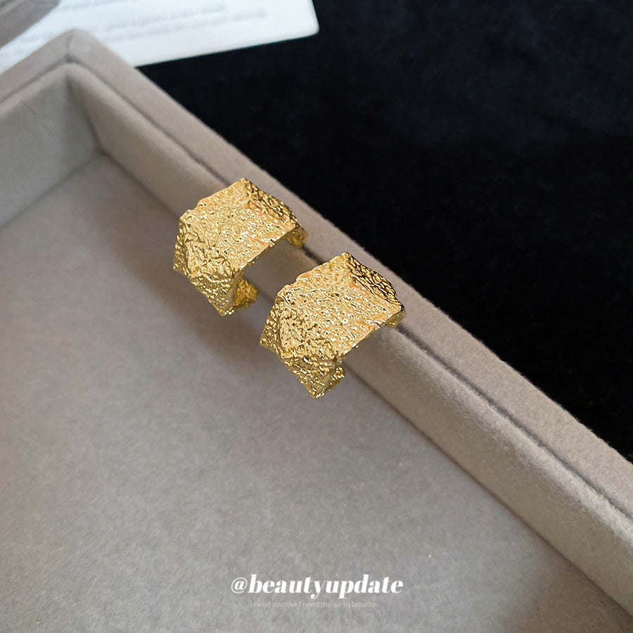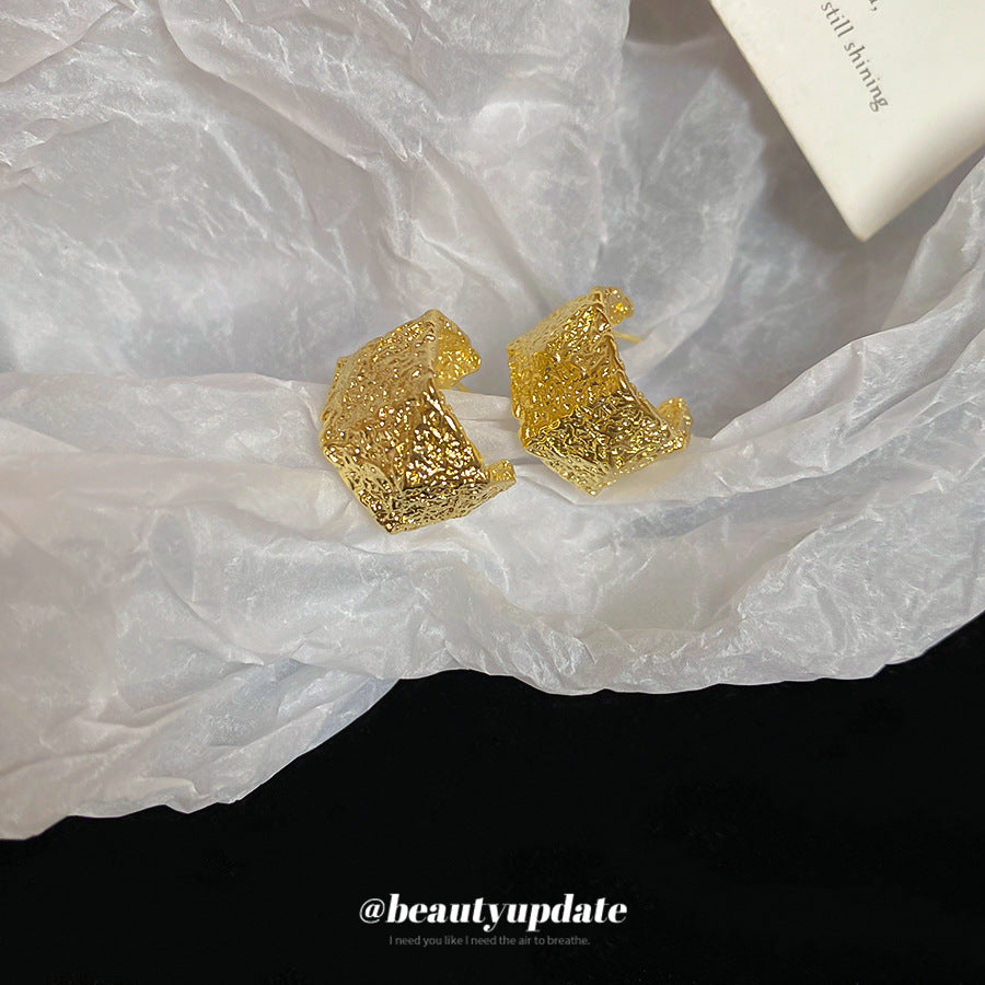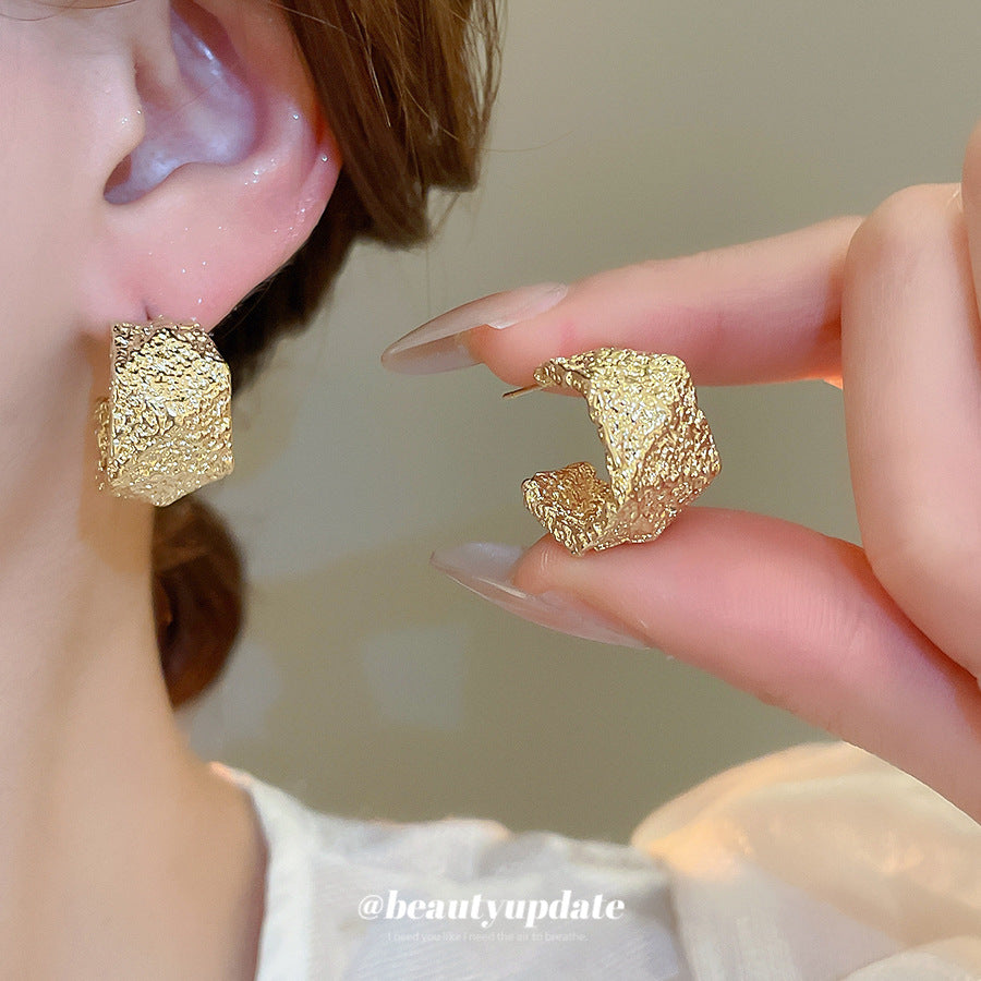 A廠【HE26092】925銀針褶皺幾何C型耳環個性獨特設計耳環輕奢高級感耳飾設計感小眾 25.04-4
