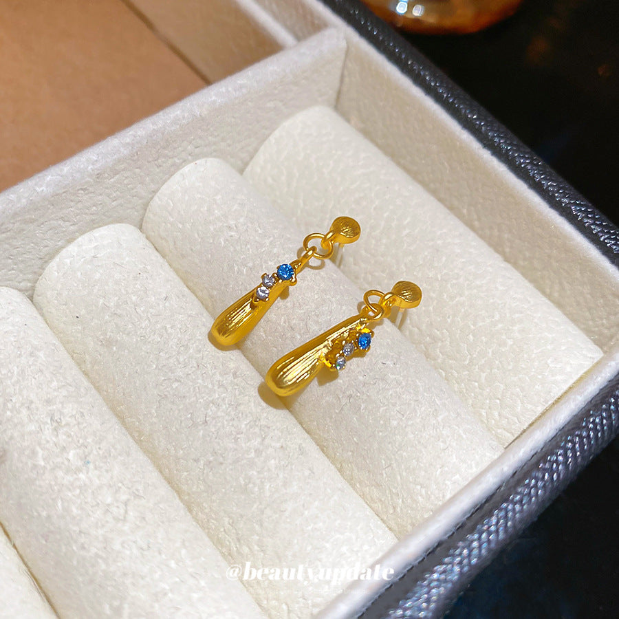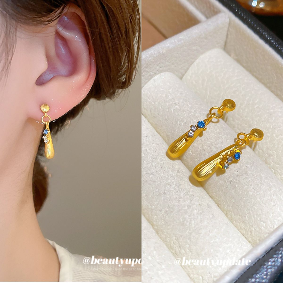 A廠【HE26100】925銀針鑲鑽拉絲水滴耳環法式復古時尚百搭耳環輕奢高級感氣質耳環女 25.04-4