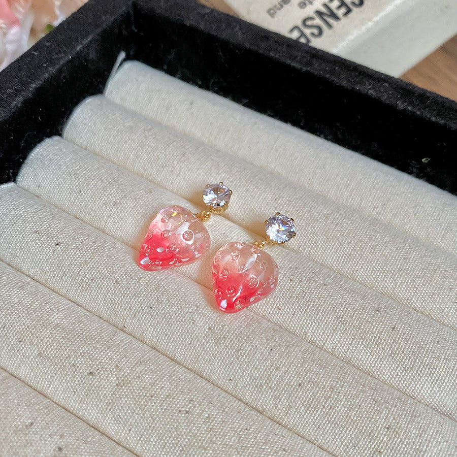 A廠【HE26162】925銀針鋯石樹脂草莓耳環韓國清新甜美耳環時尚百搭耳飾設計感小眾女 25.04-4