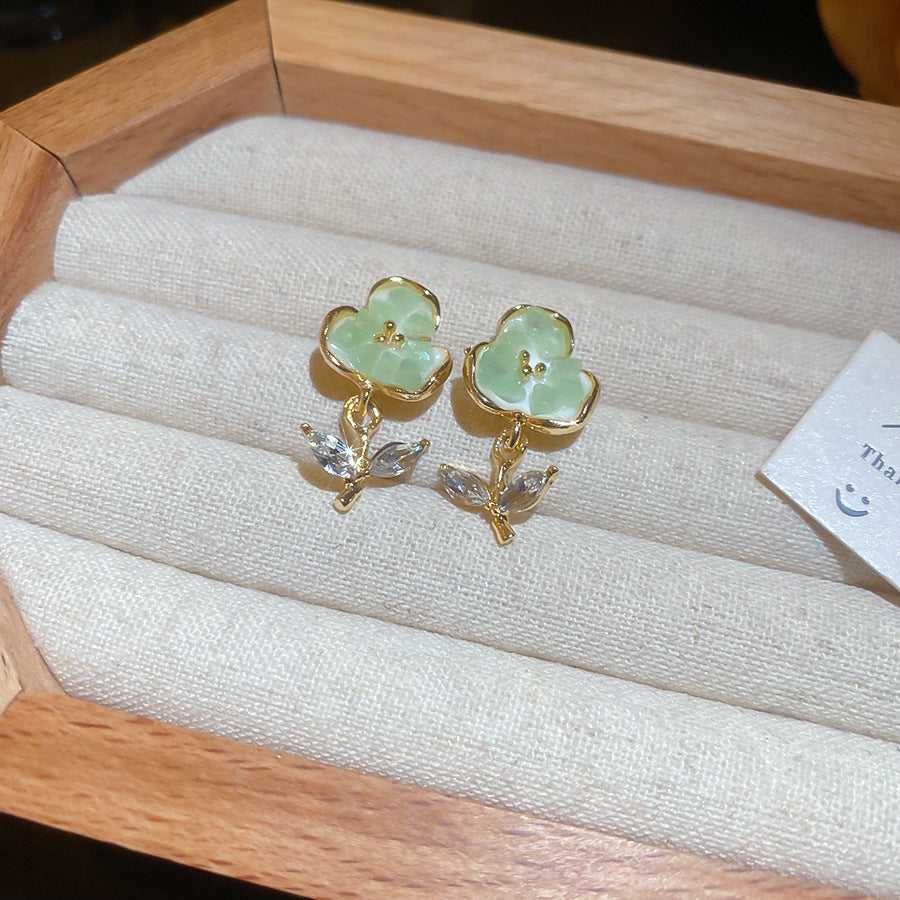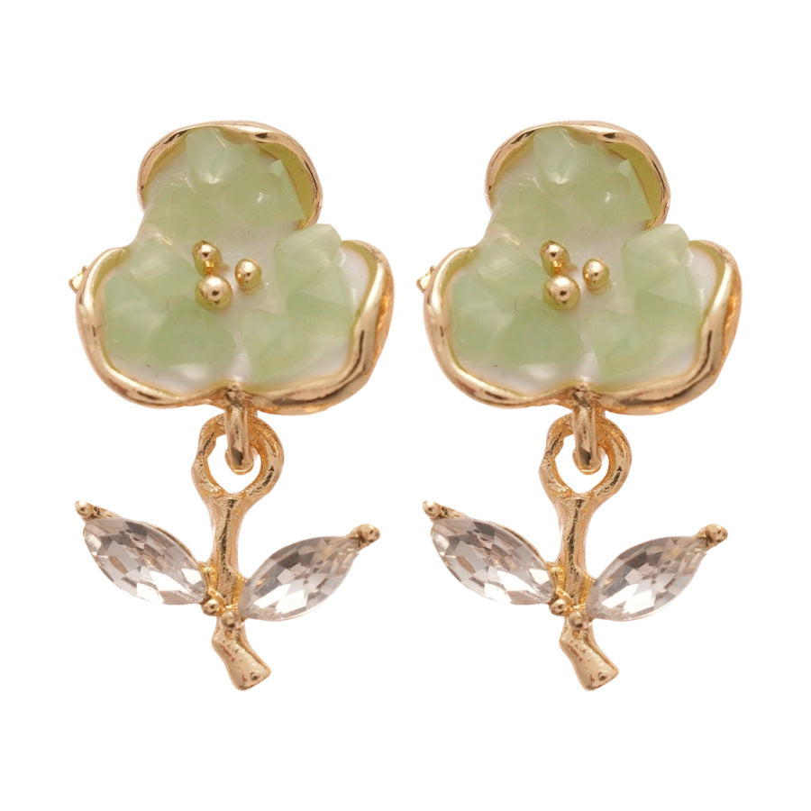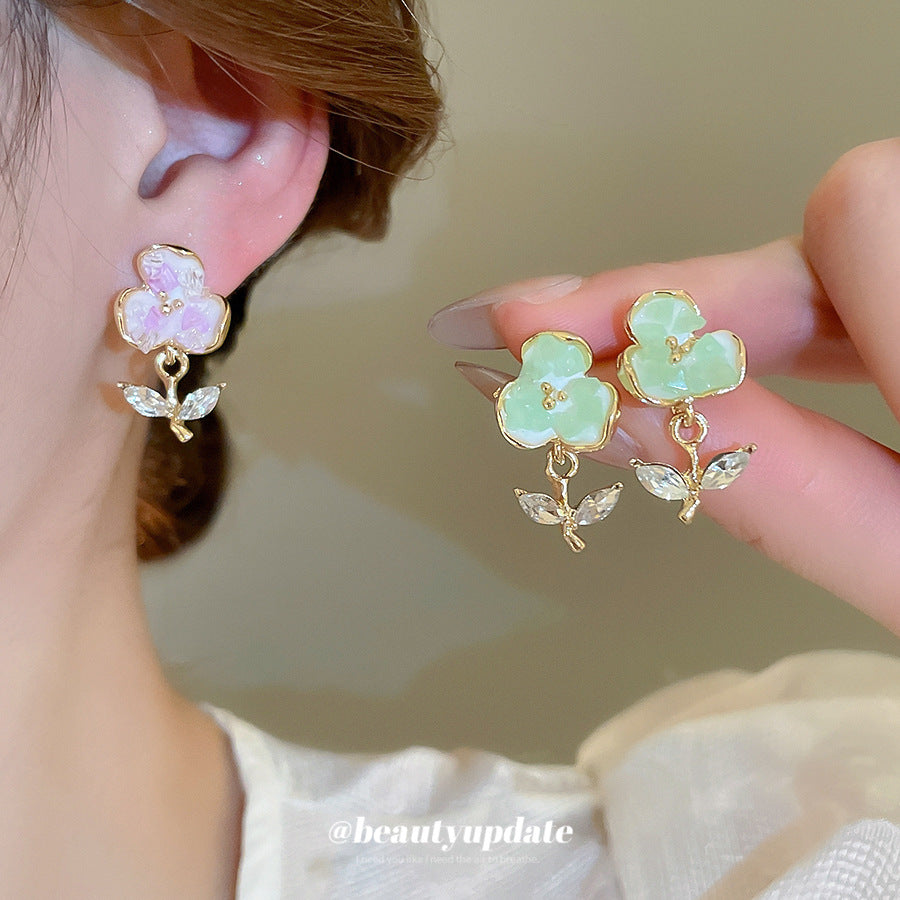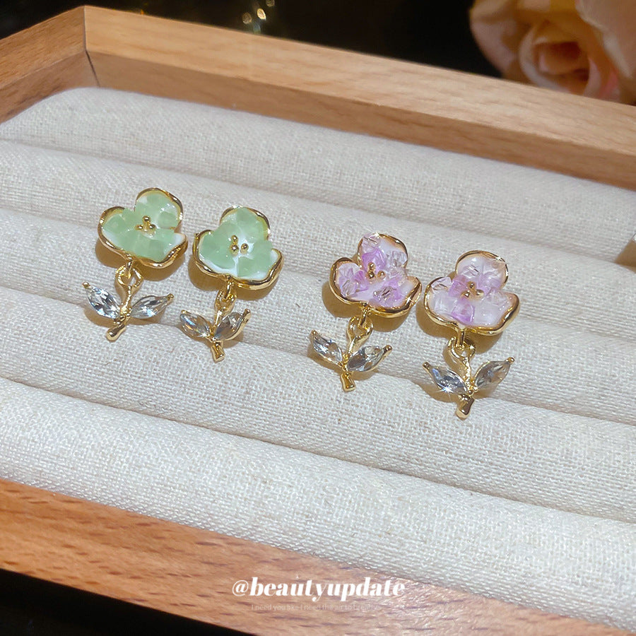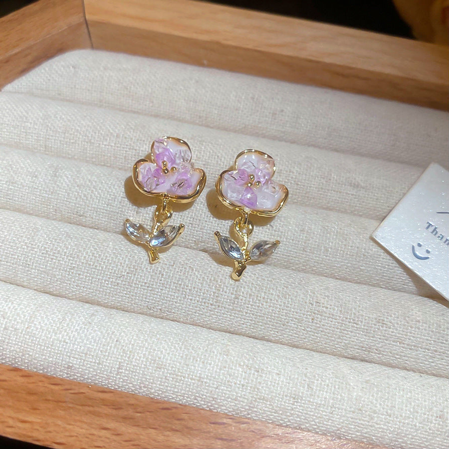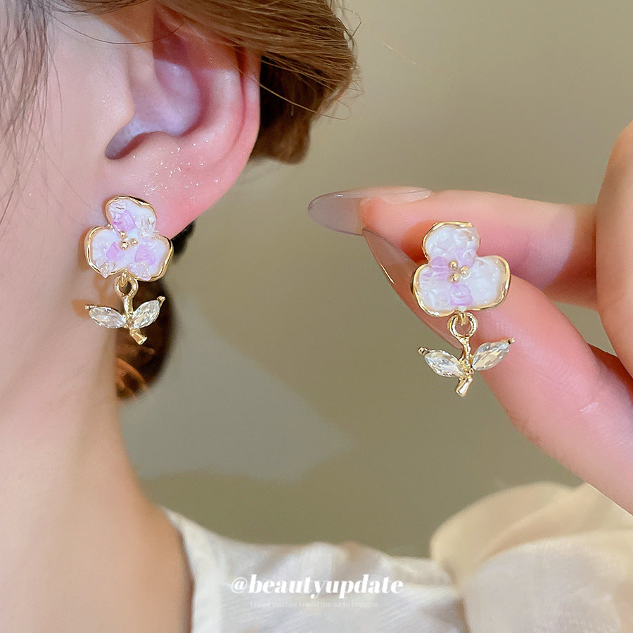 A廠【HE26187】925銀針鑲鑽水晶花朵耳環森繫小清新氣質耳環甜美時尚耳環輕奢高級感 25.05-1