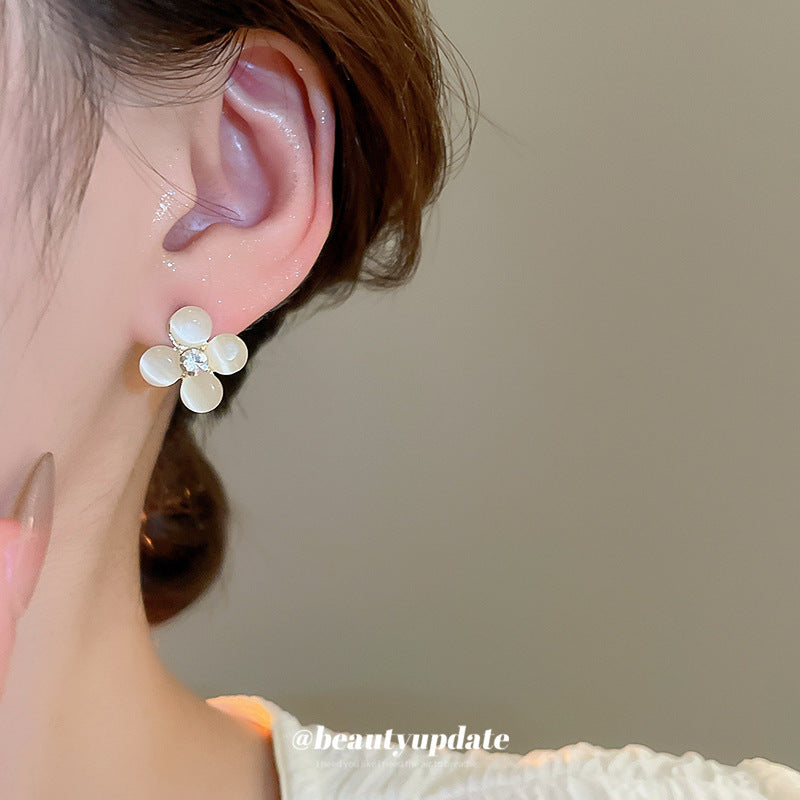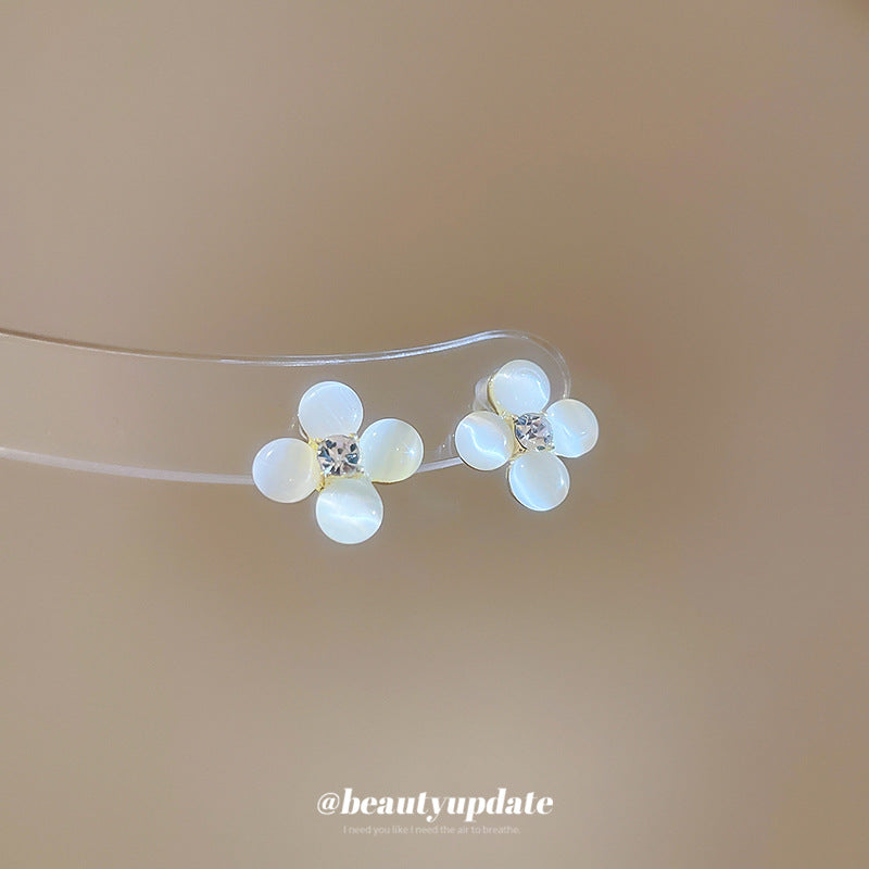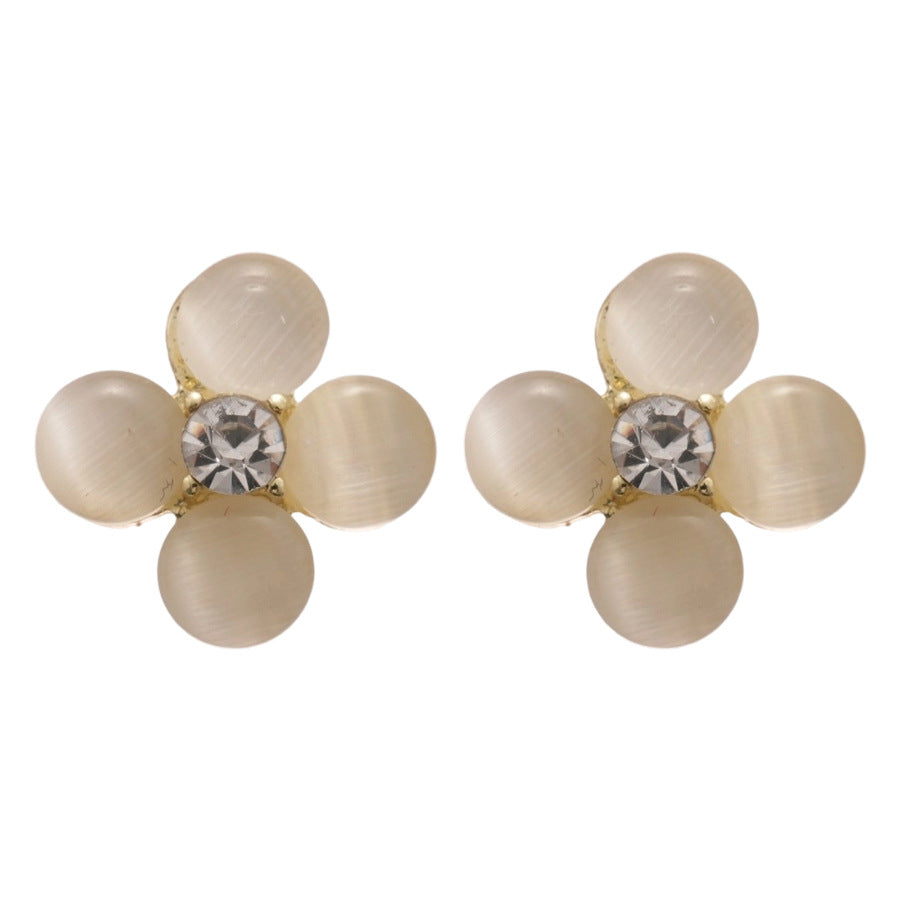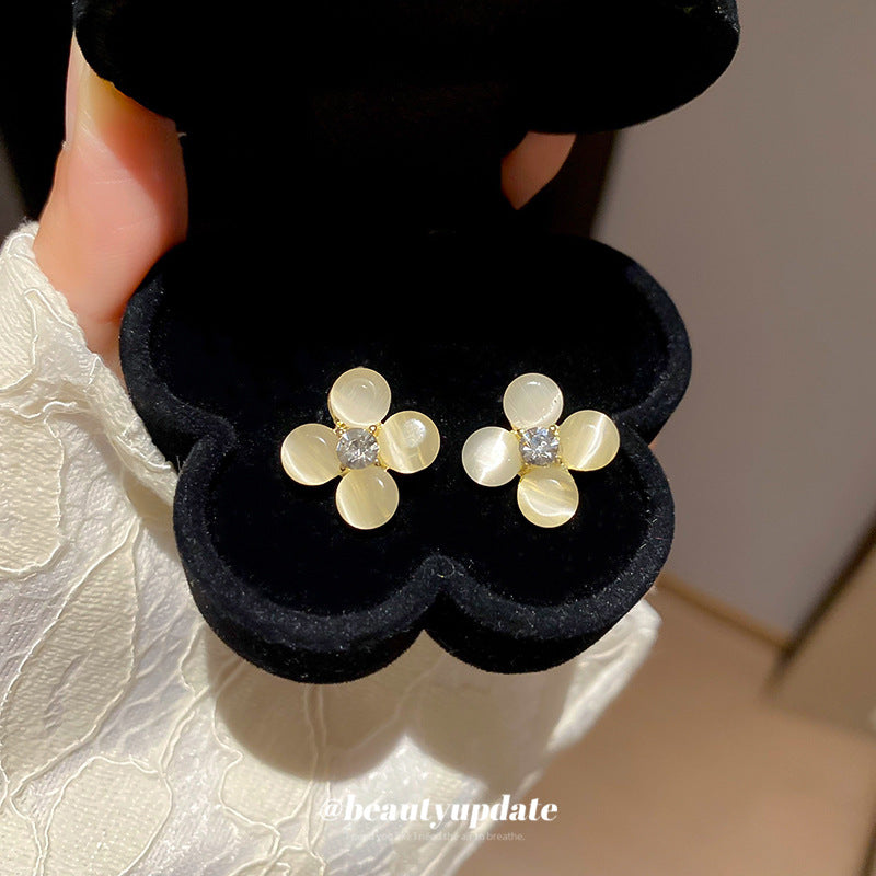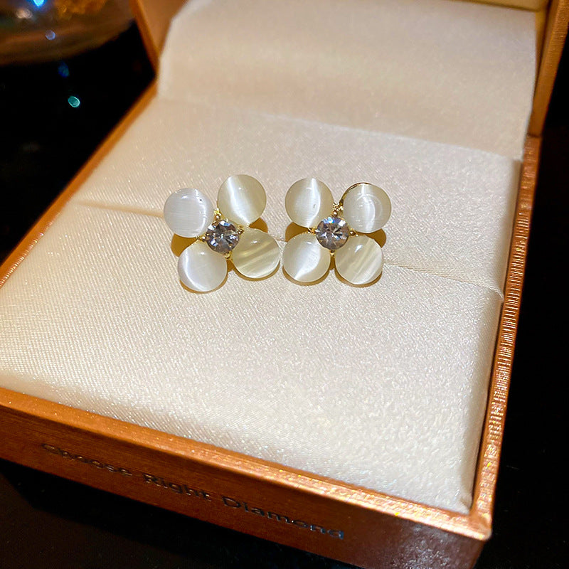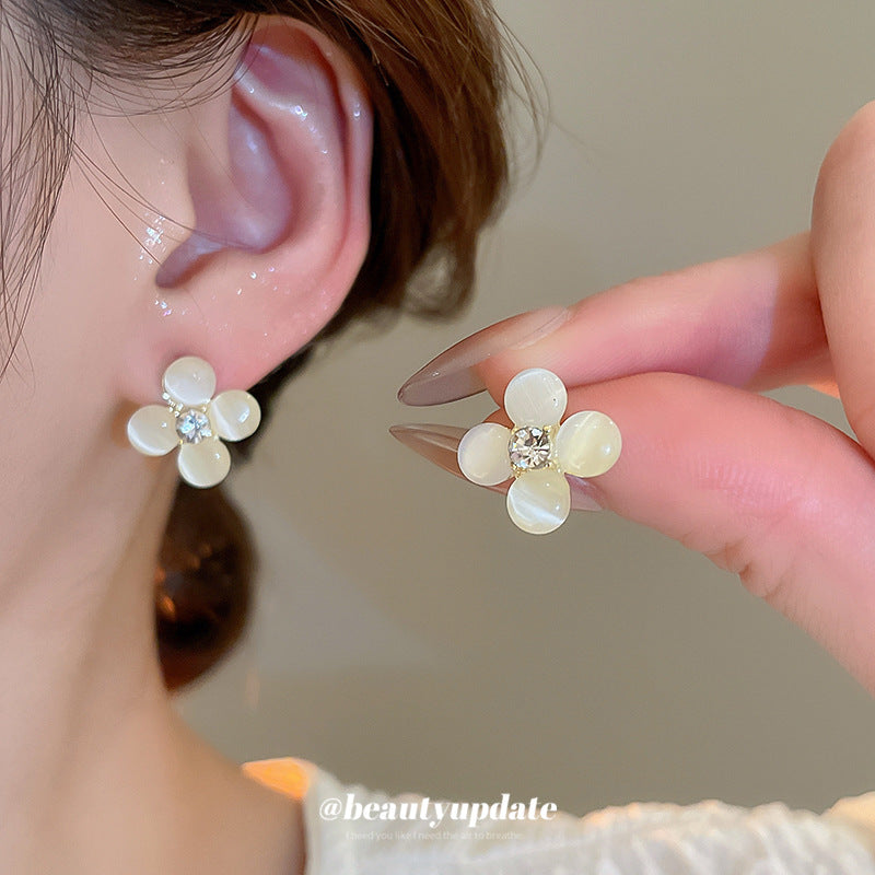 A廠【HE26201】925銀針鑲鑽貓眼石花朵耳環甜美小眾精緻百搭耳環輕奢高級感耳飾 25.05-1