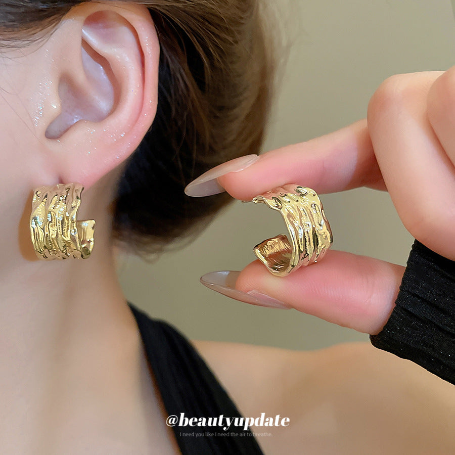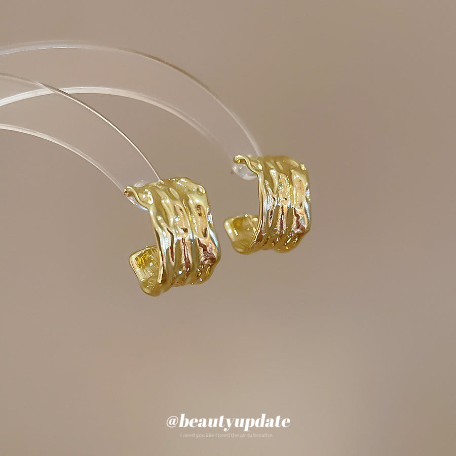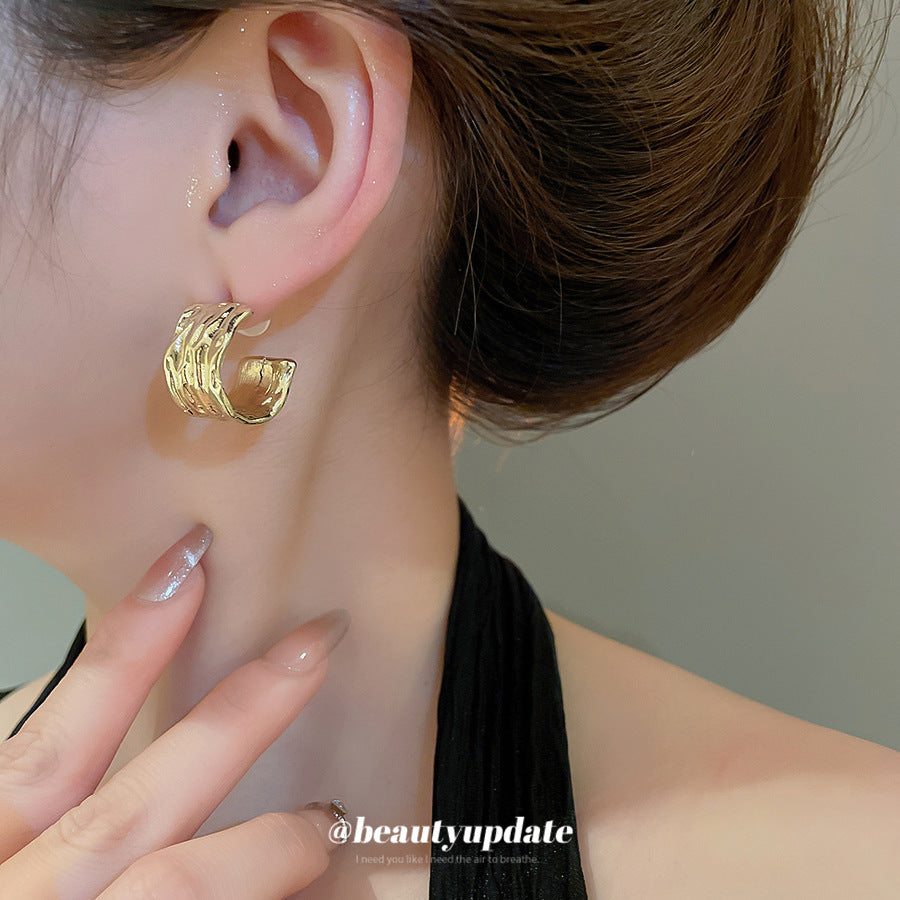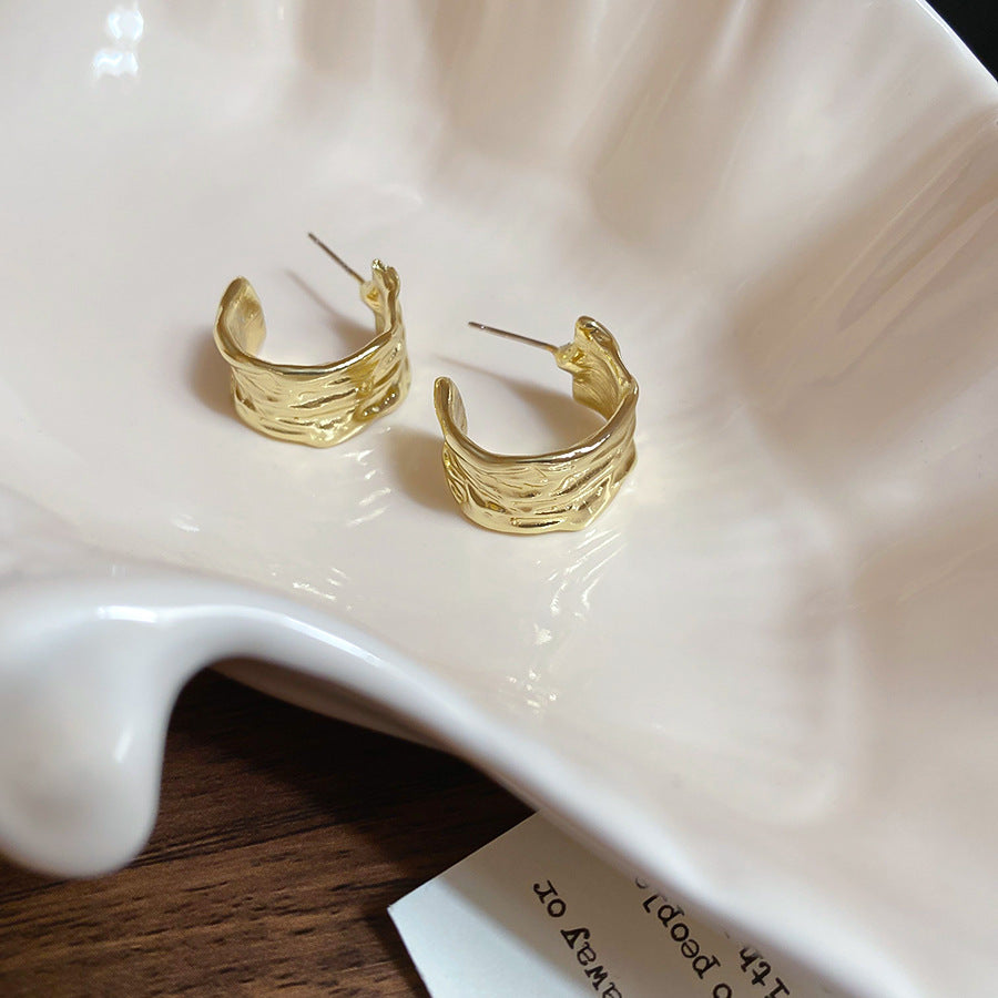 A廠【HE26209】925銀針金屬風褶皺C型耳環百搭復古耳環輕奢高級感耳飾小眾設計感女 25.05-1