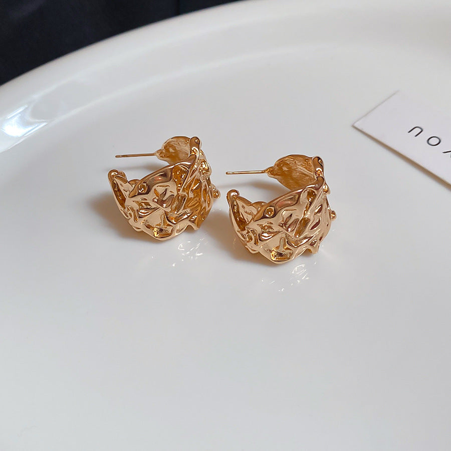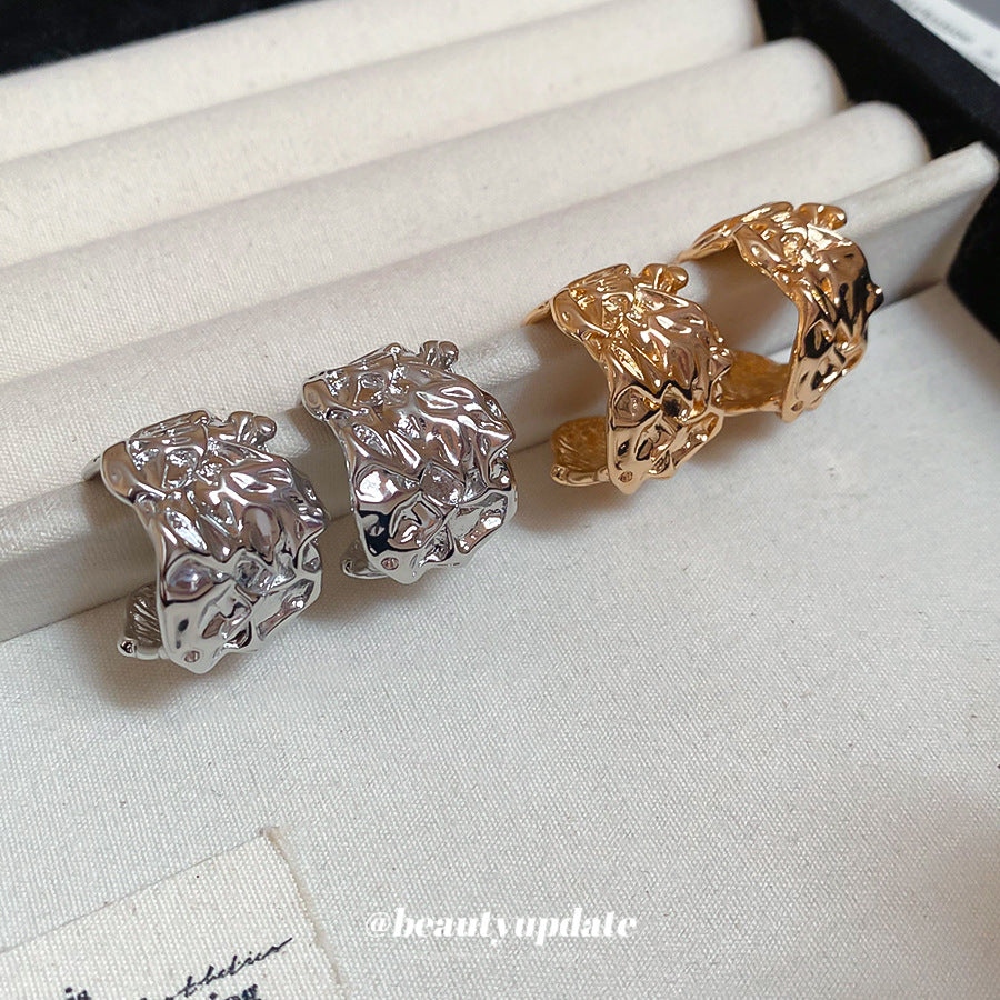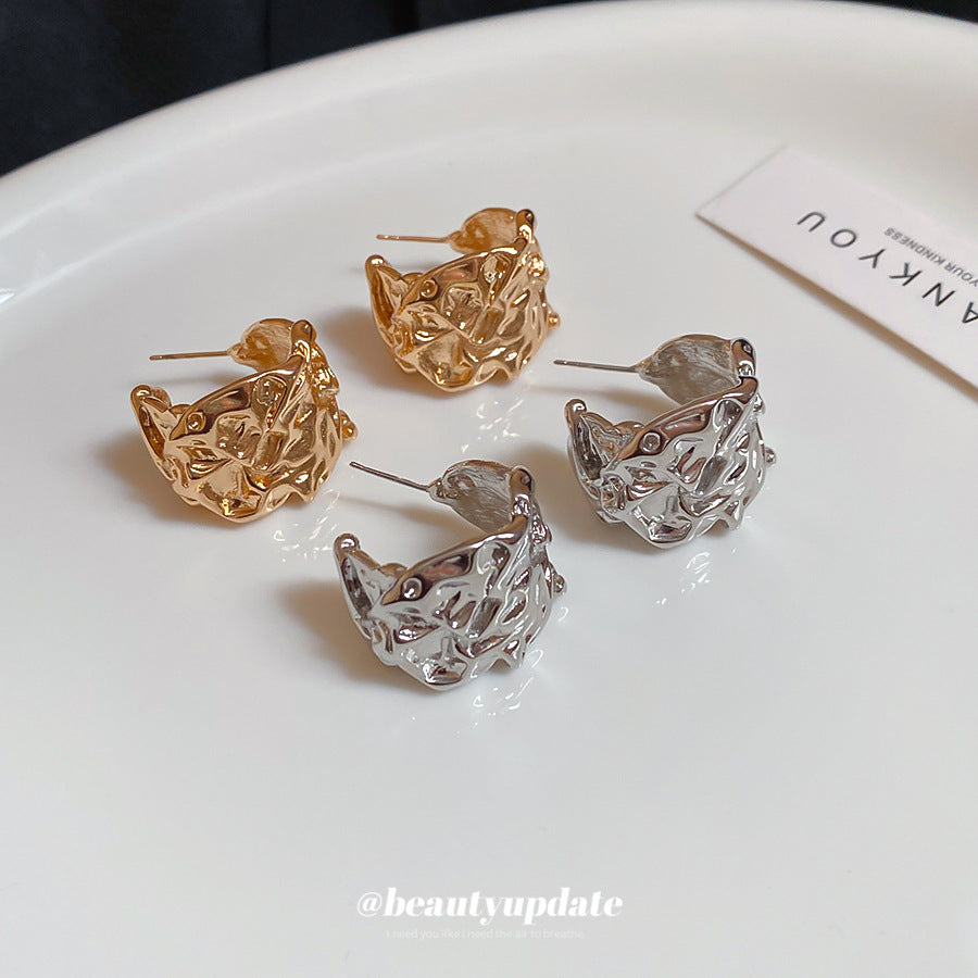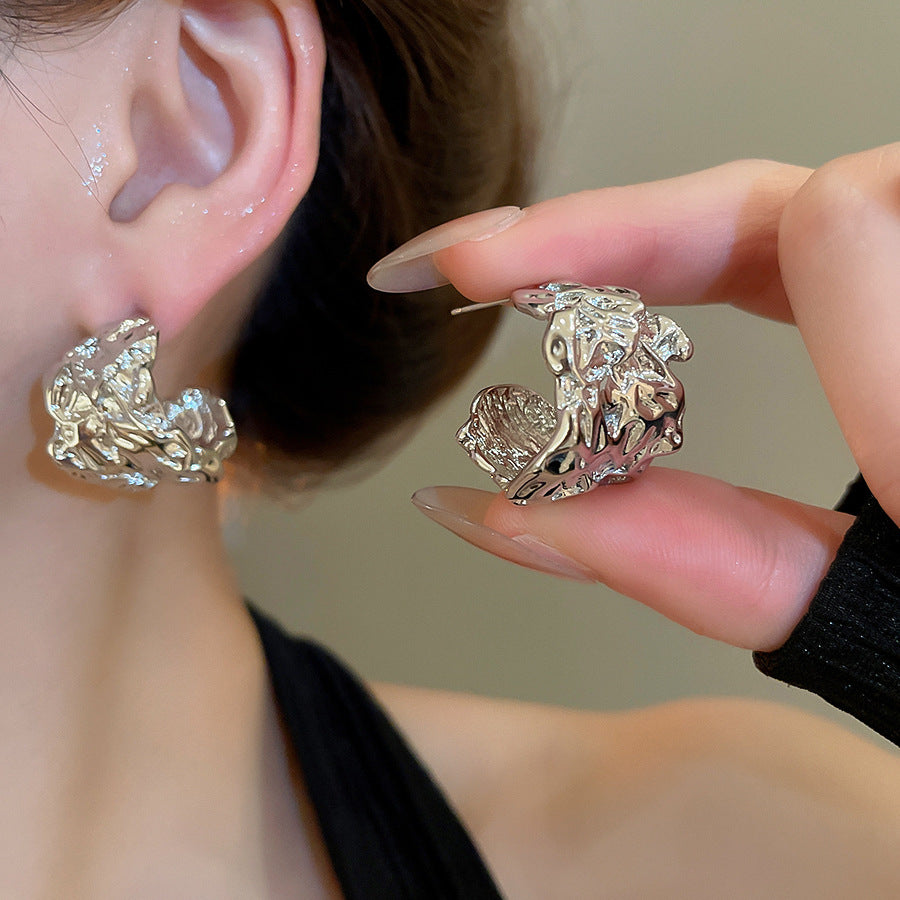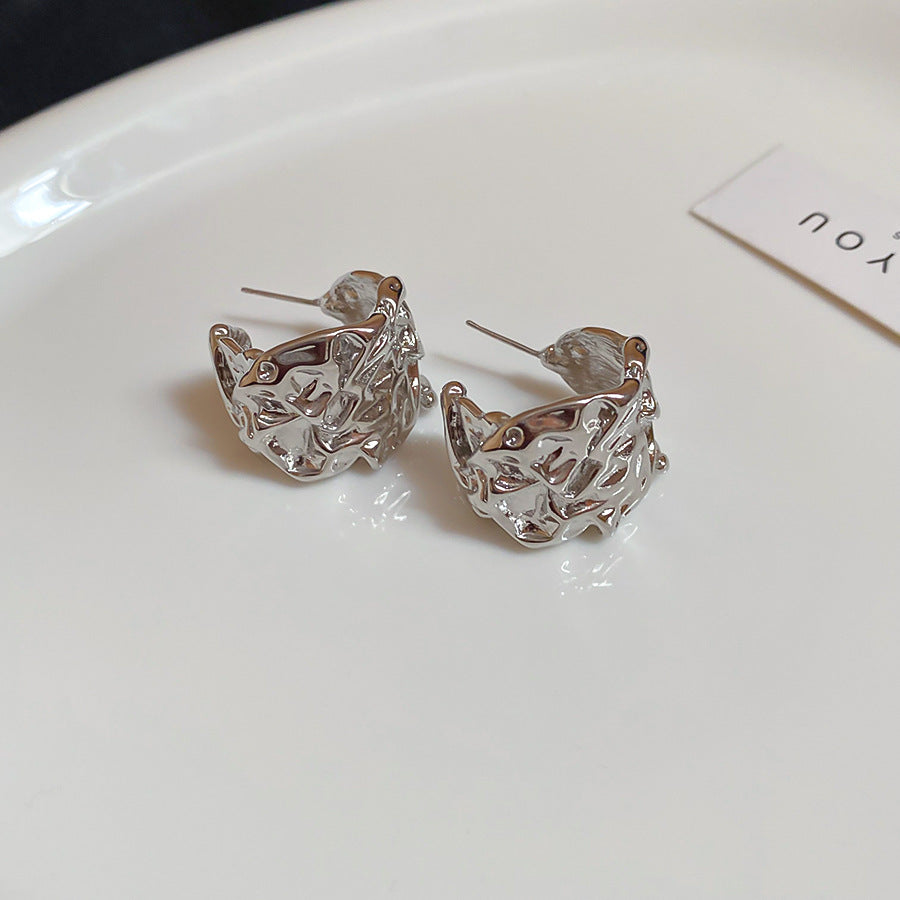 A廠【HE26210】925銀針金屬風褶皺C型耳環氣質輕奢高級感復古耳環耳環小眾設計感女 25.05-1