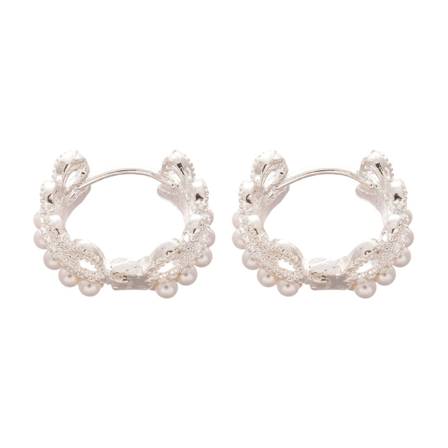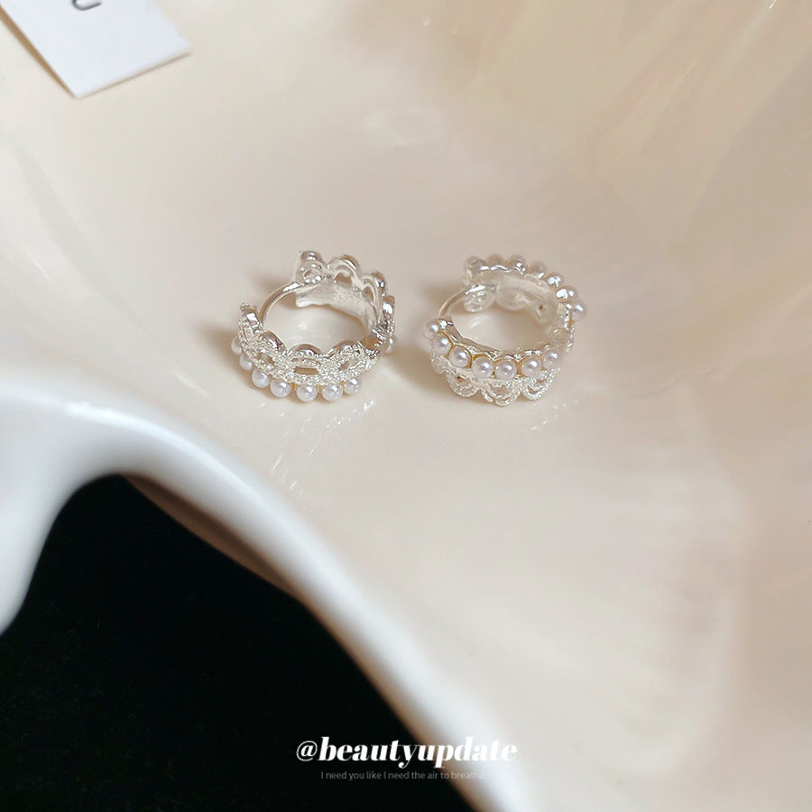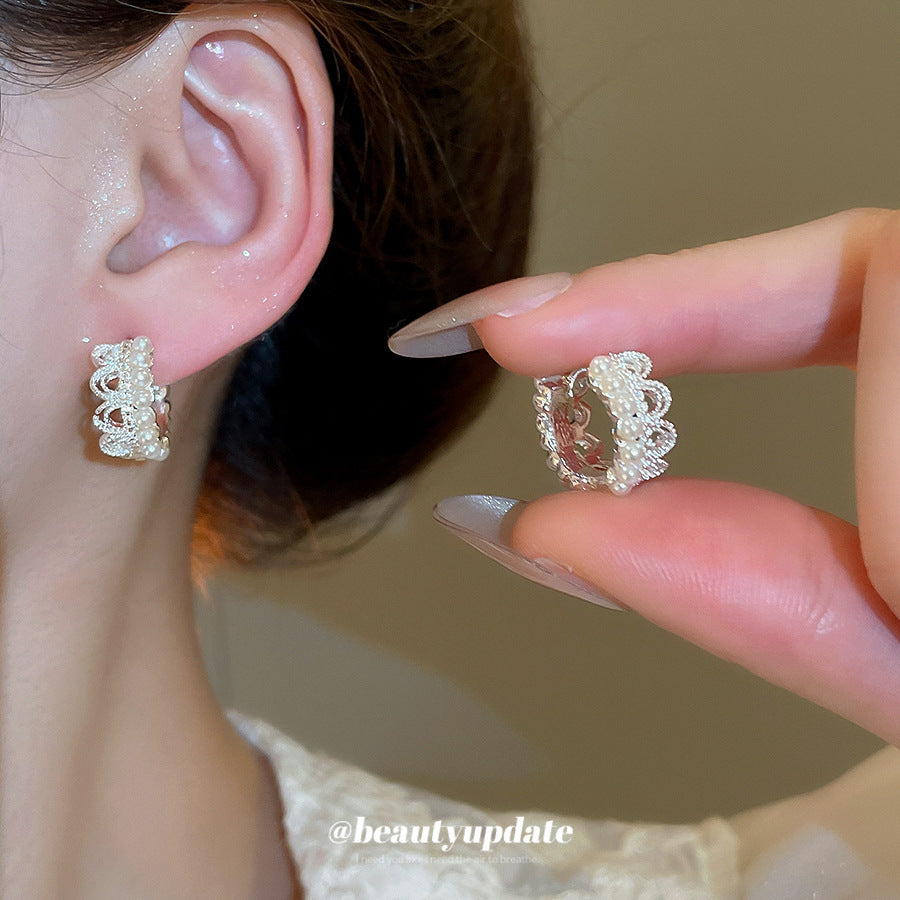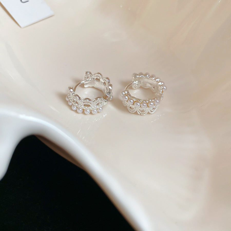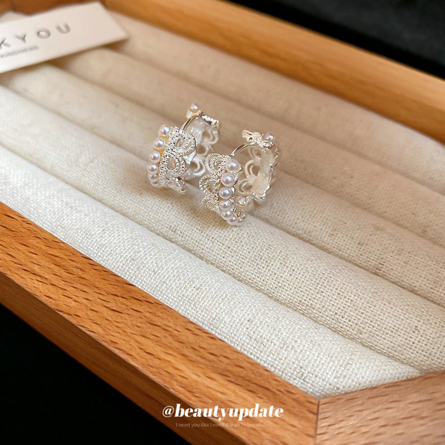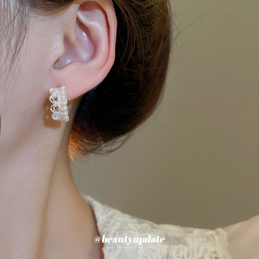 A廠【HE26230】法式復古蕾絲皇冠珍珠耳扣時尚通勤百搭耳環輕奢高級感小眾耳飾 25.05-1