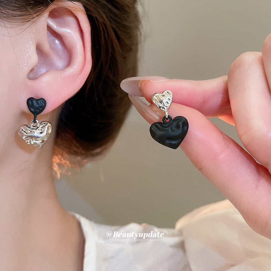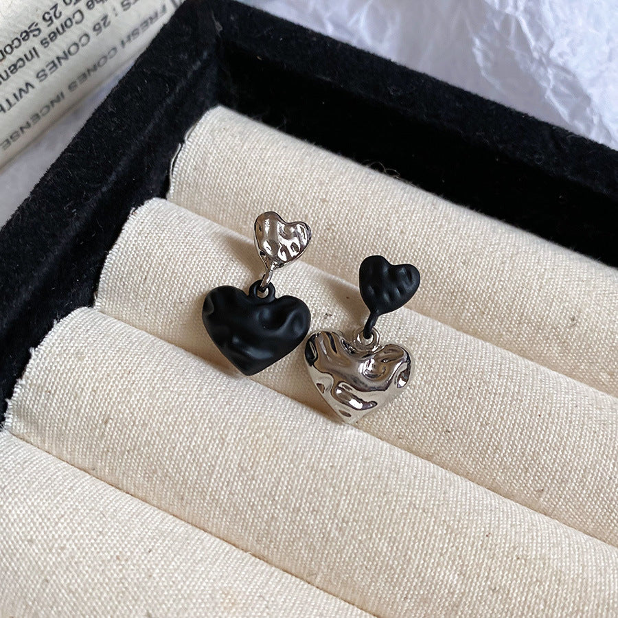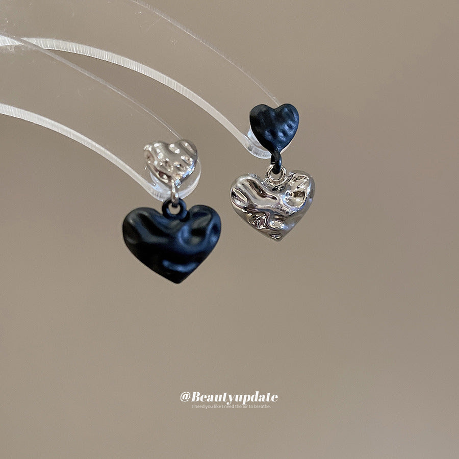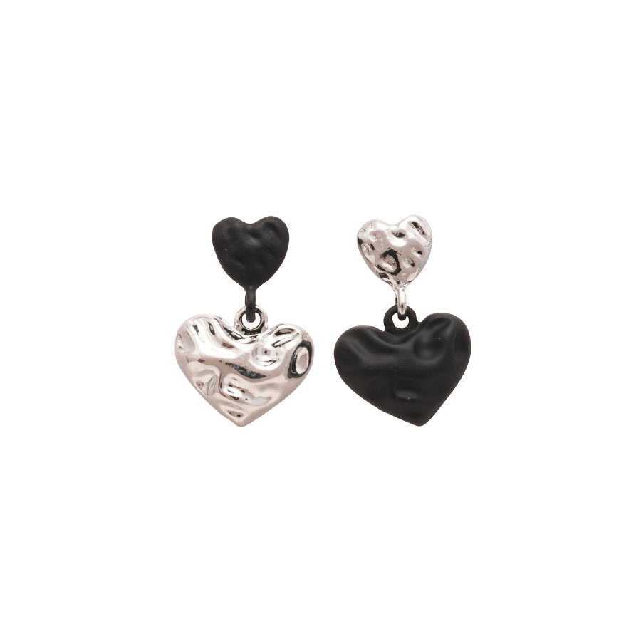A廠【HE26272】925銀針不對稱褶皺愛心吊墜耳環新個性設計耳環耳環設計感小眾女 25.05-1