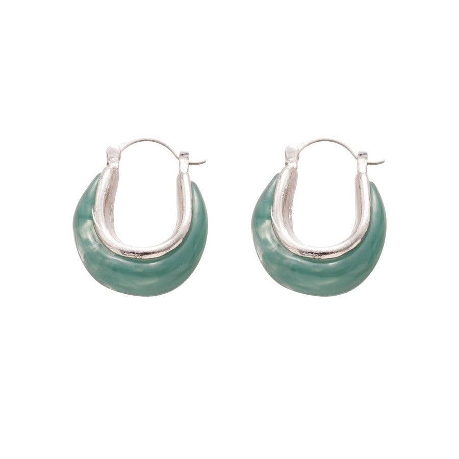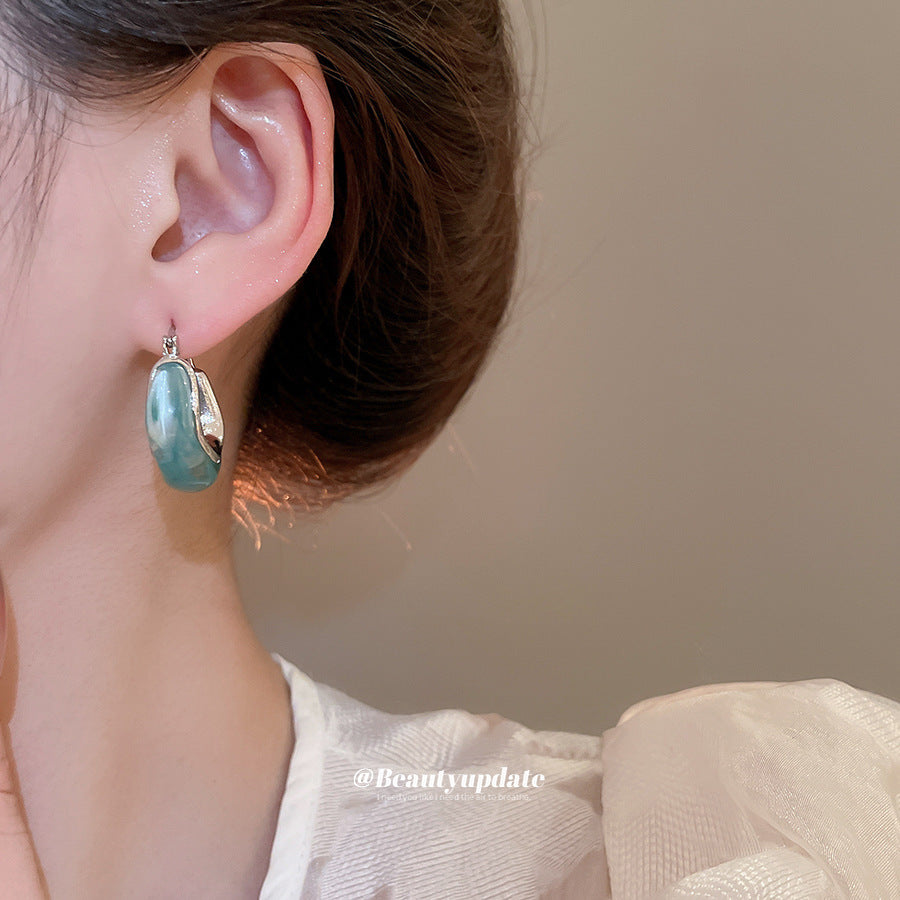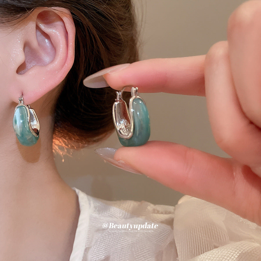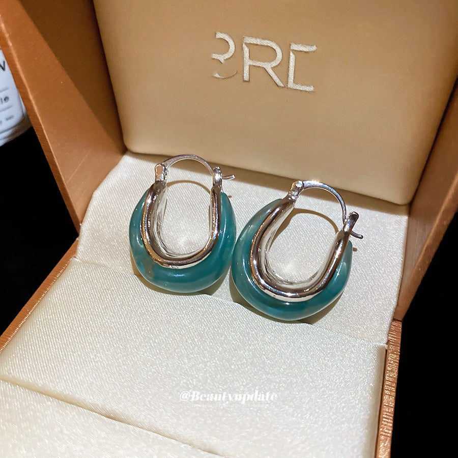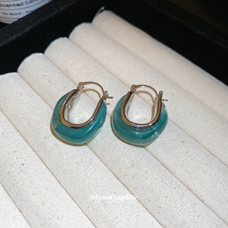 A廠【HE26279】樹脂冰萃薄荷藍U型耳扣小眾輕奢簡約耳環個性時尚氣質百搭耳環女 25.05-2
