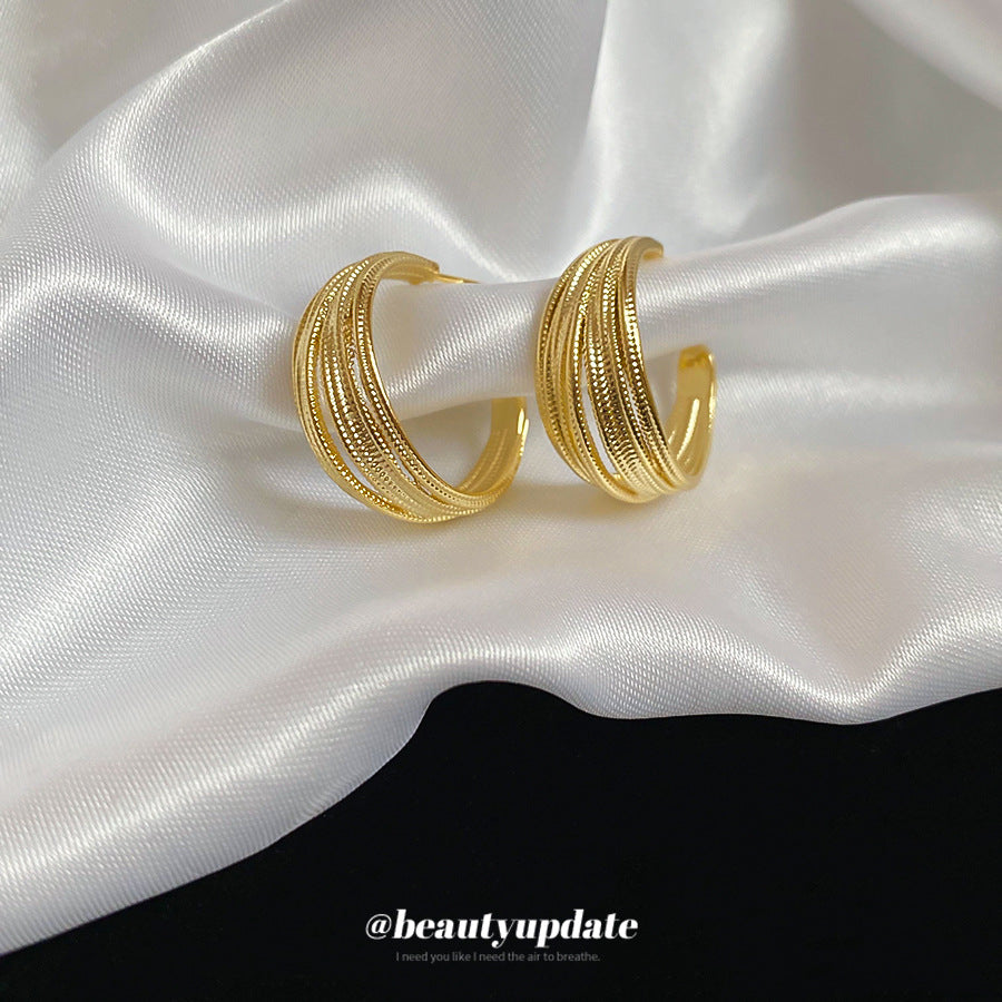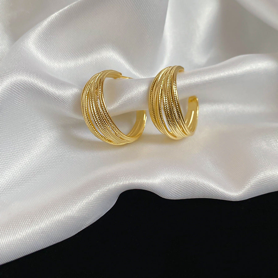 A廠【HE26344】18k真金電鍍線圈C型耳環歐美2025新款小眾百搭耳環輕奢高級感耳飾 25.05-2