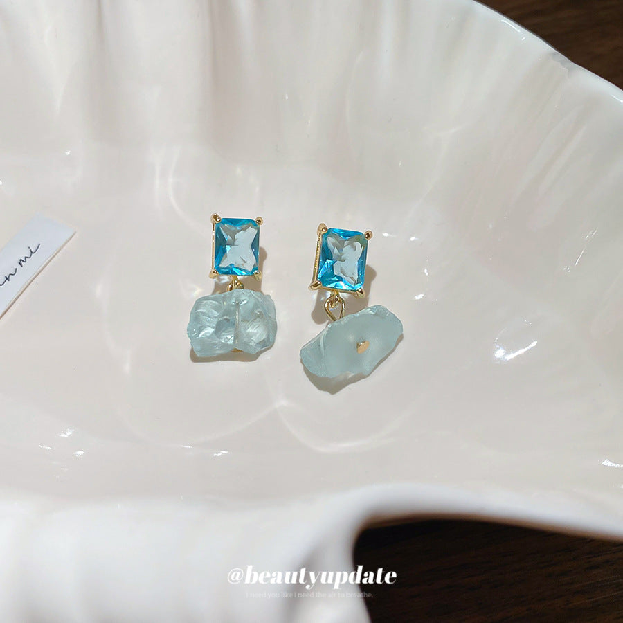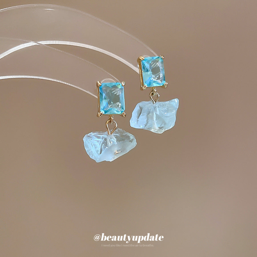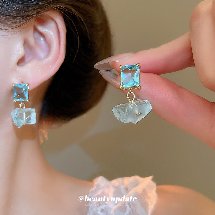 A廠【HE26384】925銀針鋯石水晶吊墜耳環女簡約時尚百搭耳環個性氣質耳環小眾高級感 25.05-2