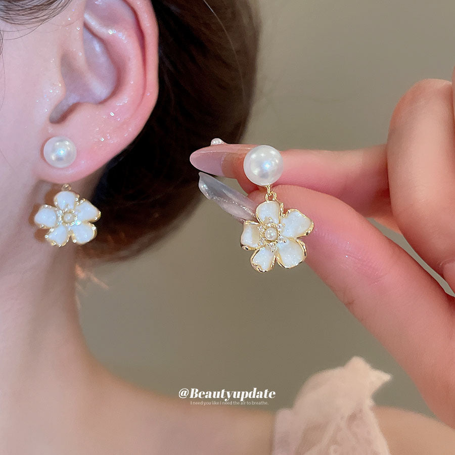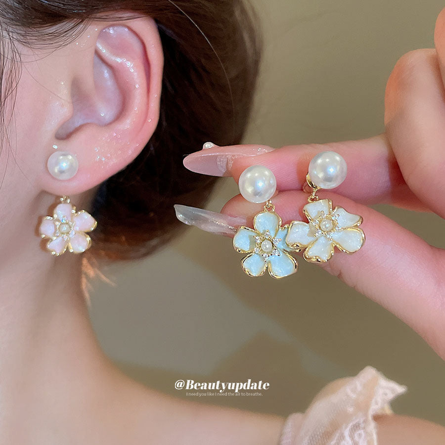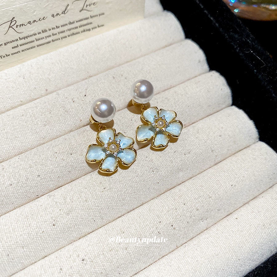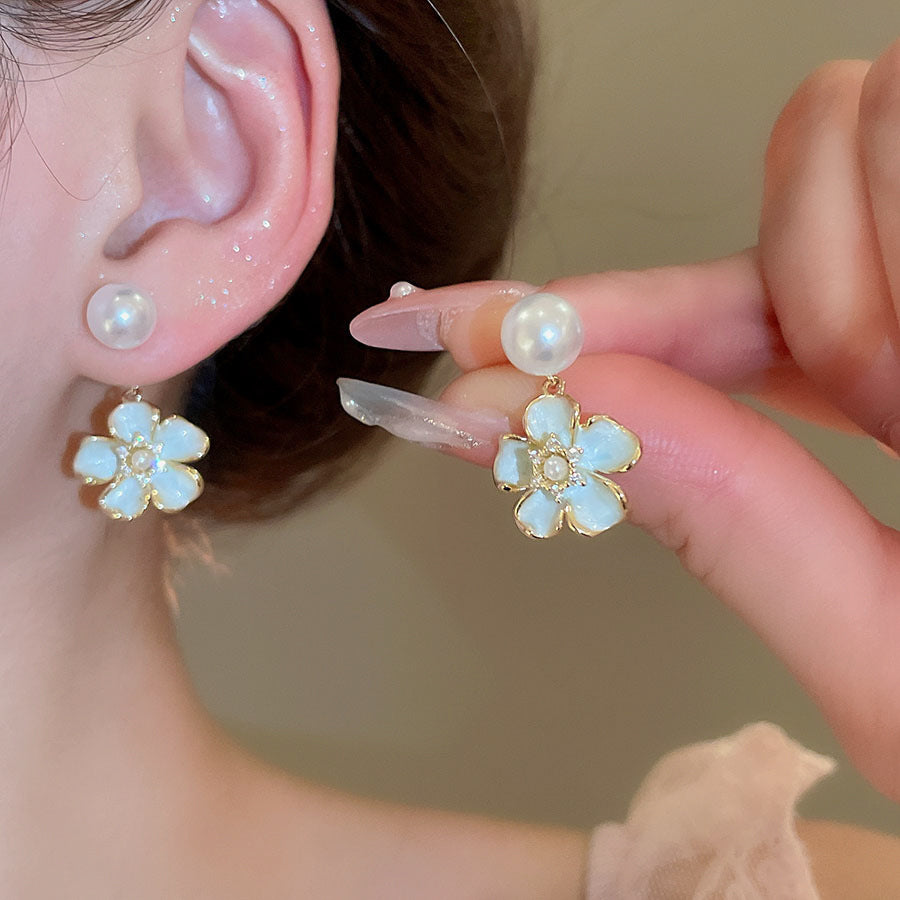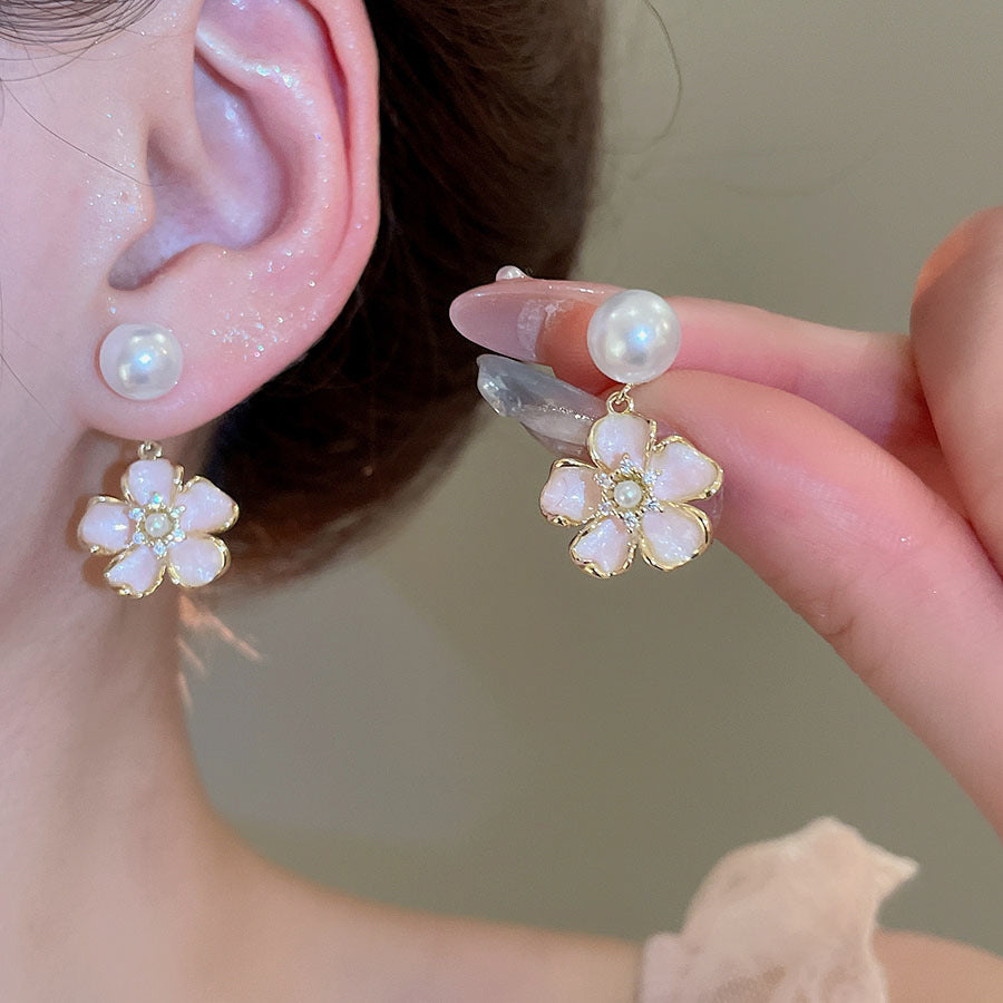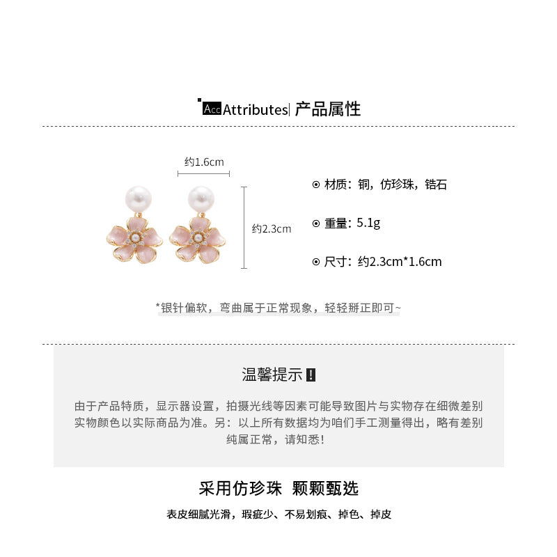 A廠【HE26463】925銀針鋯石珍珠滴油花朵耳環甜美氣質輕奢高級感耳環時尚小眾耳飾女 25.05-3