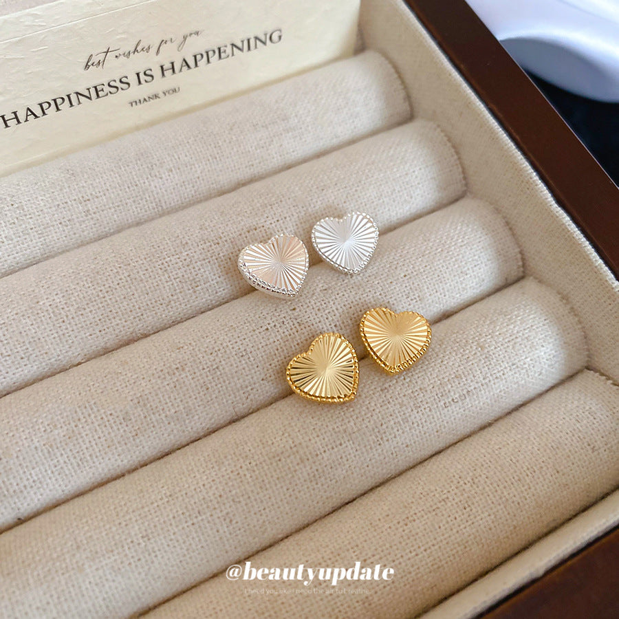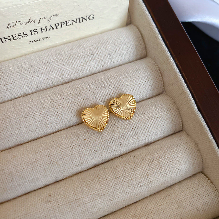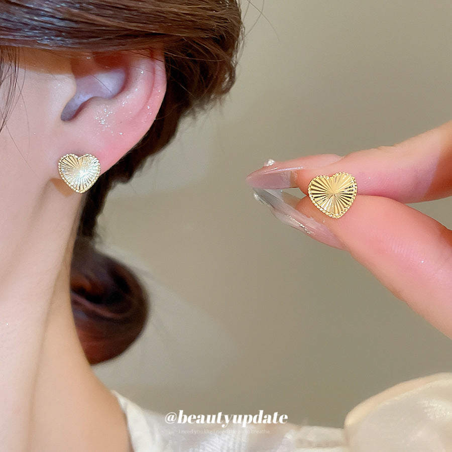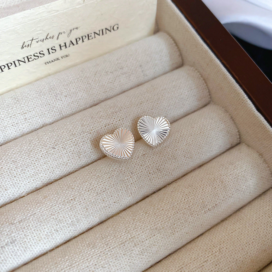 A廠 【HE26512】925銀針褶皺橫紋愛心耳環歐美簡約復古耳環輕奢高級感耳飾設計感小眾 25.05-4