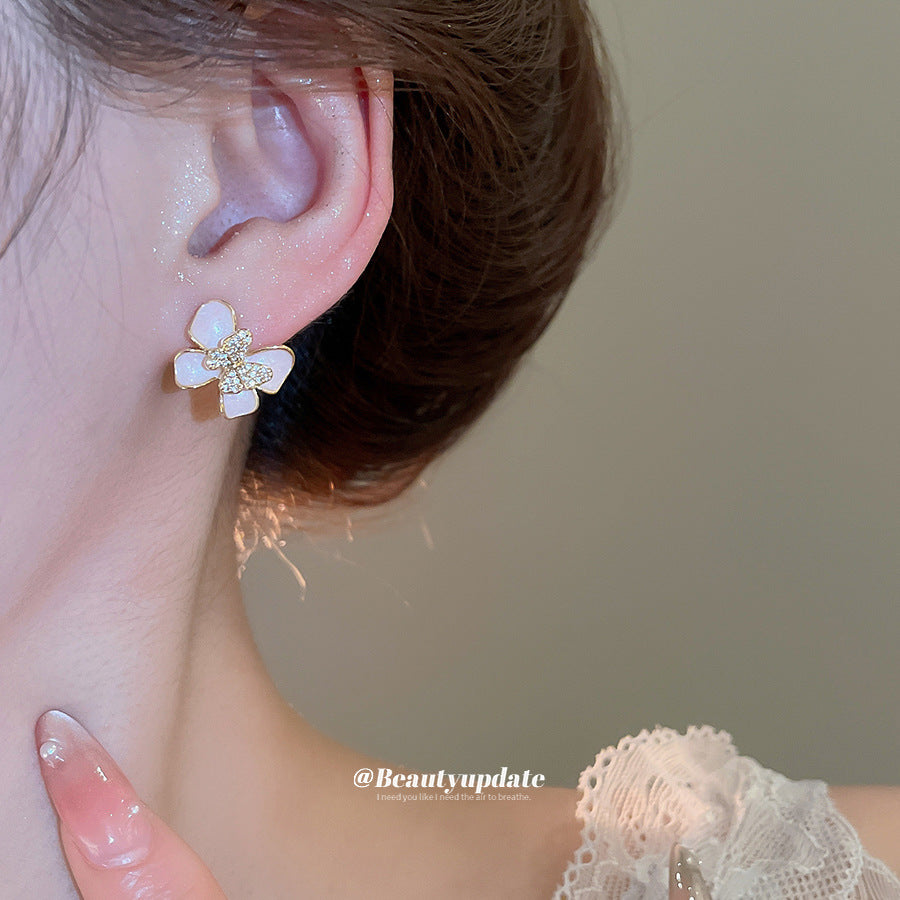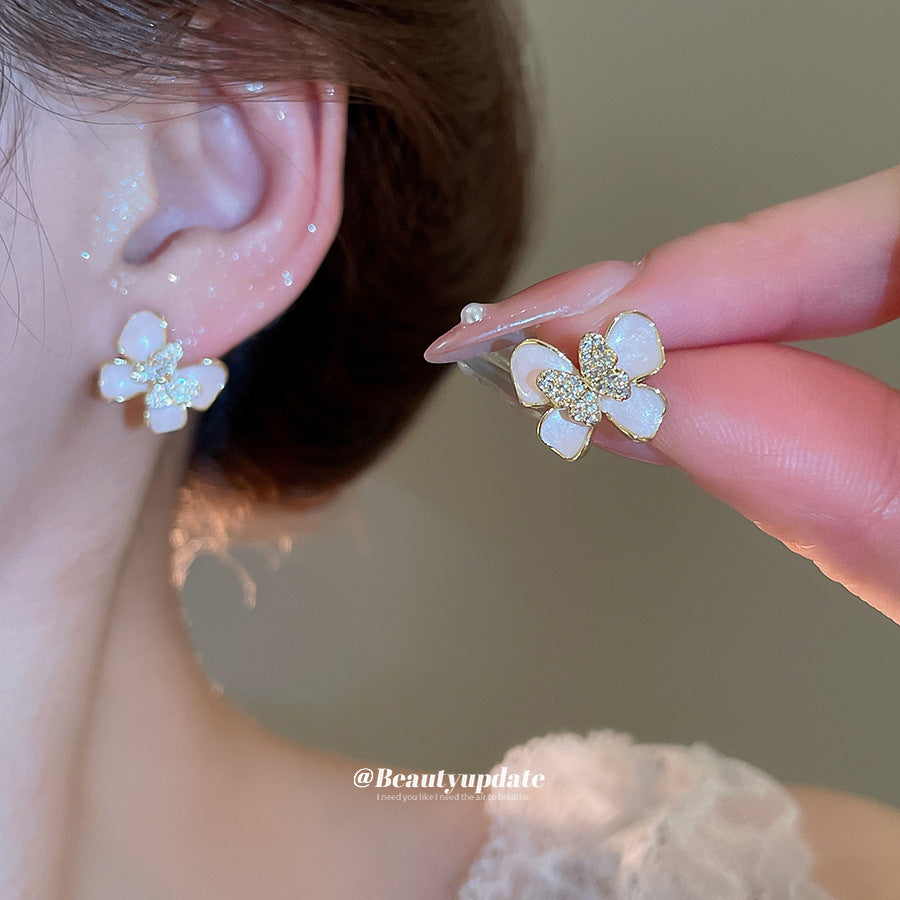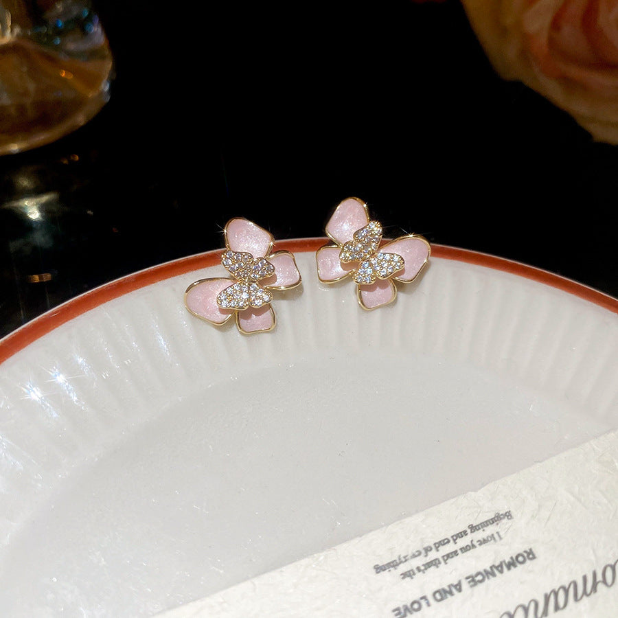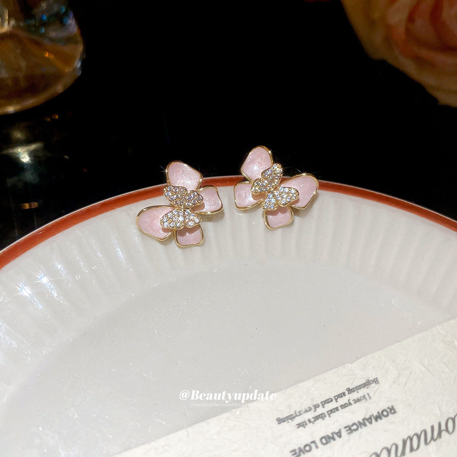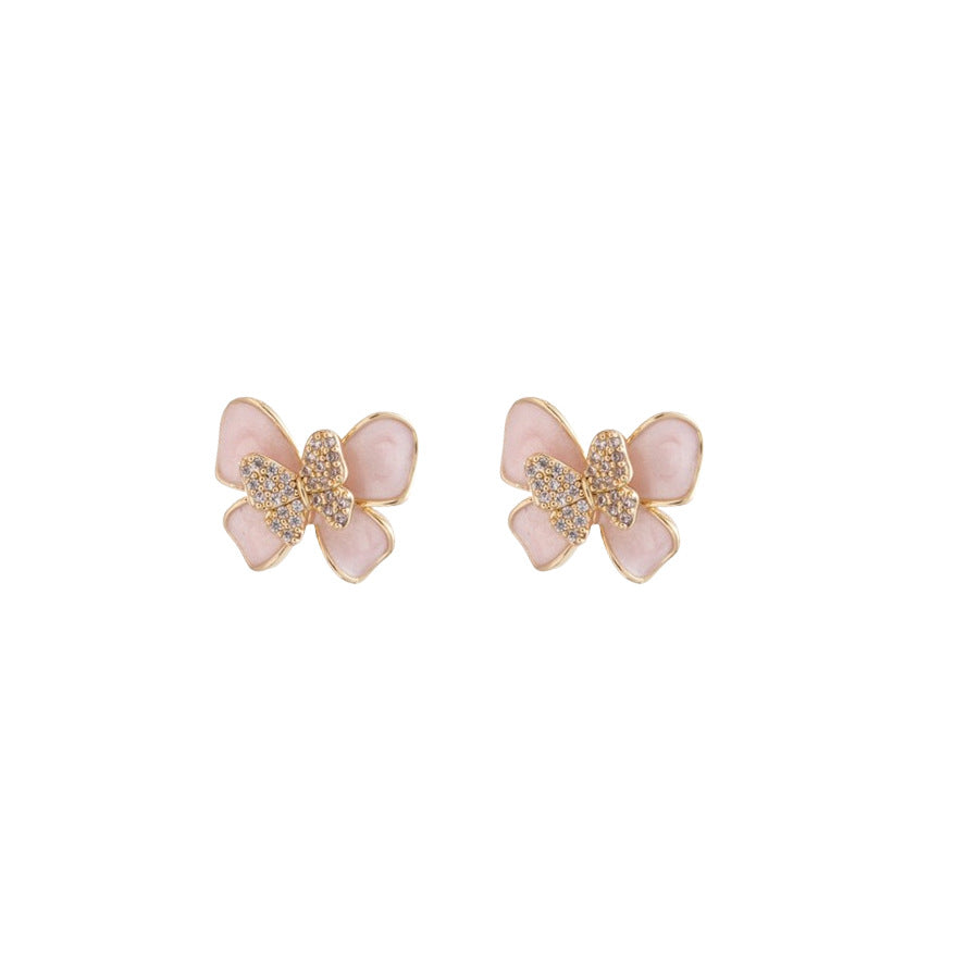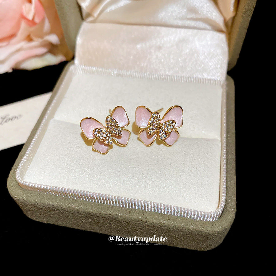 A廠 【HE26566】14k真金電鍍925銀針鋯石滴油蝴蝶耳環清新甜美耳環小眾高級感耳飾女 25.05-4