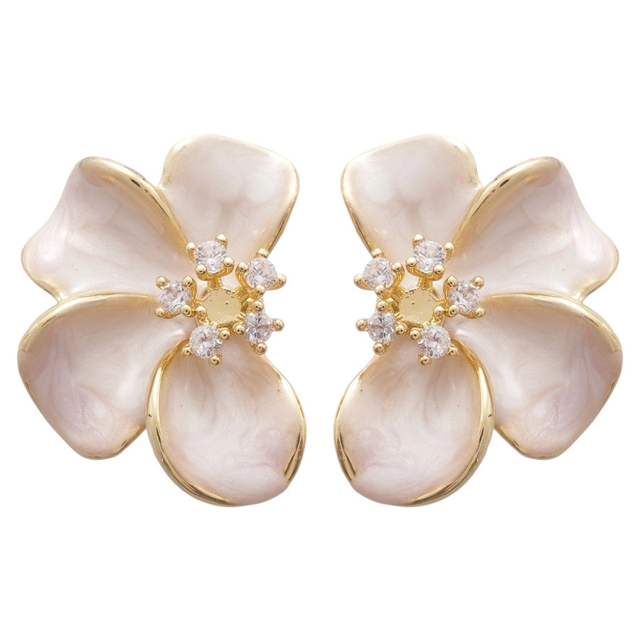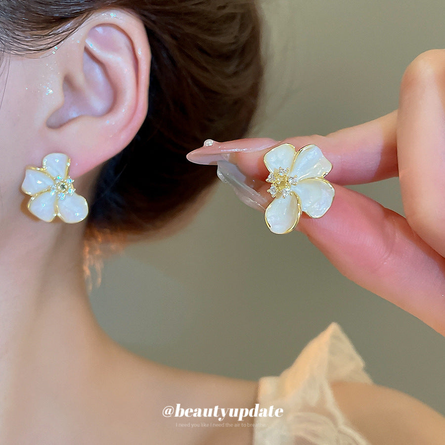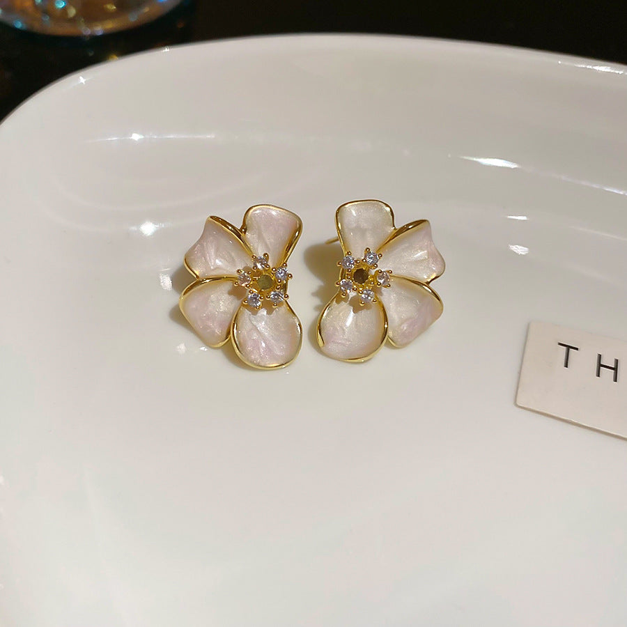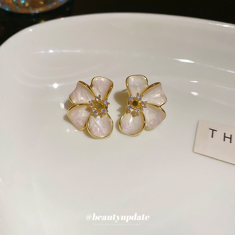 A廠 【HE26575】14k真金電鍍925銀針滴油花朵耳環法式清新甜美耳環輕奢高級感耳飾女 25.05-4