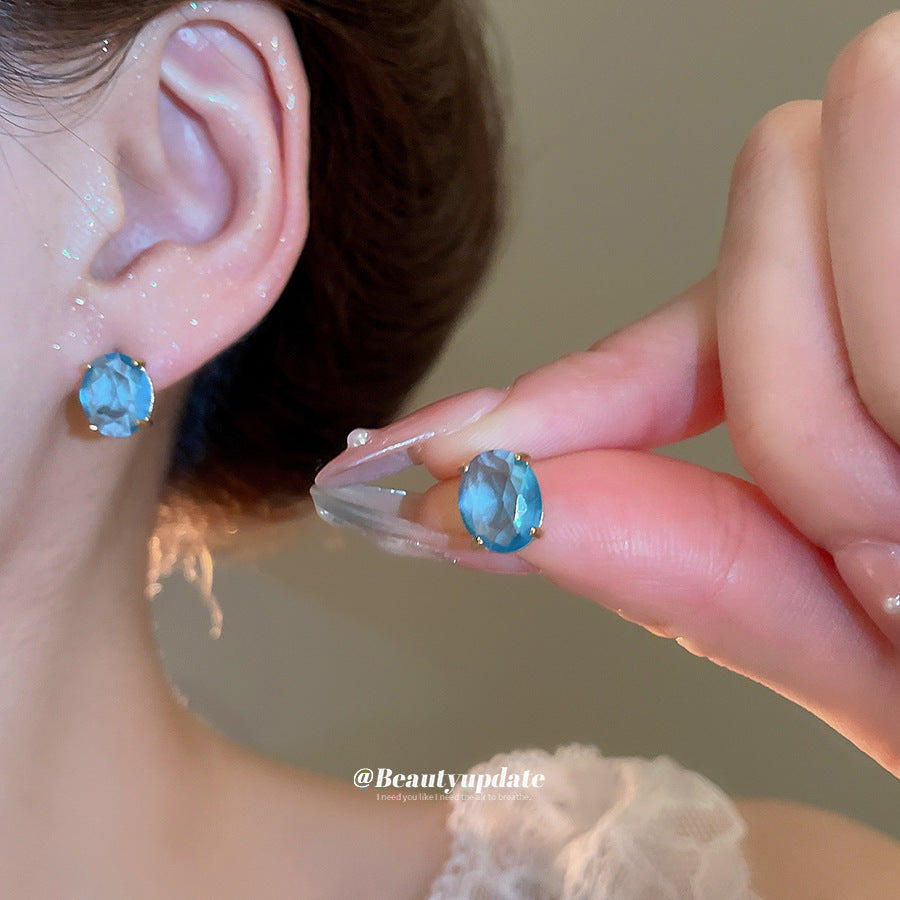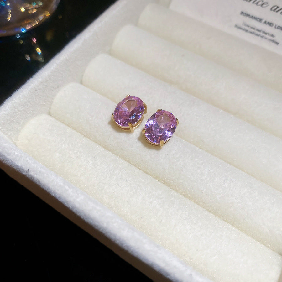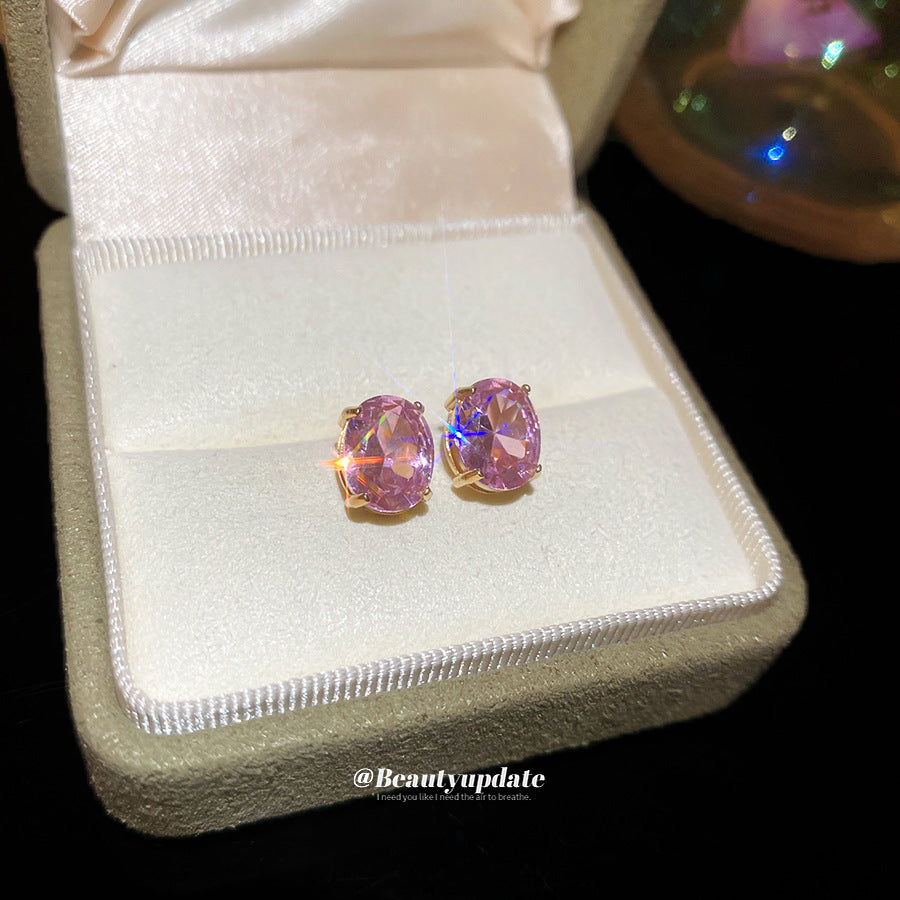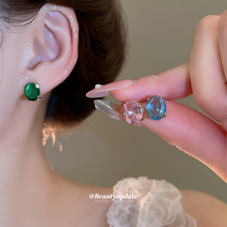 A廠 【HE26581】鈦鋼鋼針鋯石橢圓形耳環韓系簡約優雅精緻百搭耳環輕奢高級感耳飾 25.05-4