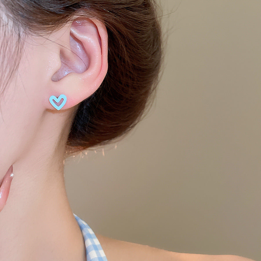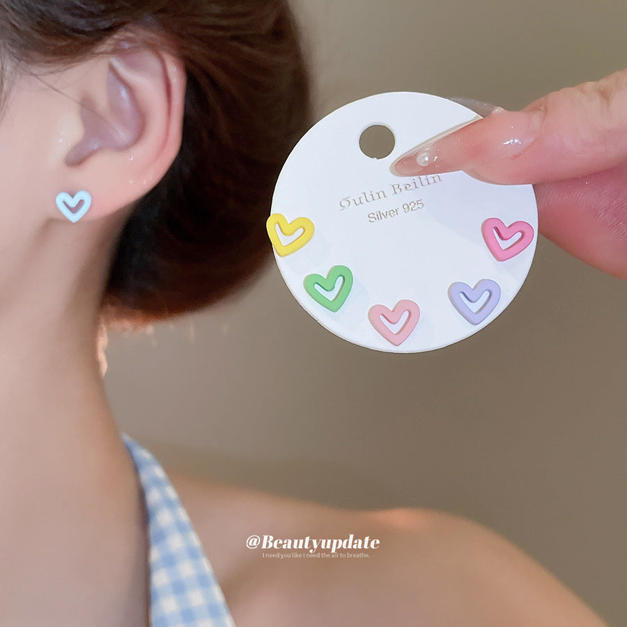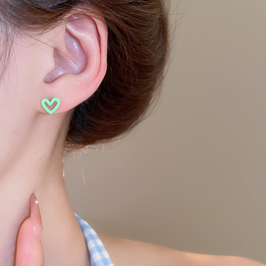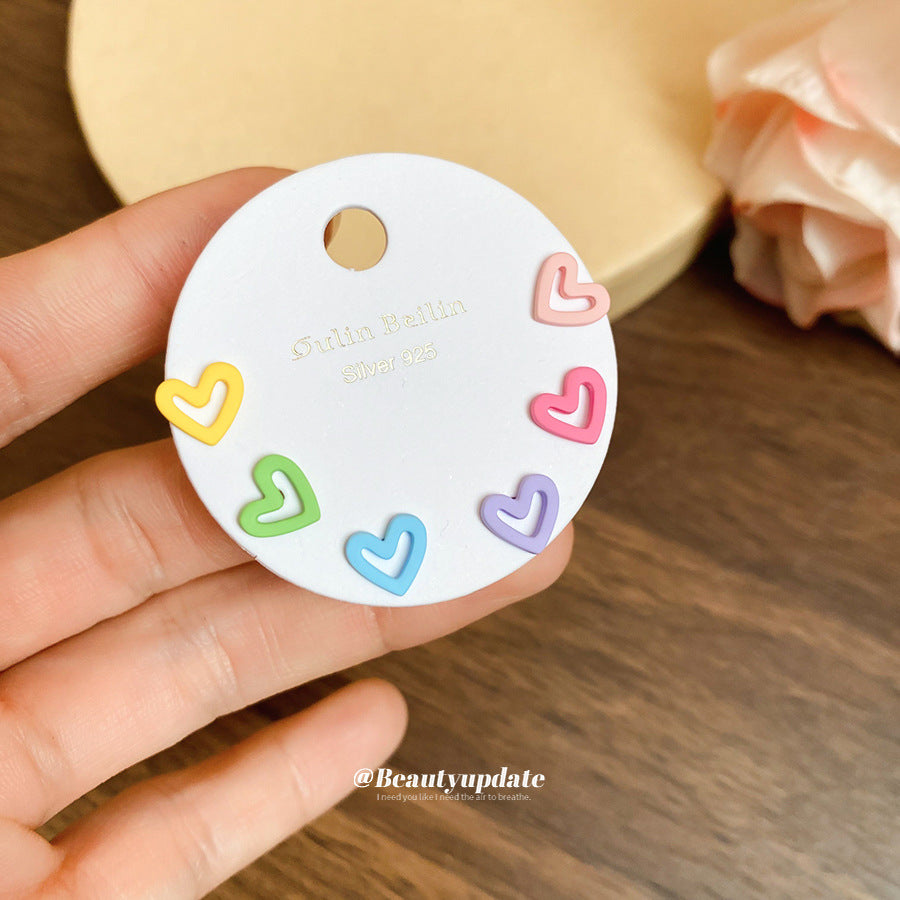 A廠【HE26614】925銀針彩色愛心鏤空耳環多巴胺小眾ins甜美耳環小清新氣質耳飾 25.06-1