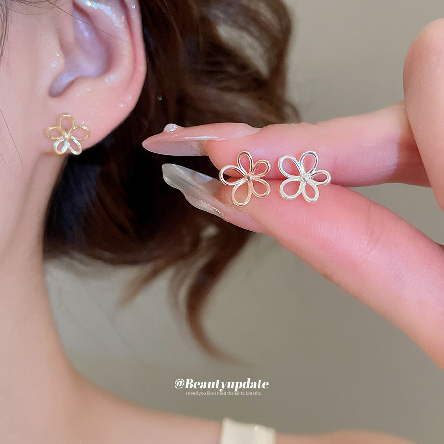 A廠【HE26906】925銀針鏤空花朵耳環歐美ins簡約百搭耳環輕奢高級感耳飾設計感小眾 25.06-1