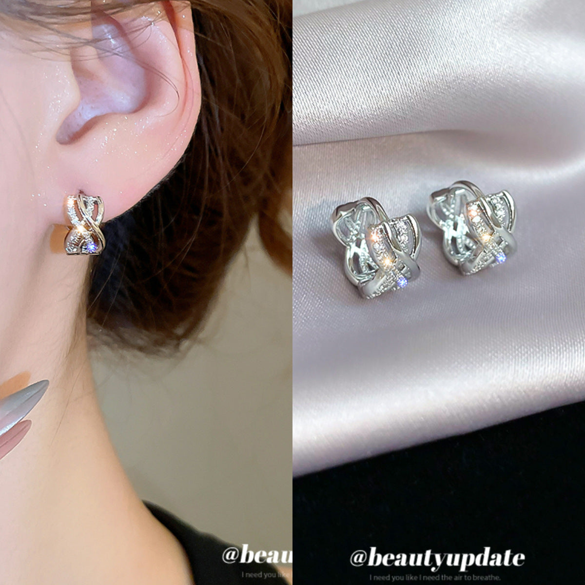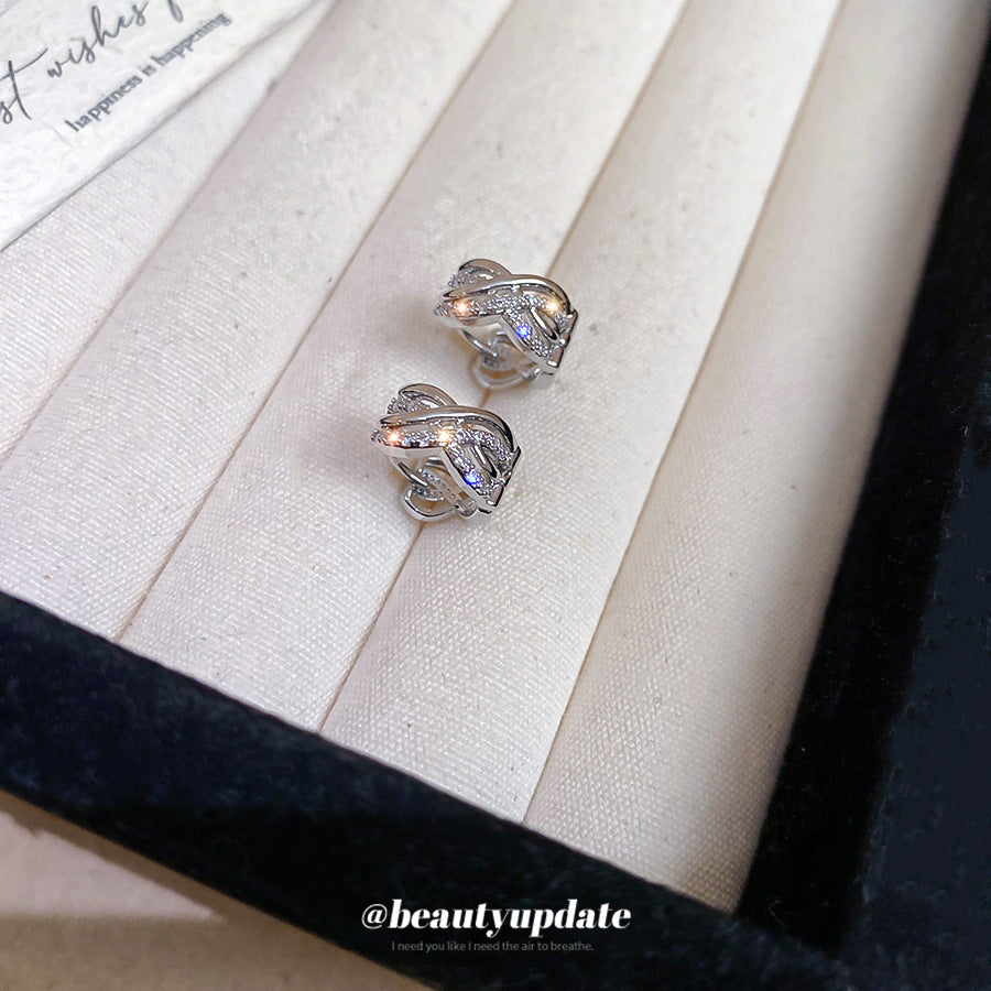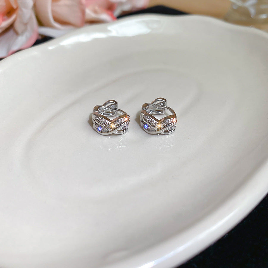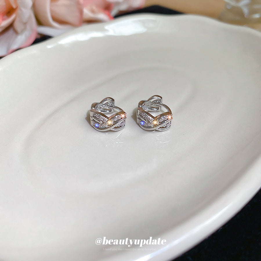 A廠【HE26920】鋯石鏤空交叉圓形耳扣女法式氣質耳環輕奢高級感耳飾設計感小眾女 25.06-3