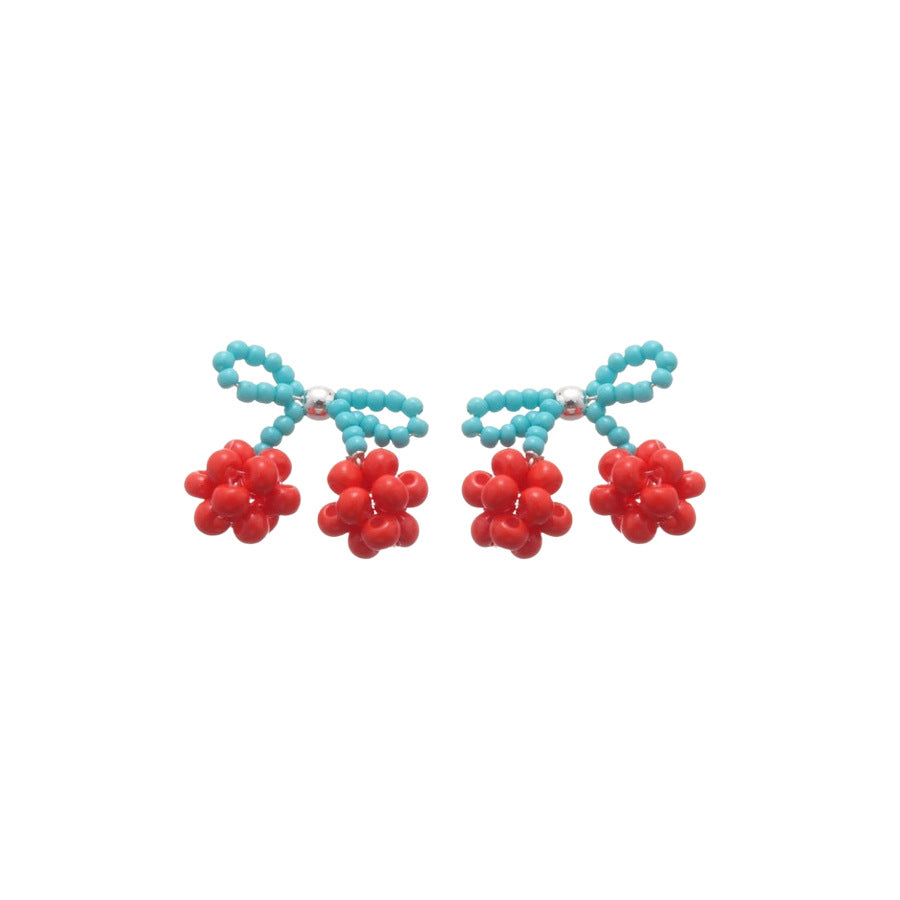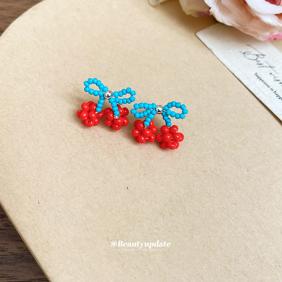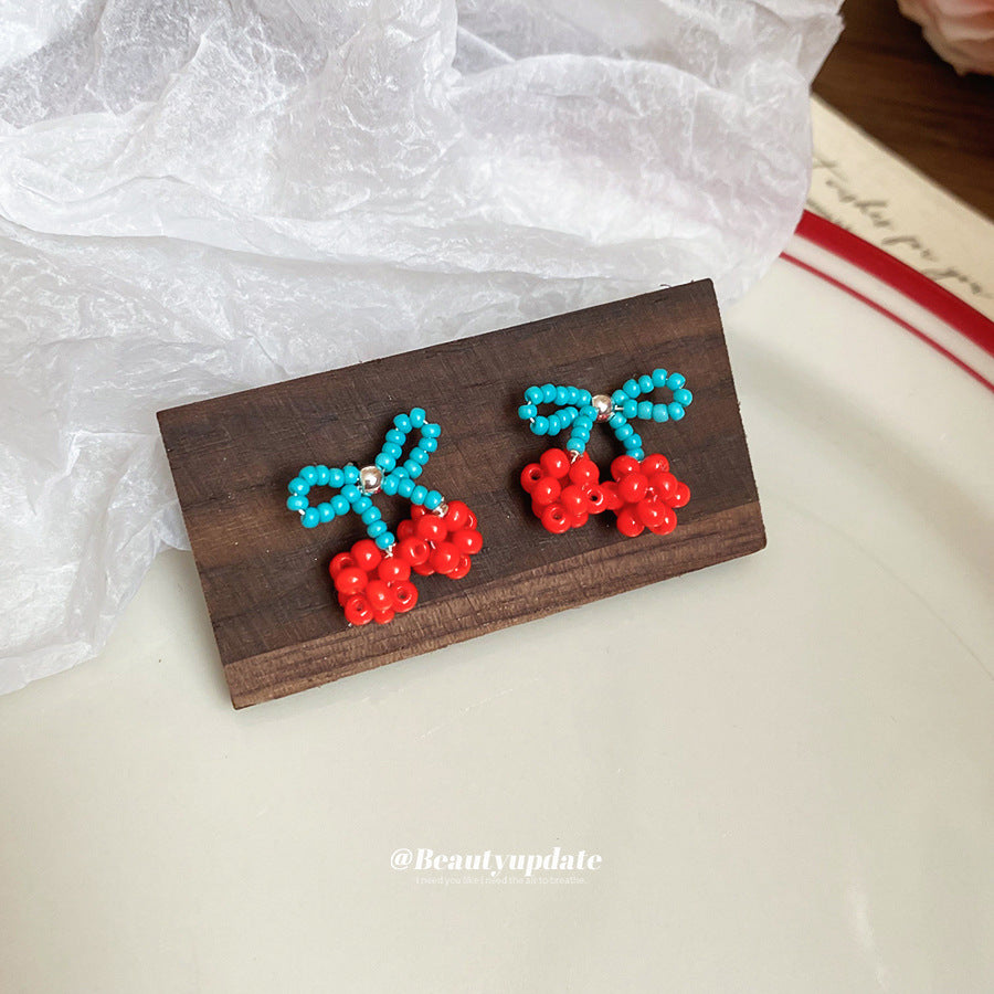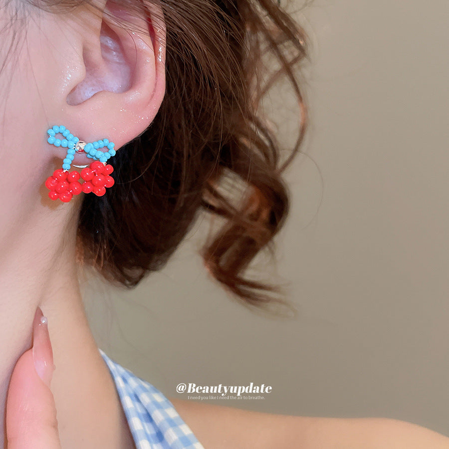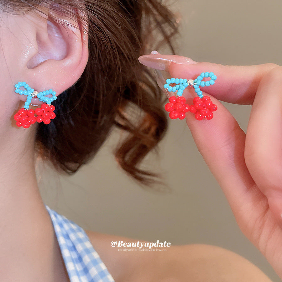 A廠【HE26930】925銀針多巴胺夏日櫻桃串珠耳環甜美可愛耳環小眾設計高級感耳飾 25.06-1