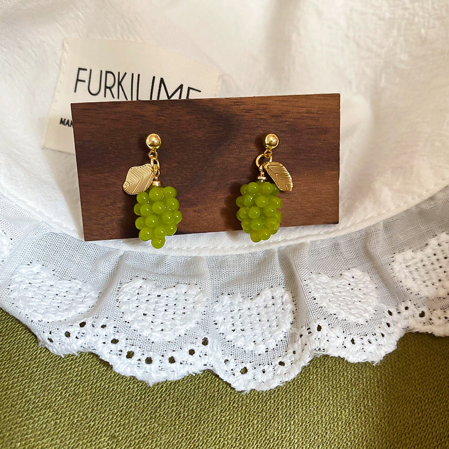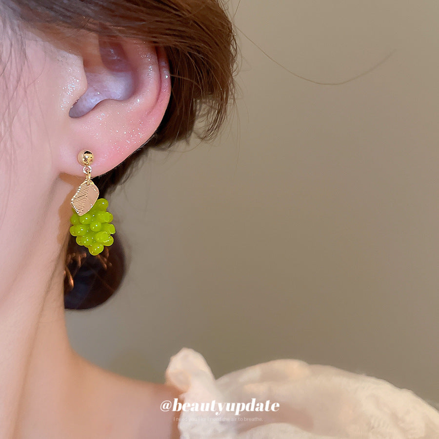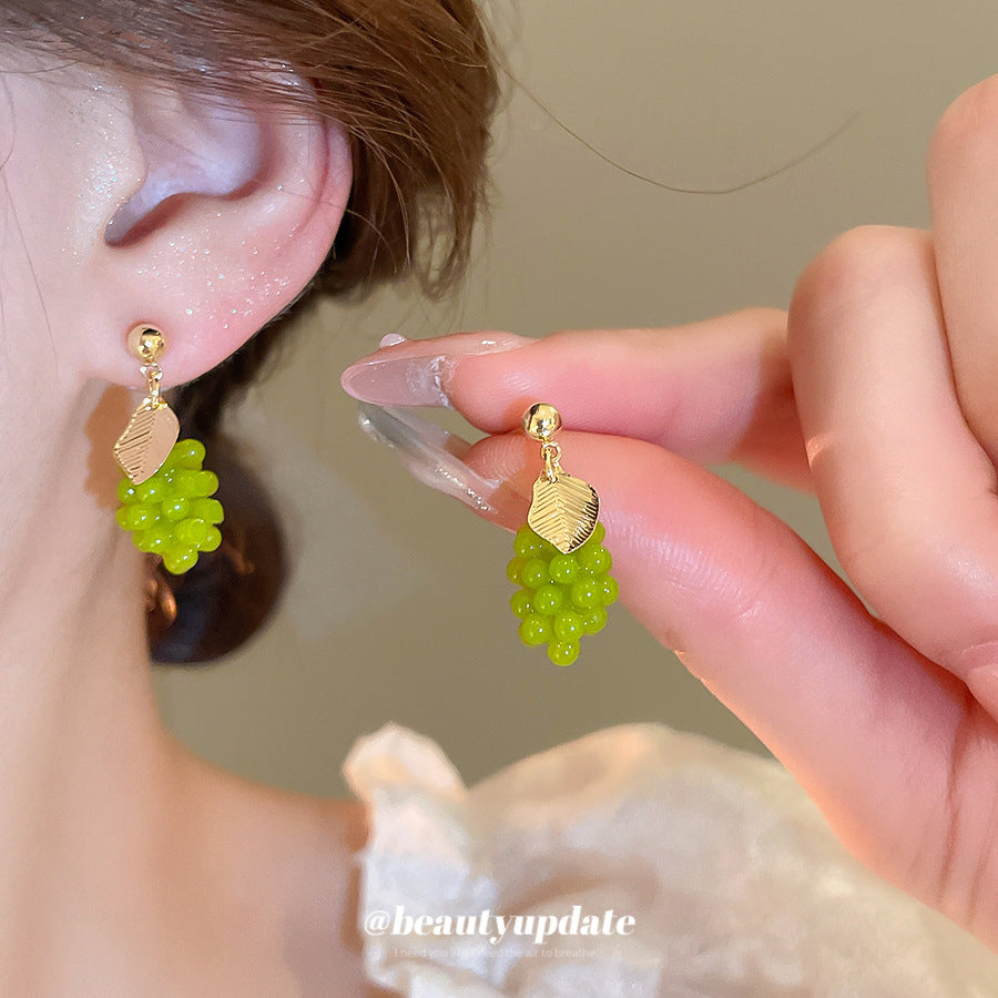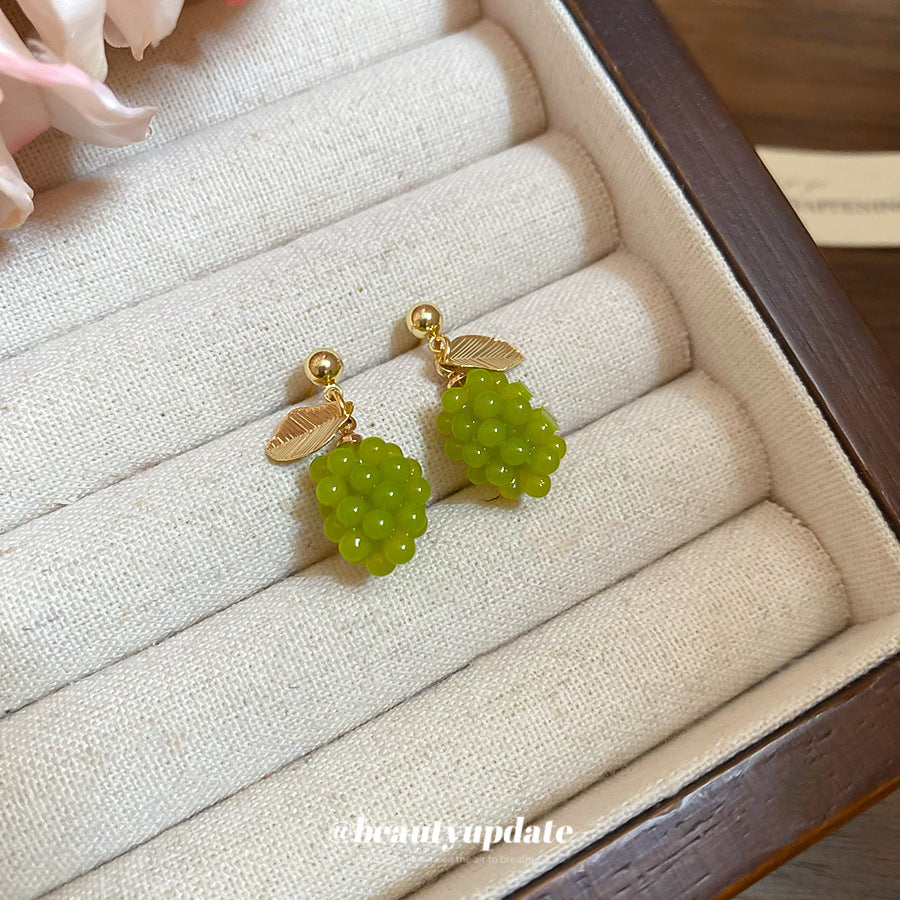A廠【HE26946】925銀針夏季小清新綠葡萄耳環2025新款百搭耳環輕奢高級感耳飾 25.06-2