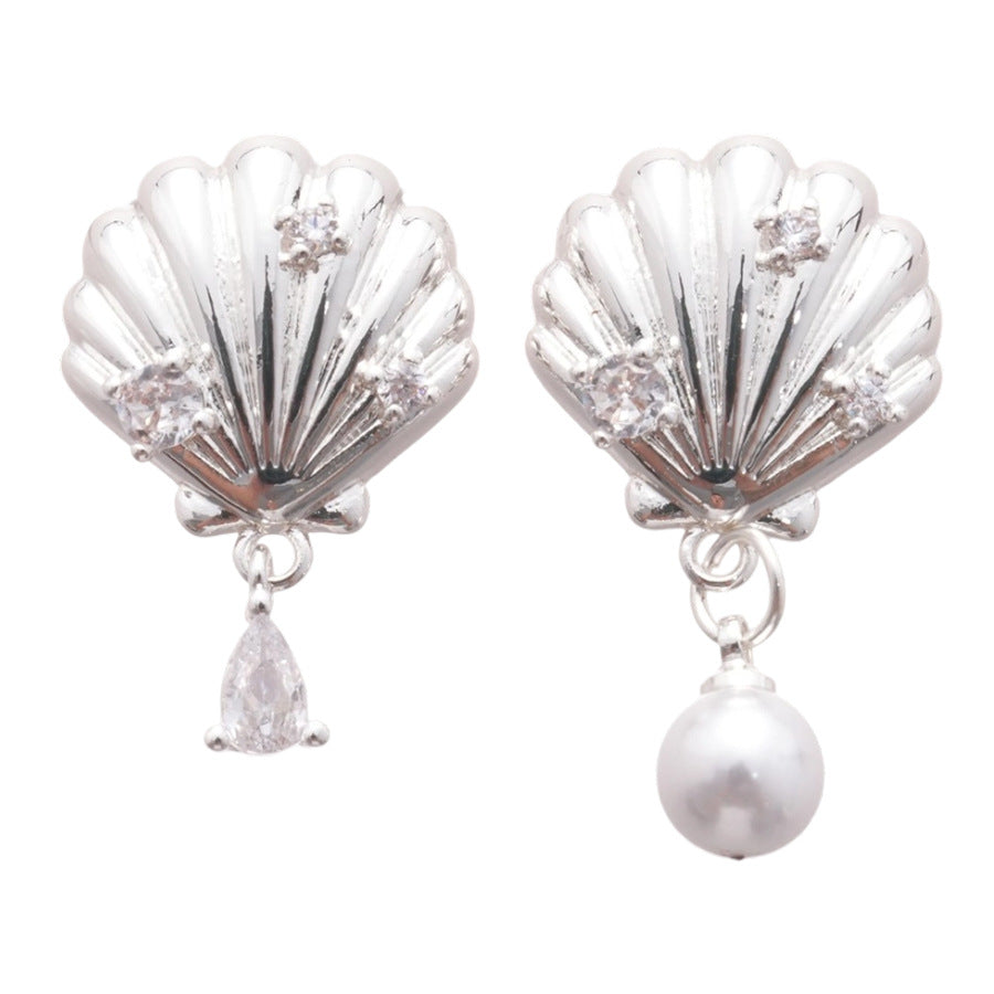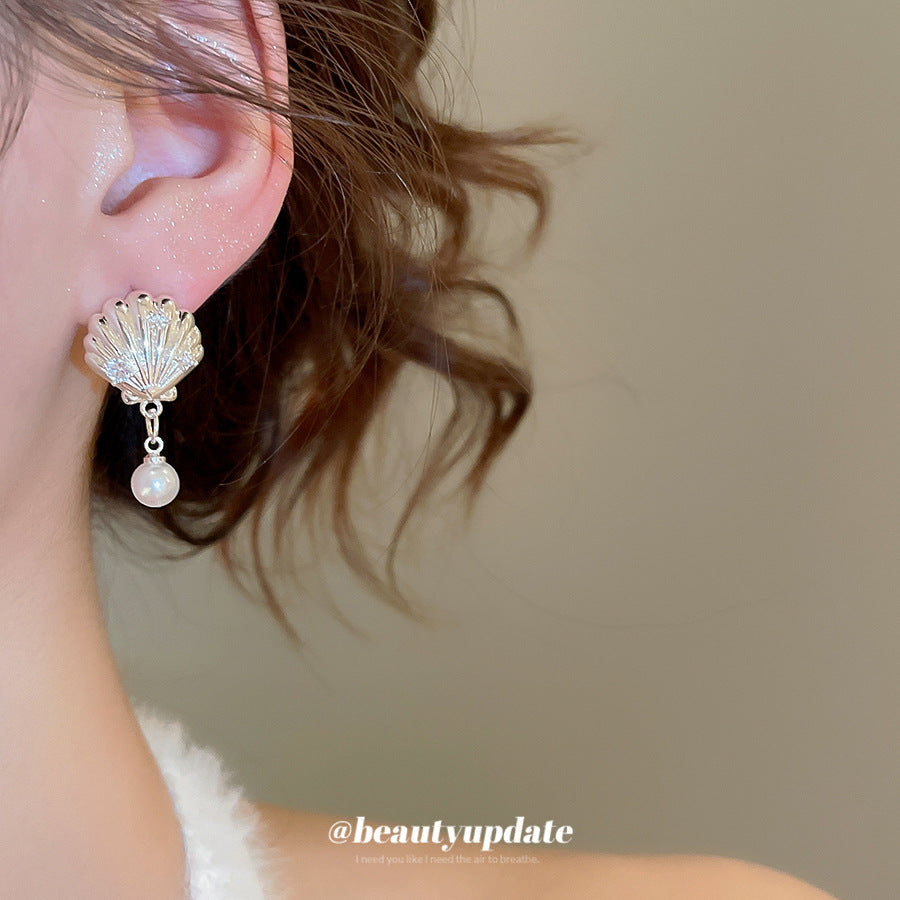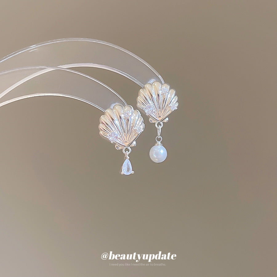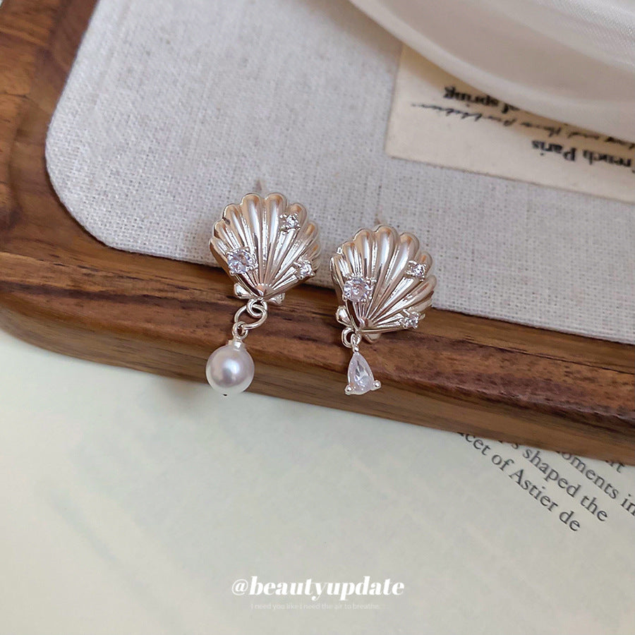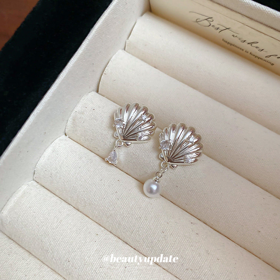A廠【HE26959】925銀針鋯石貝殼珍珠吊墜耳環個性冷淡風百搭耳環時尚潮流氣質耳環女 25.06-2