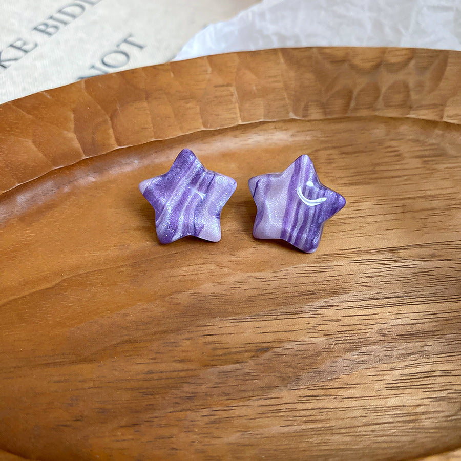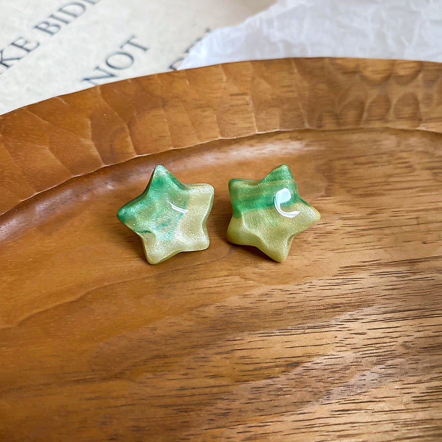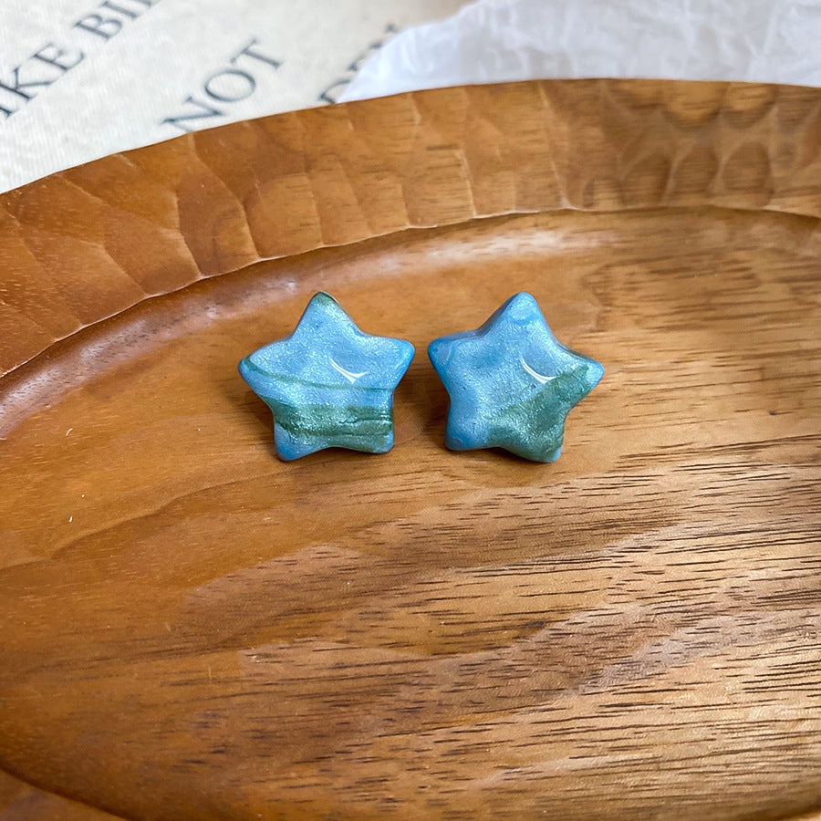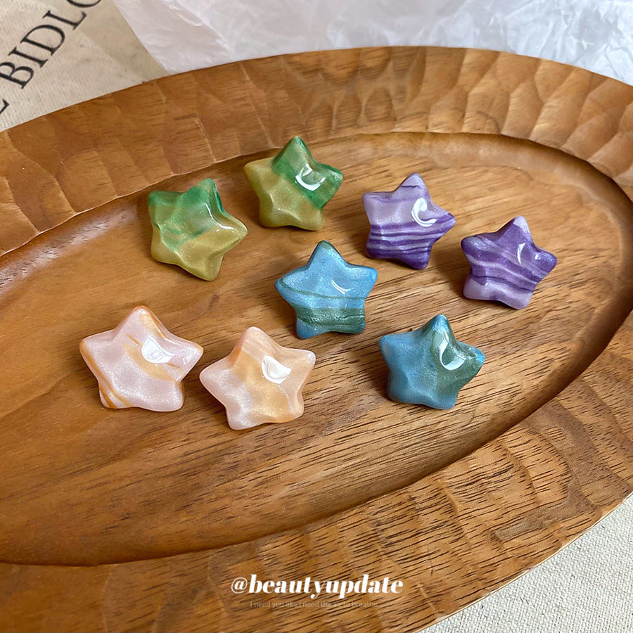 A廠【HE26962】925銀針彩色暈染星星耳環小清新百搭耳環甜美簡約高級感通勤少女耳環 25.06-2