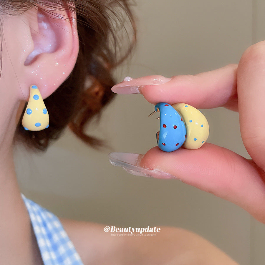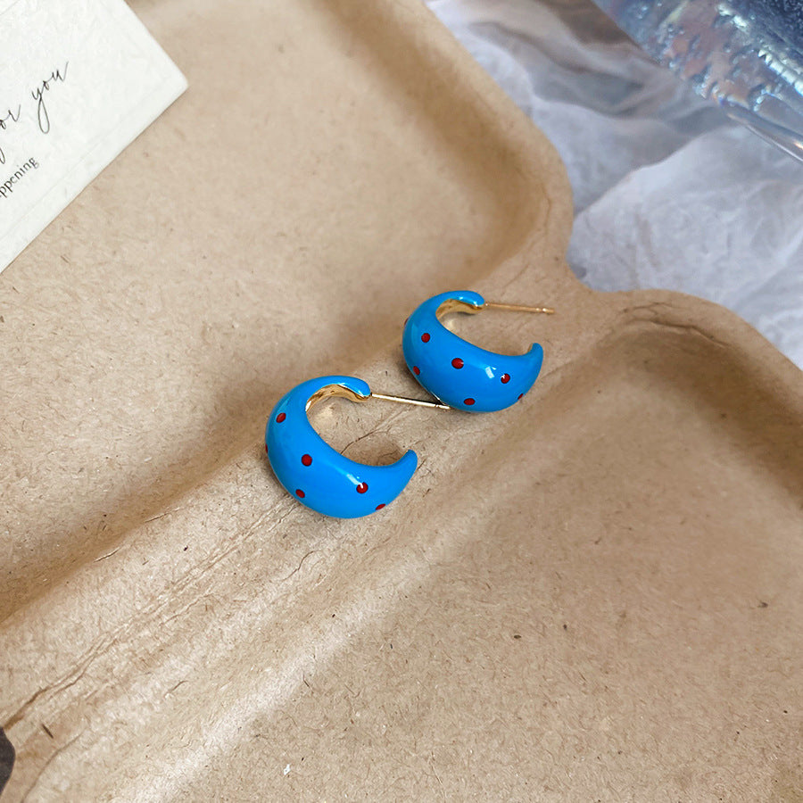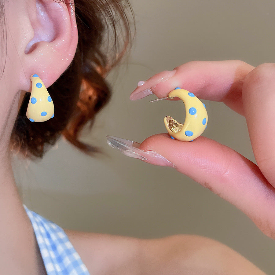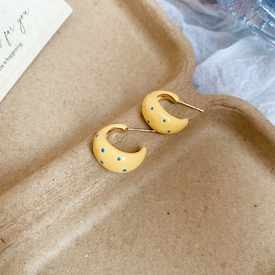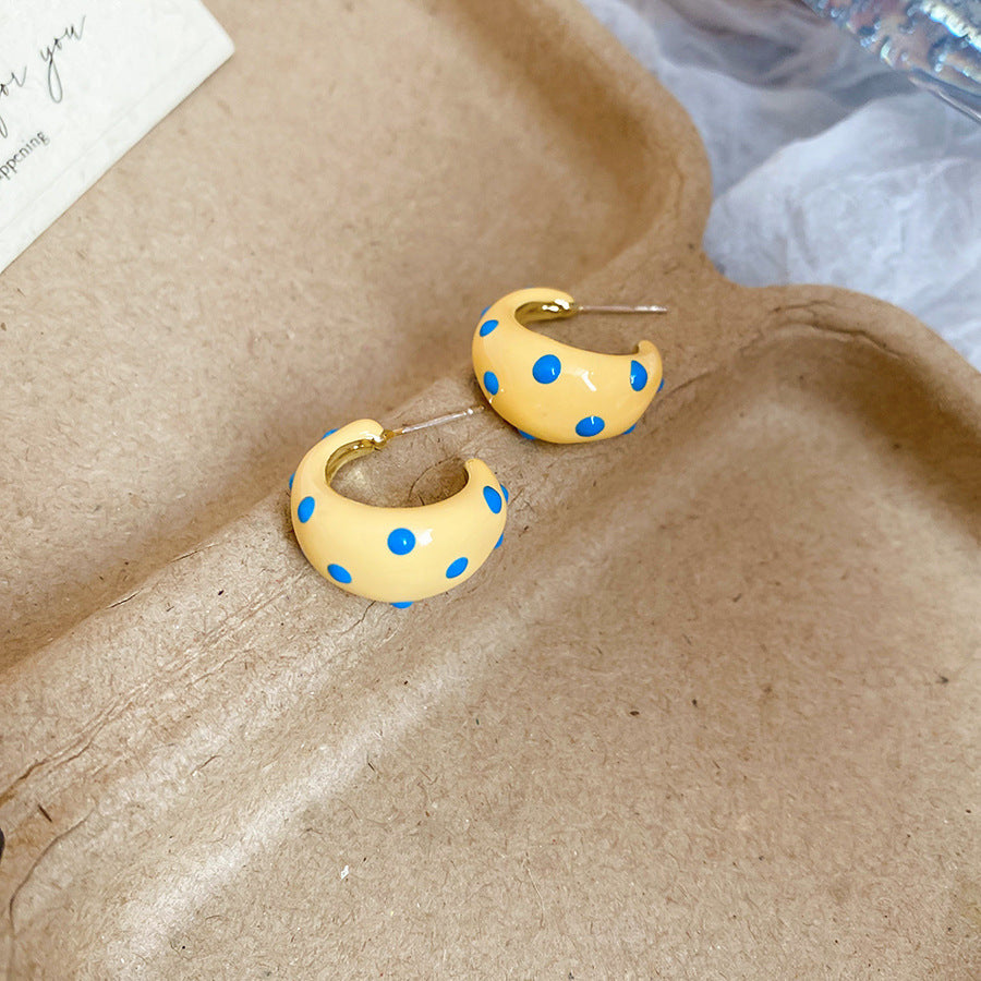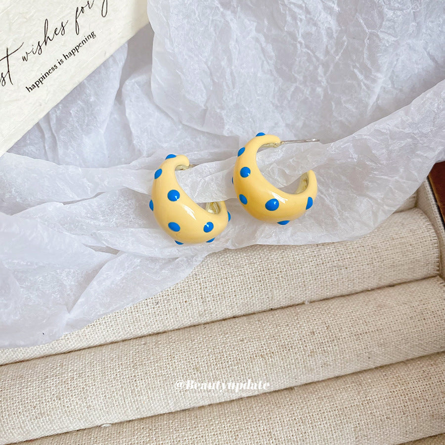 A廠【HE26970】925銀針滴油斑點C型耳環早春新款百搭耳環高級感氣質耳飾設計感小眾 25.06-1