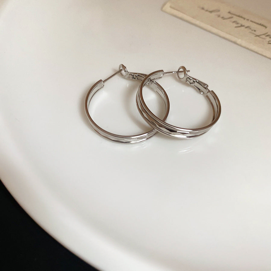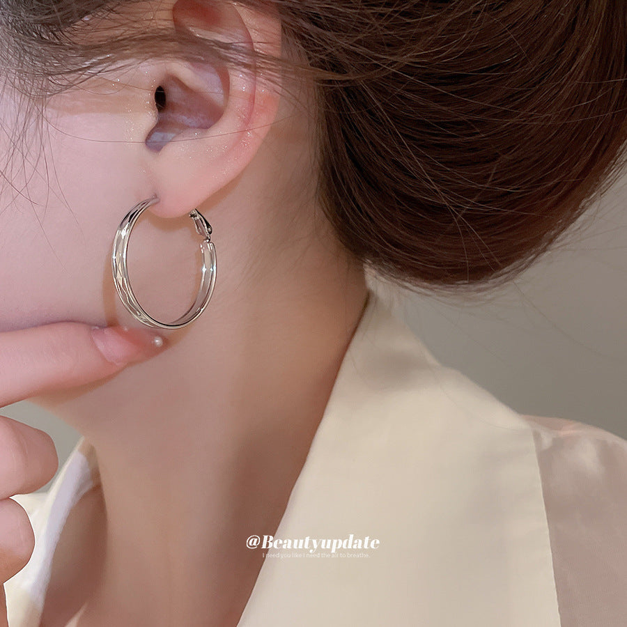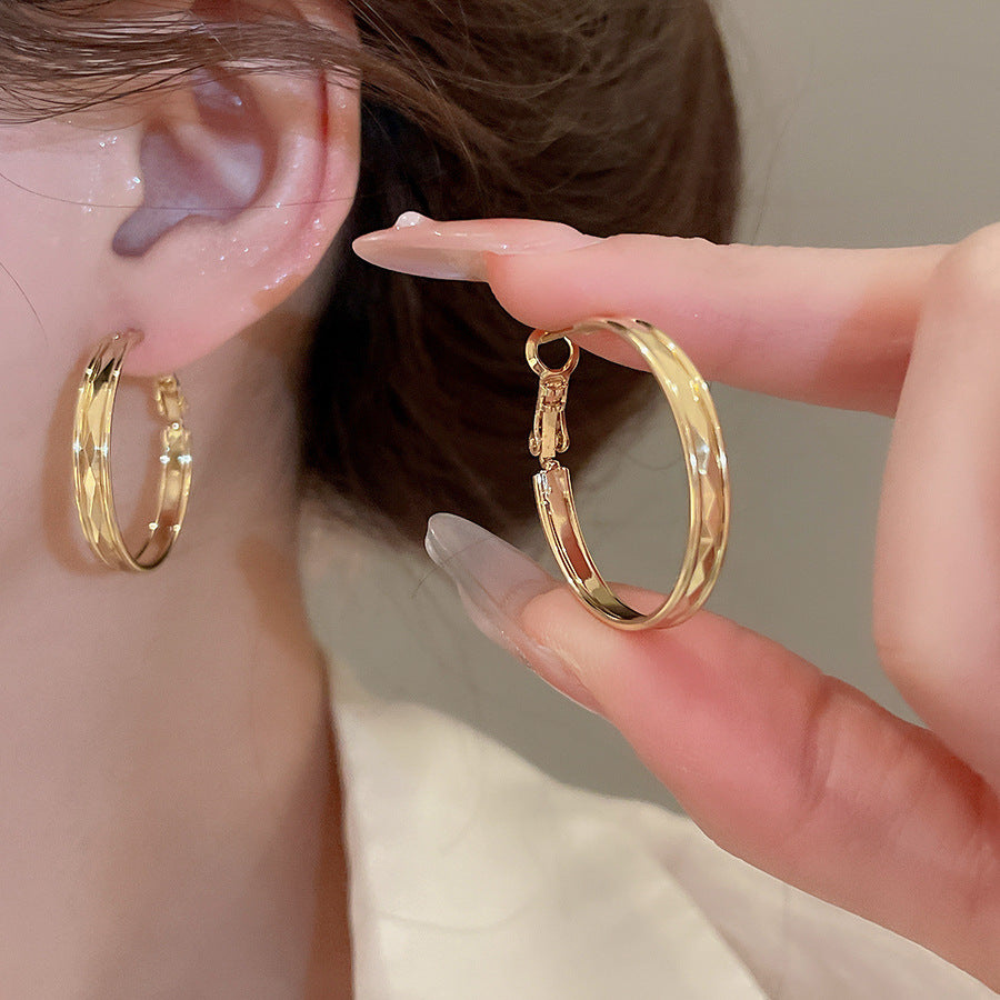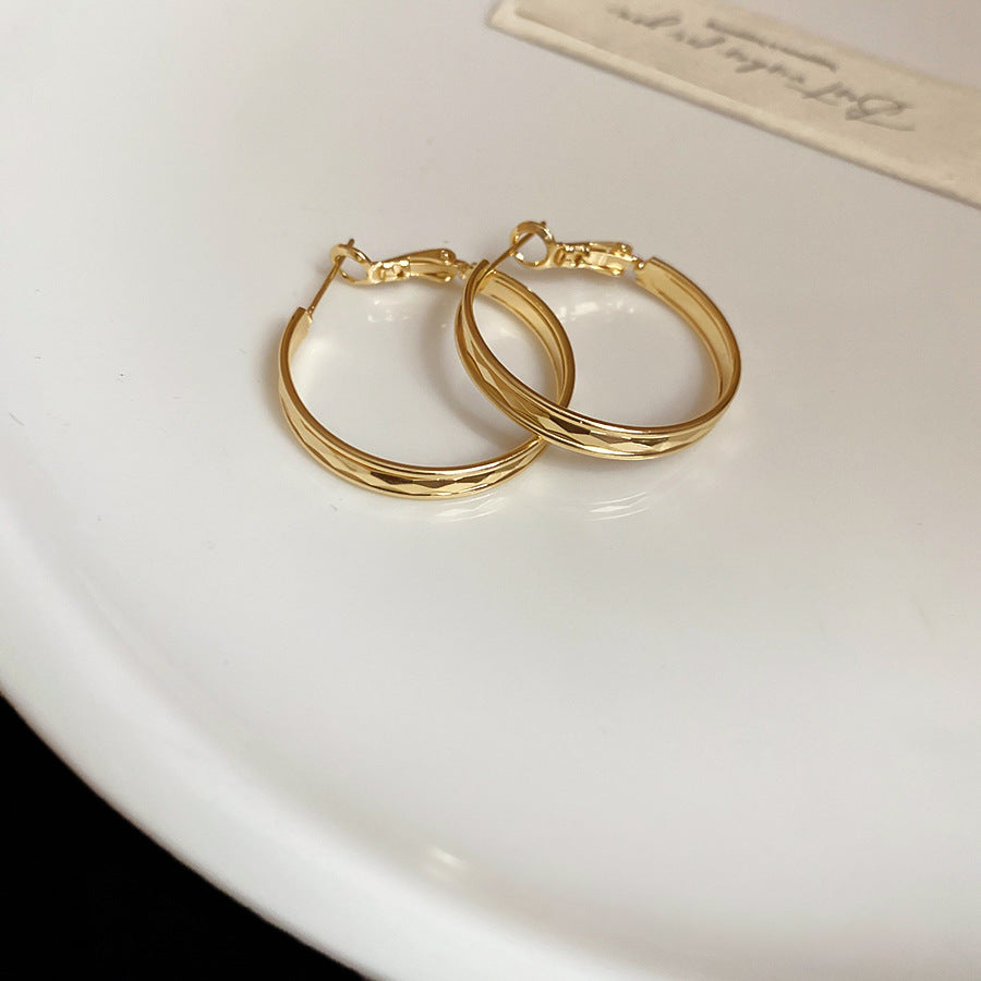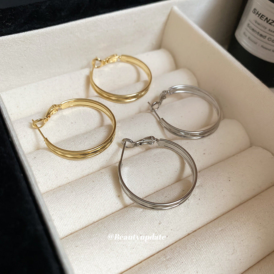 A廠【HE27001】18k真金電鍍925銀針紋路光面圓形耳圈歐美ins百搭耳環輕奢高級感耳飾 25.06-2