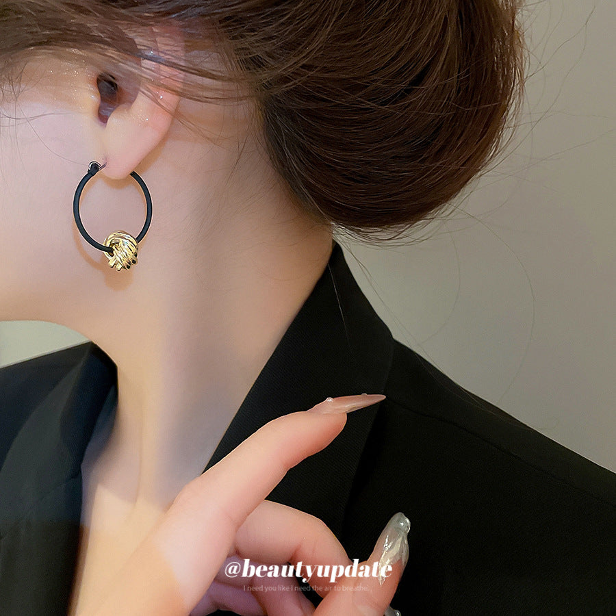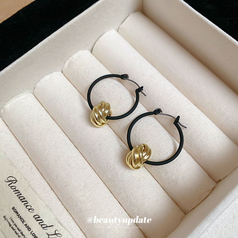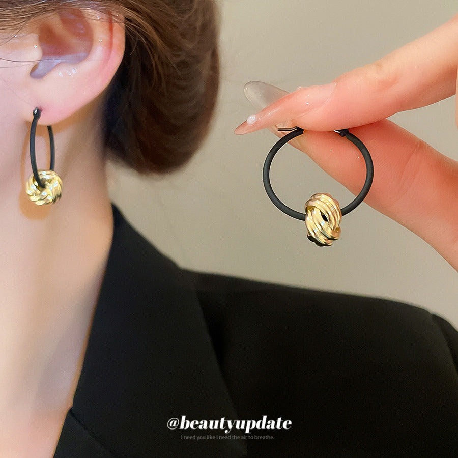 A廠【HE27029】歐美黑色新款耳環女幾何型麻花耳圈簡約時尚耳環個性氣質耳環小眾 25.06-3