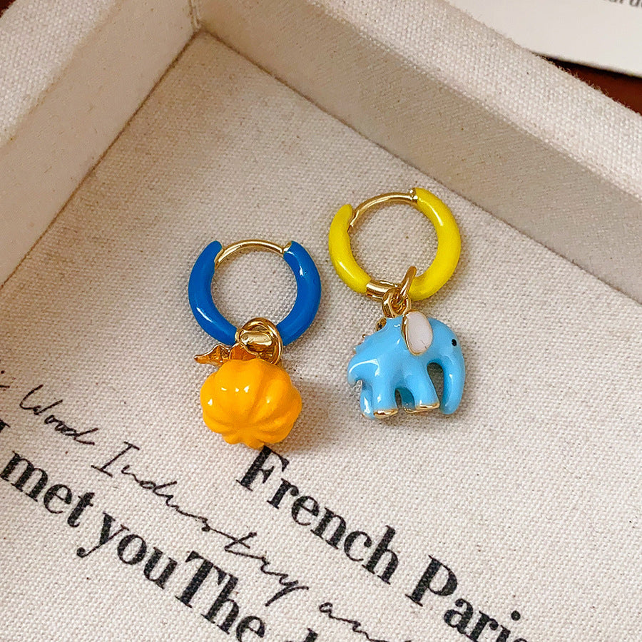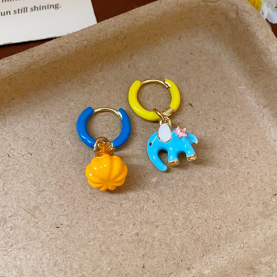 A廠【HE27040】滴油大象南瓜圓形吊墜耳環小清新時尚簡約耳環個性小眾設計感耳環 25.07-3