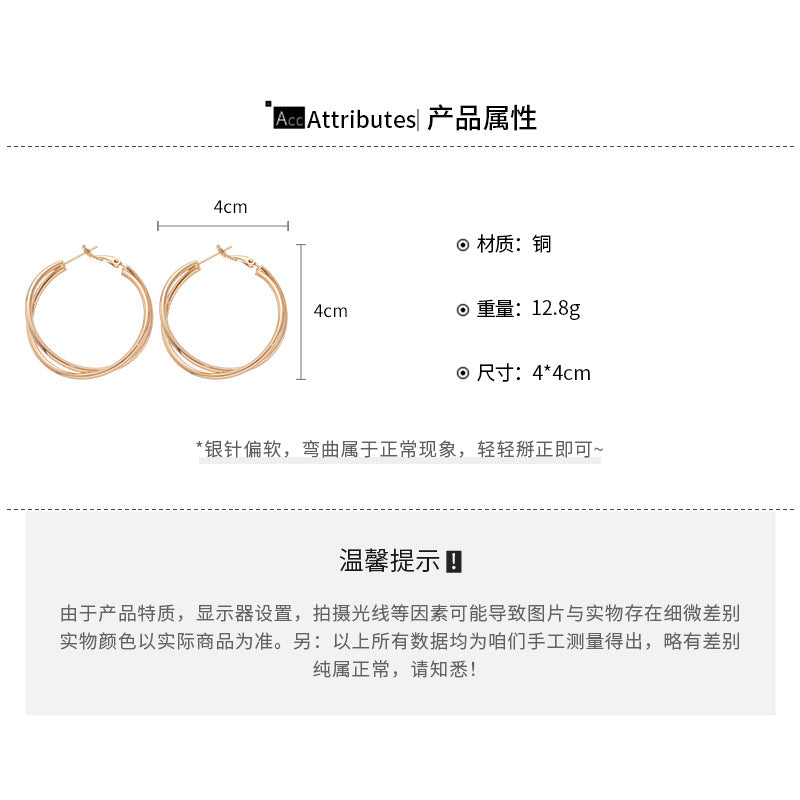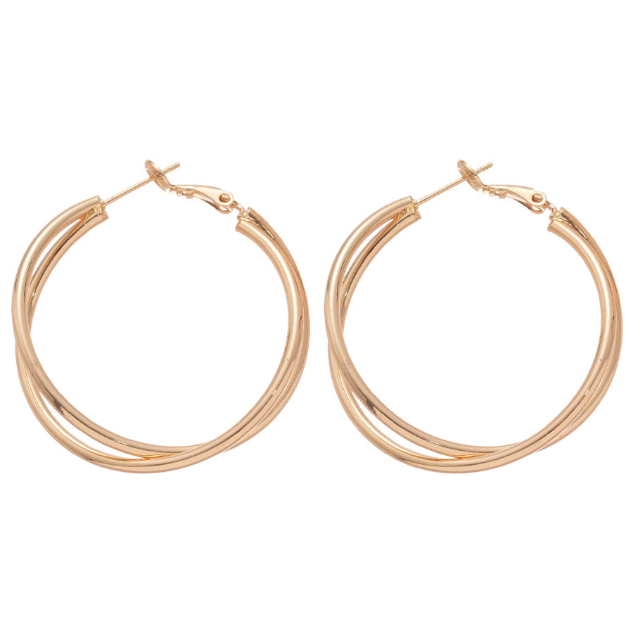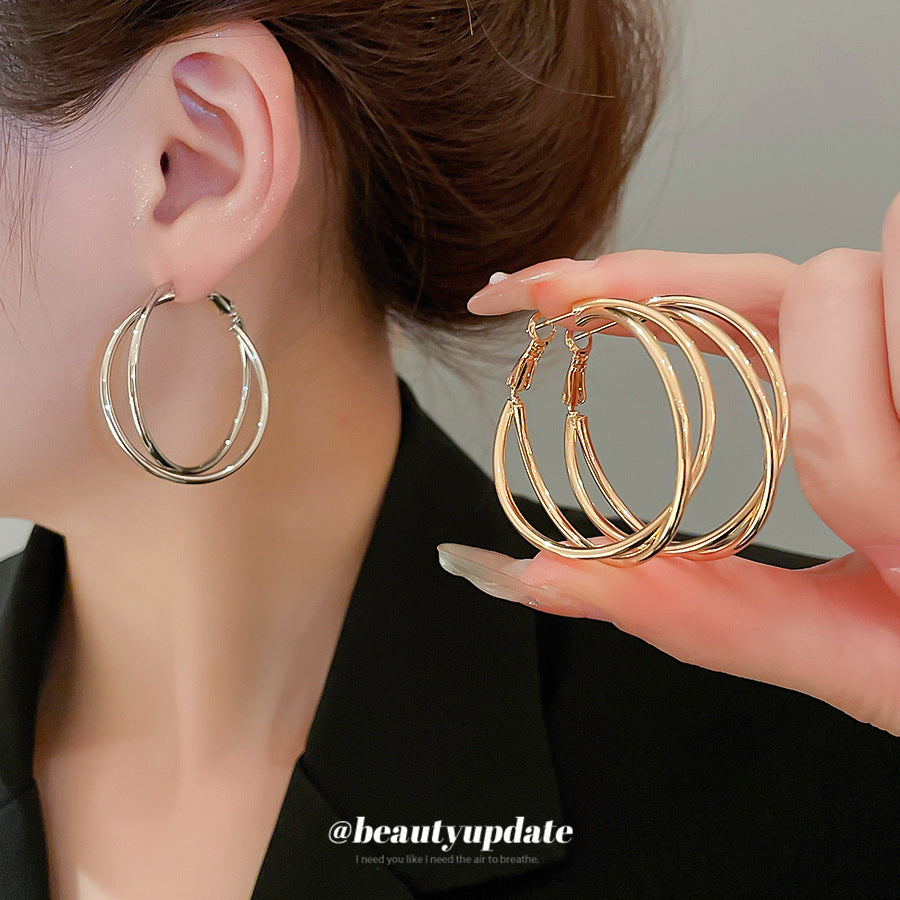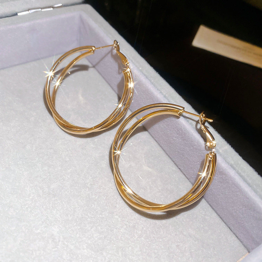 A廠【HE27215】925銀針光面雙層交叉圓形耳圈歐美時尚百搭耳環個性耳飾設計感小眾女 25.06-3