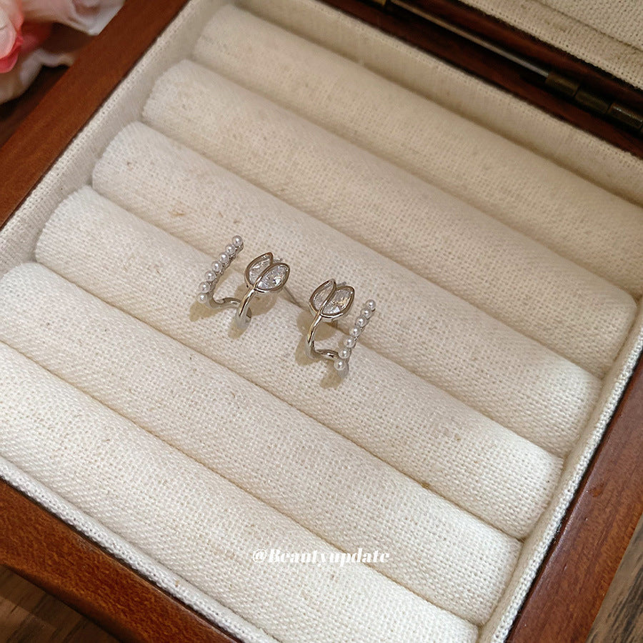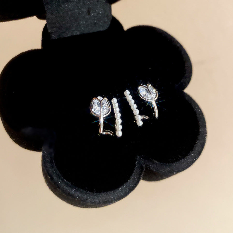 A廠【HE27290】925銀針鬱金香鋯石珍珠耳環女2025新款耳環輕奢高級感耳飾設計感小眾 25.06-3