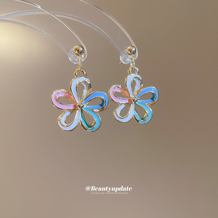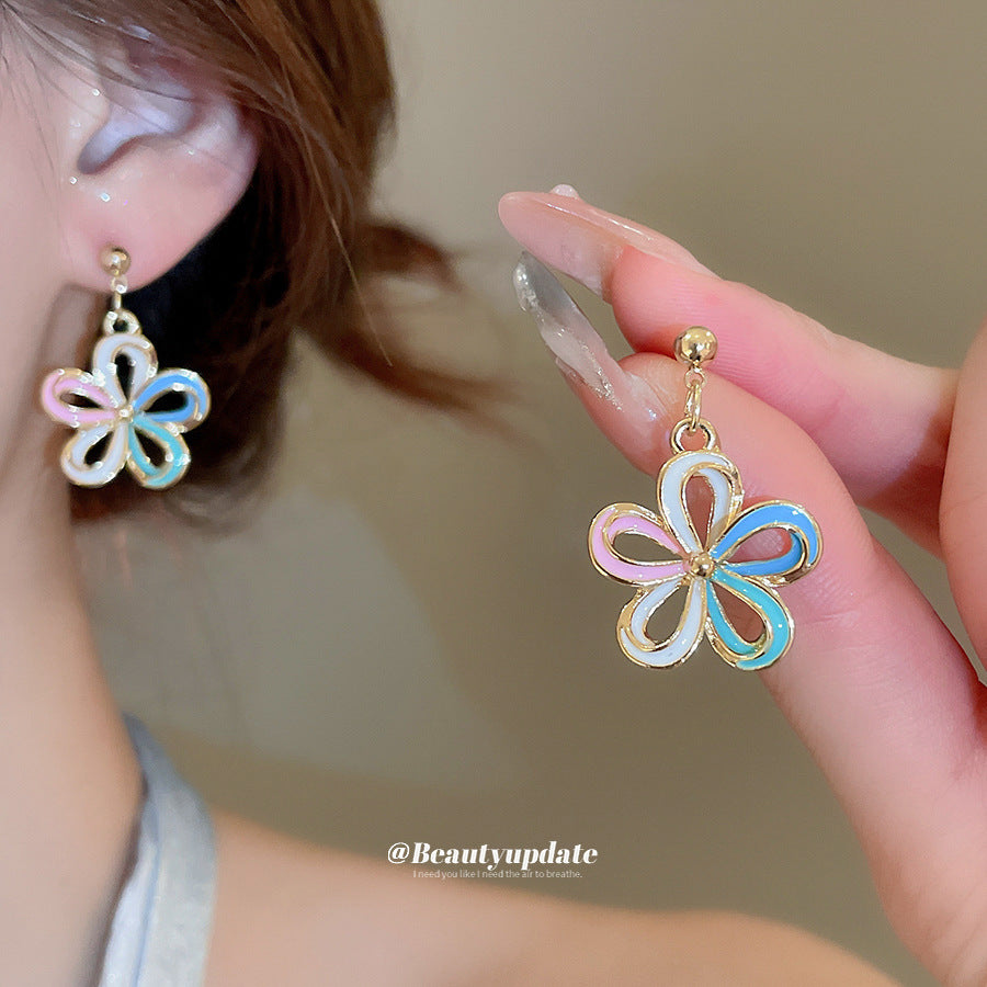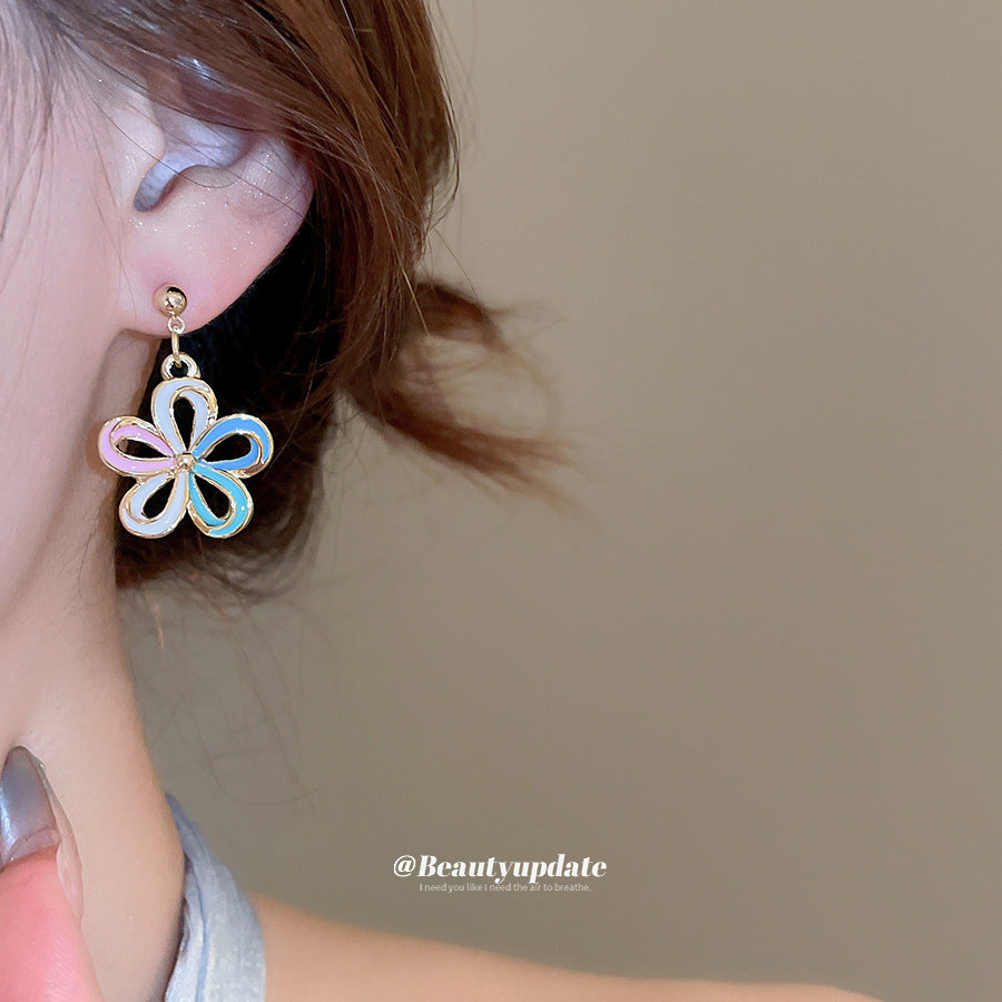 A廠【HE27320】925銀針滴油鏤空花朵吊墜耳環度假風清新甜美氣質耳環輕奢高級感耳飾 25.06-3