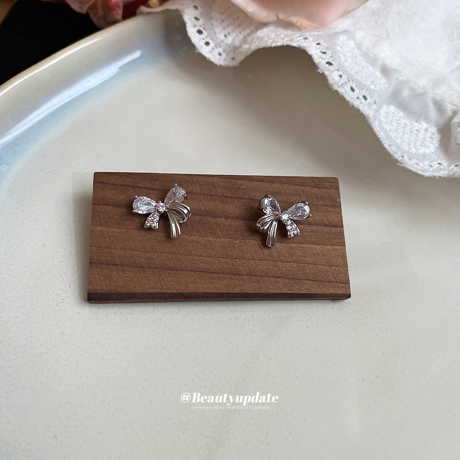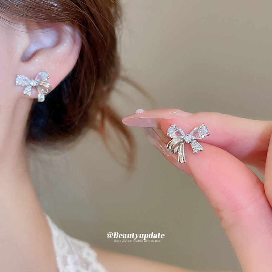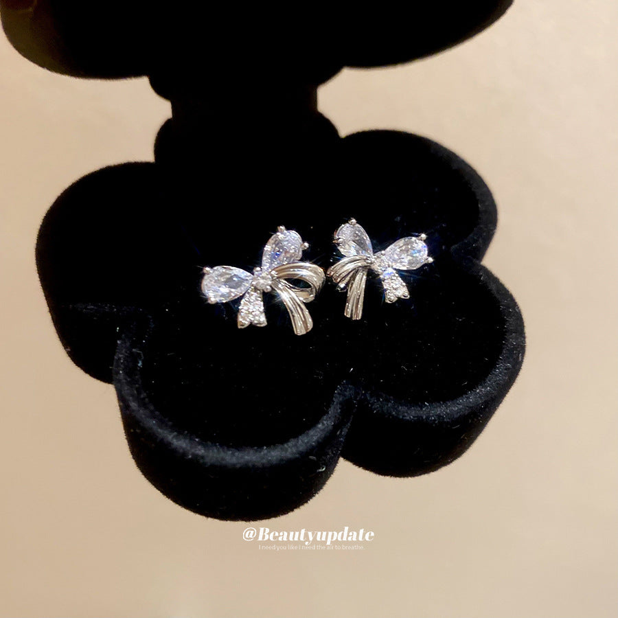 A廠【HE27341】925銀針鋯石蝴蝶結耳環百搭耳環輕奢高級感時尚氣質耳環設計感小眾女 25.06-3
