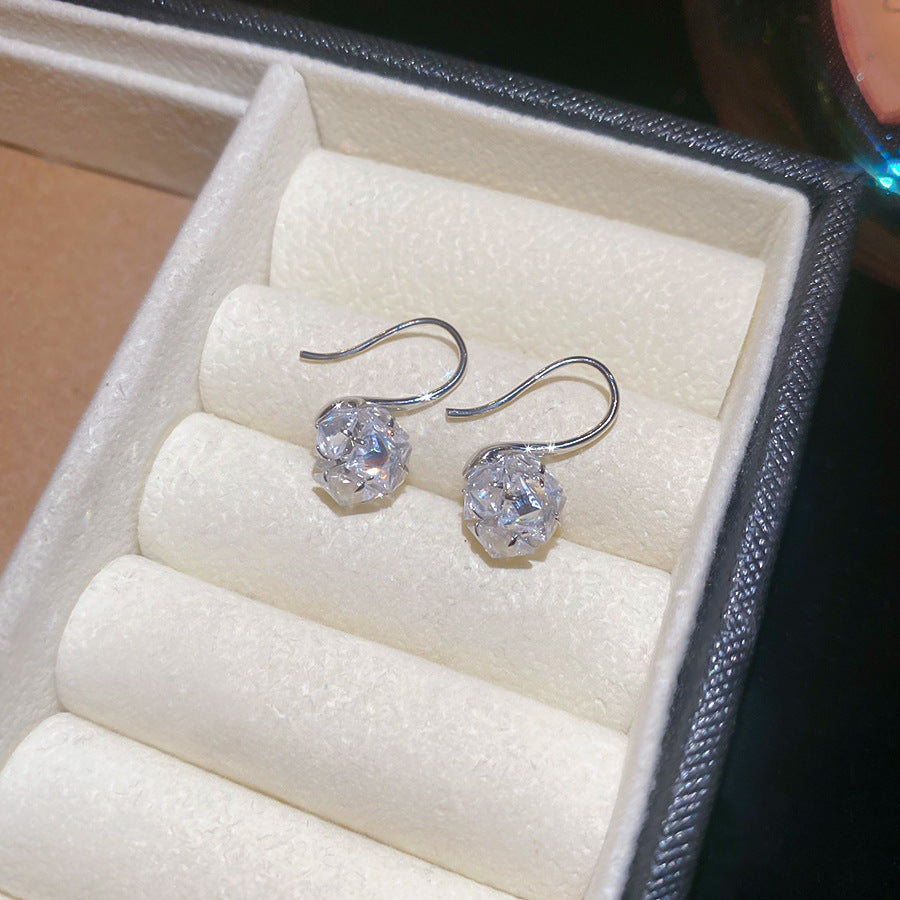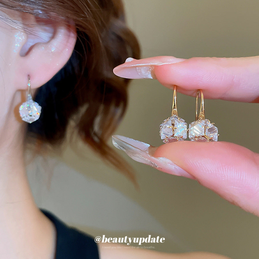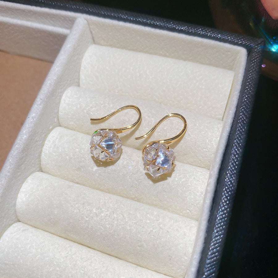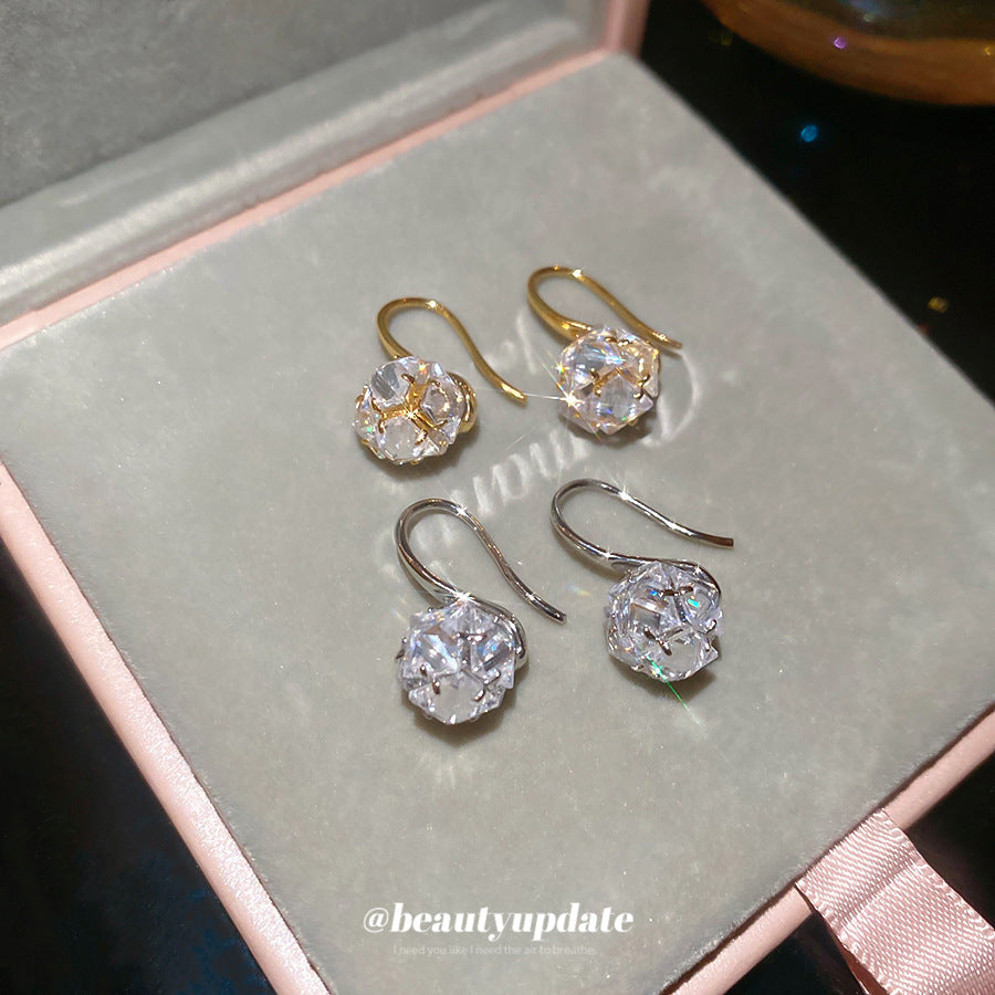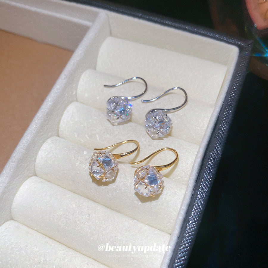 A廠【HE27374】法式鋯石切面圓形吊墜耳環優雅耳鉤耳環百搭小眾耳飾輕奢高級感女 25.06-4