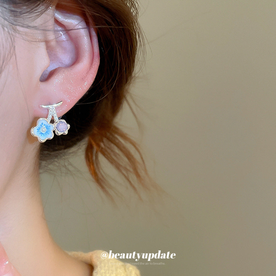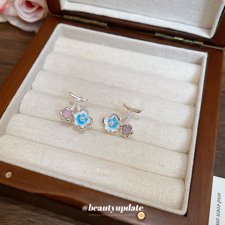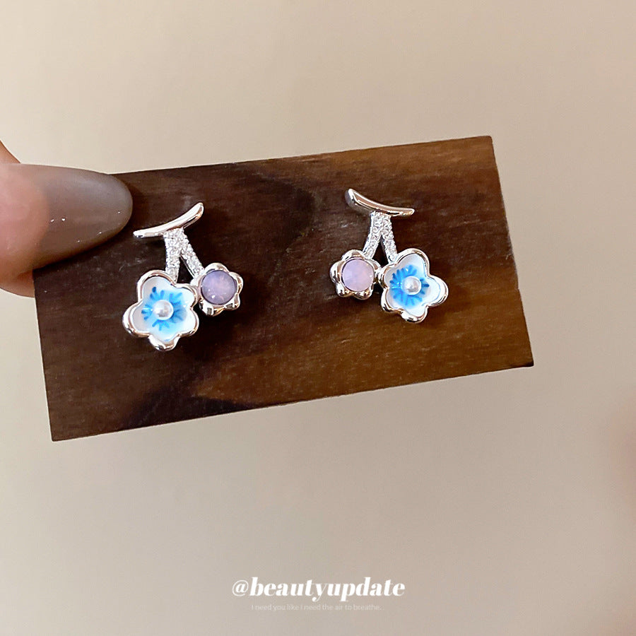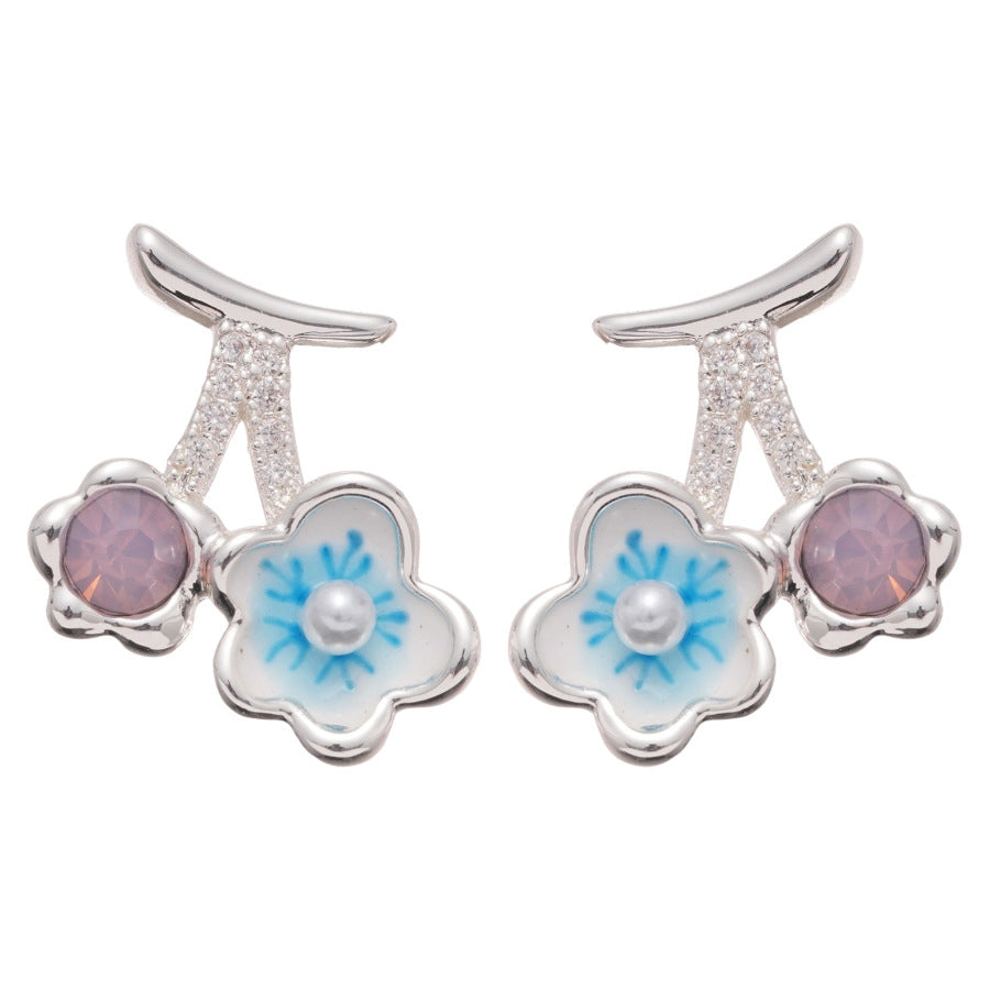A廠【HE27411】925銀針鋯石滴油櫻桃花朵珍珠吊墜耳環清新甜美耳環輕奢高級感耳飾女 25.06-4