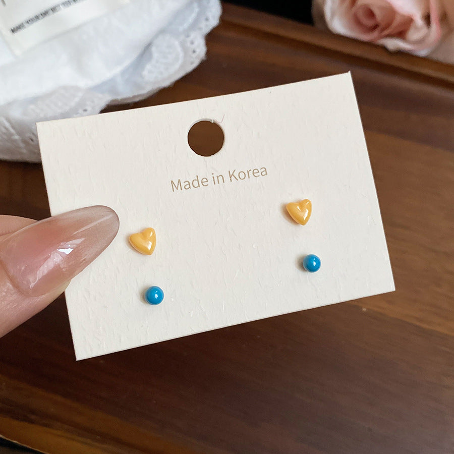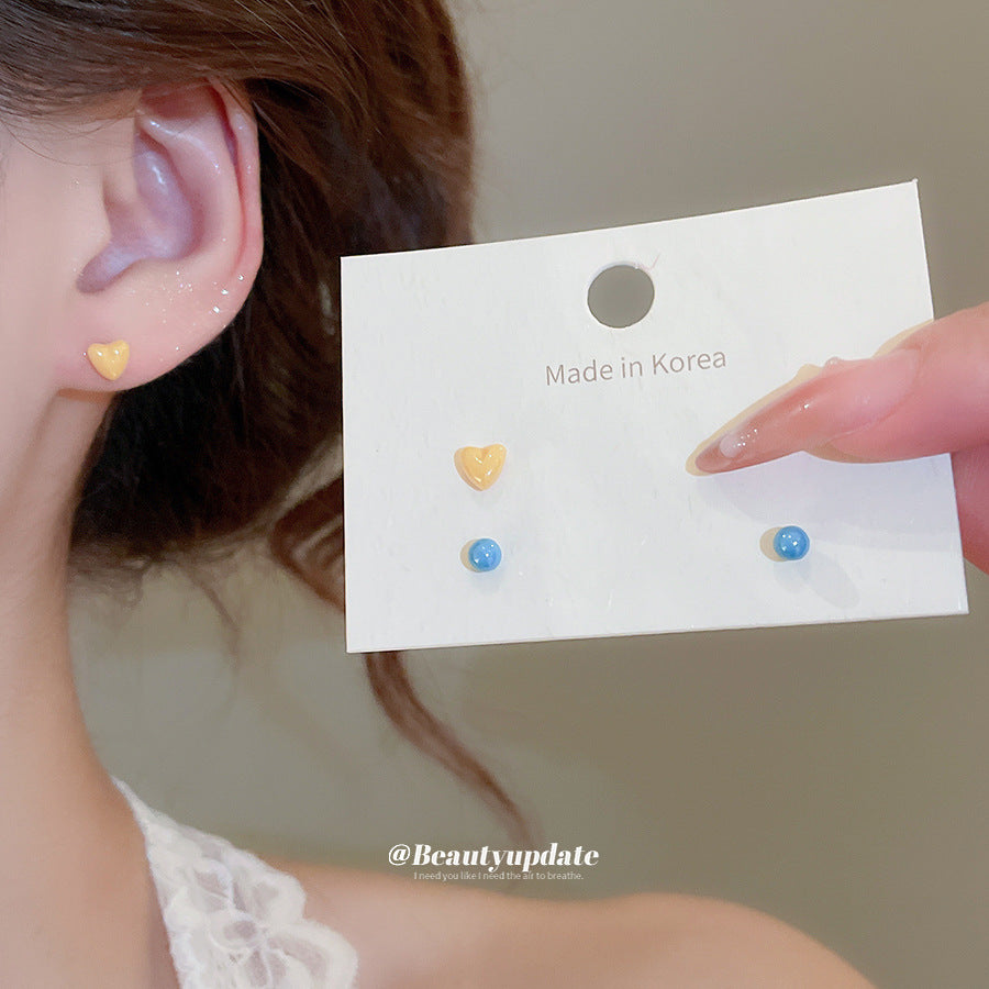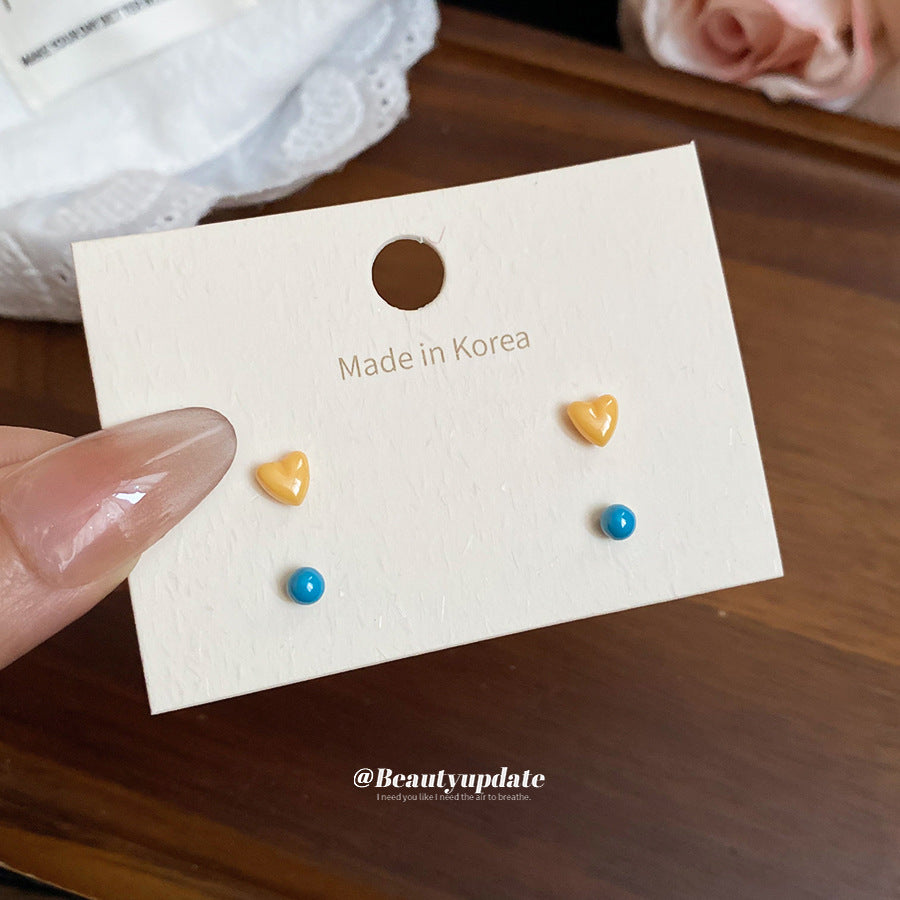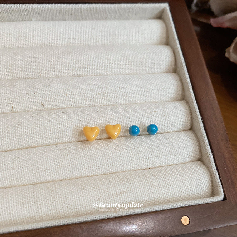 A廠【HE27418】四件組925銀針陶瓷愛心圓形耳環迷你小巧簡約百搭耳環耳環設計感小眾 25.06-4