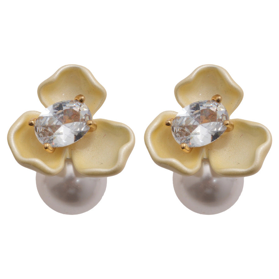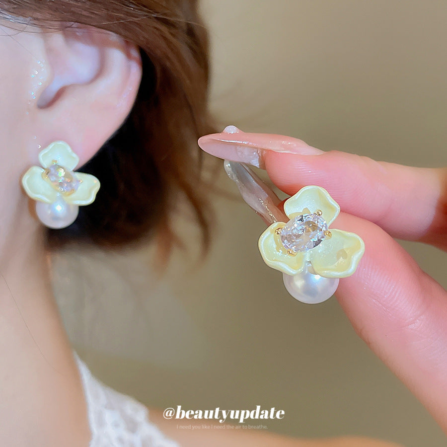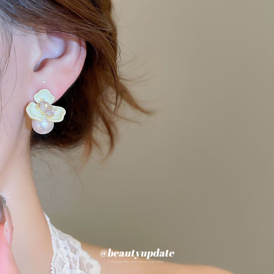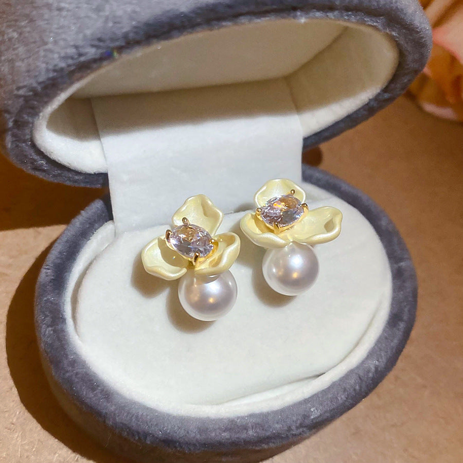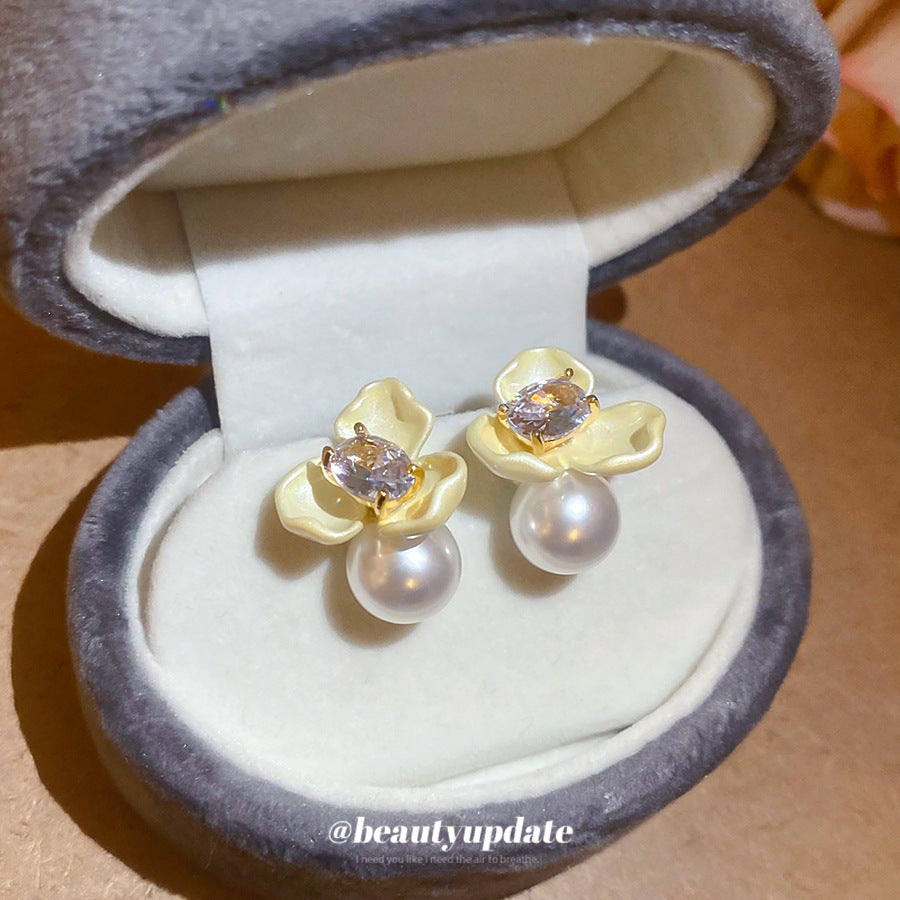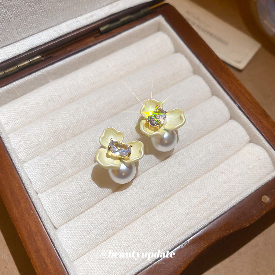 A廠【HE27434】925銀針鋯石花朵珍珠耳環精緻優雅時尚耳環輕奢高級感耳飾設計感小眾 25.06-4