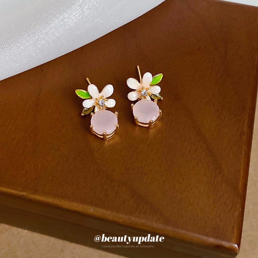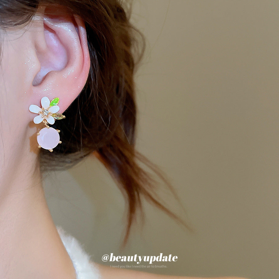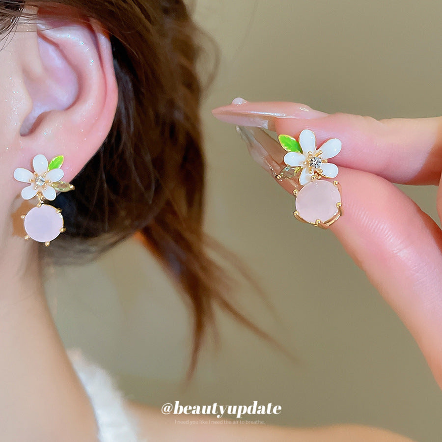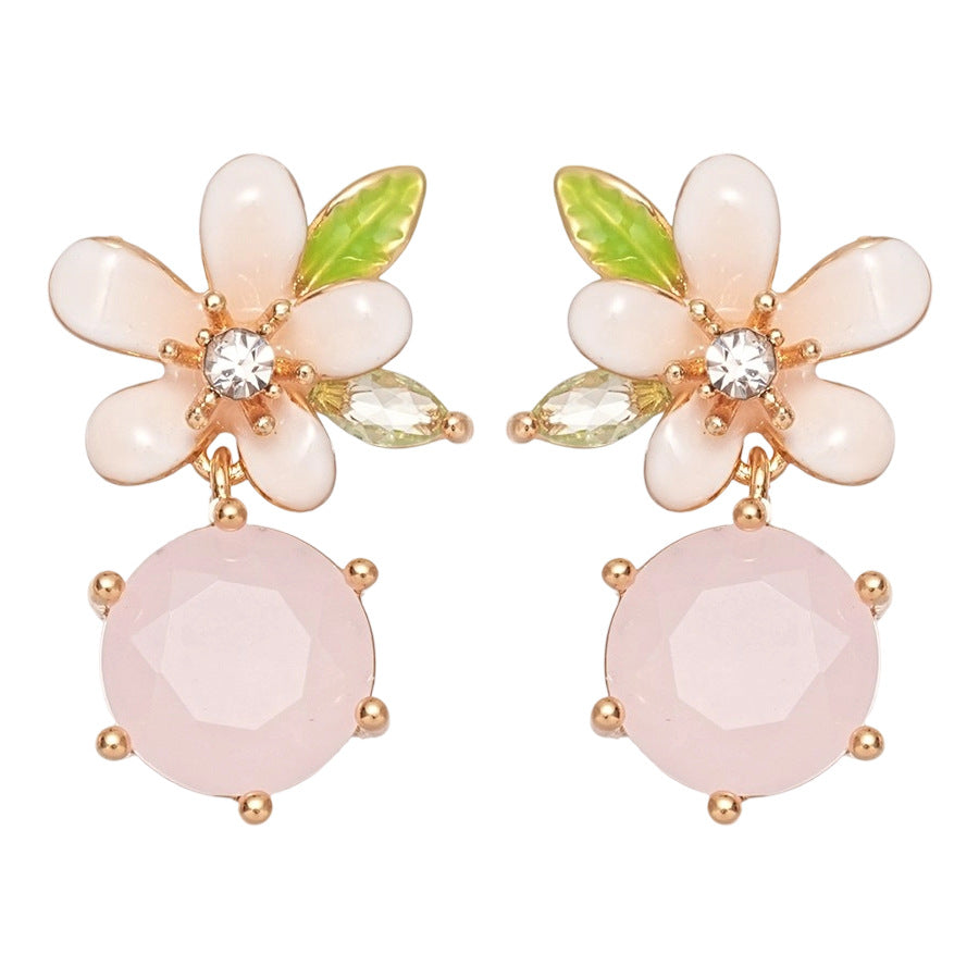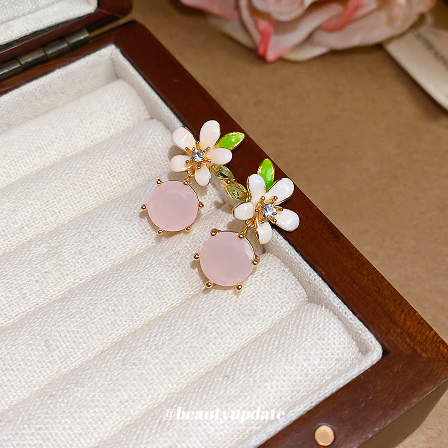 A廠【HE27438】925銀針滴油鋯石花朵圓形吊墜耳環小清新甜美氣質耳環輕奢高級感耳飾 25.06-4