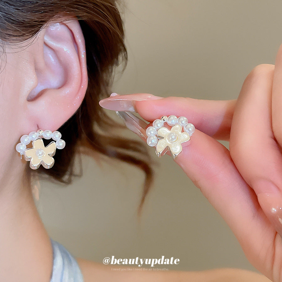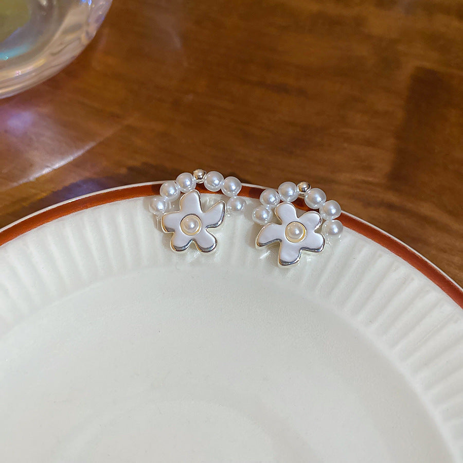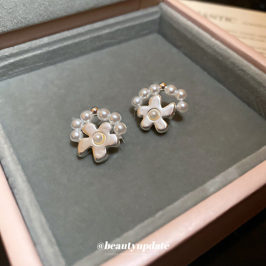 A廠【HE27492】925銀針珍珠花朵耳環冷淡風時尚簡約小眾百搭精緻耳環輕奢高級感耳飾 25.07-1