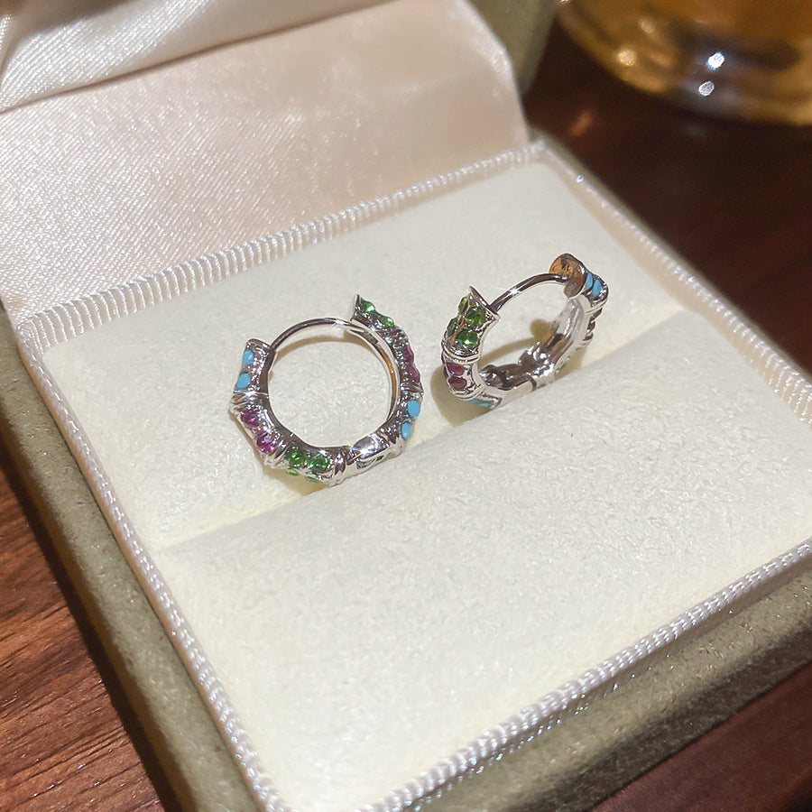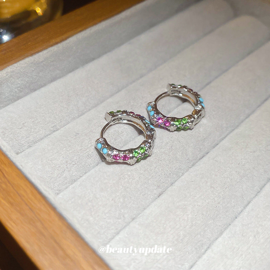 A廠【HE27524】鑲鑽幾何圓形彩色耳環時尚簡約百搭氣質耳環耳環輕奢高級感耳飾女 25.07-1