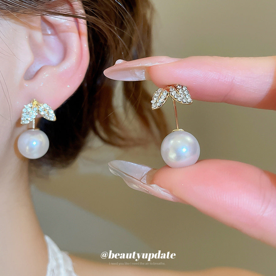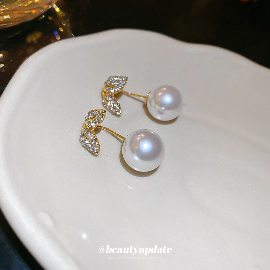 A廠【HE27526】超閃鑲鑽魚尾珍珠前後帶耳環時尚簡約優雅氣質耳環輕奢高級感耳飾 25.07-1