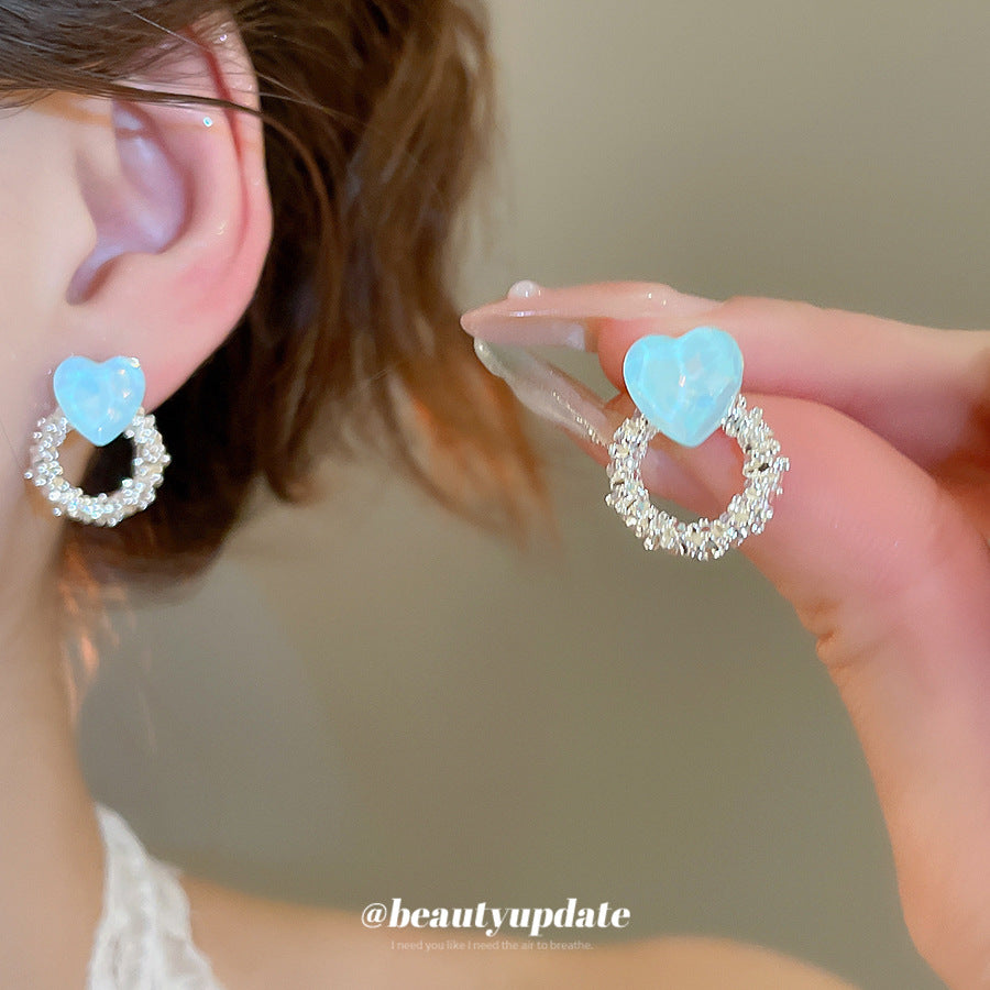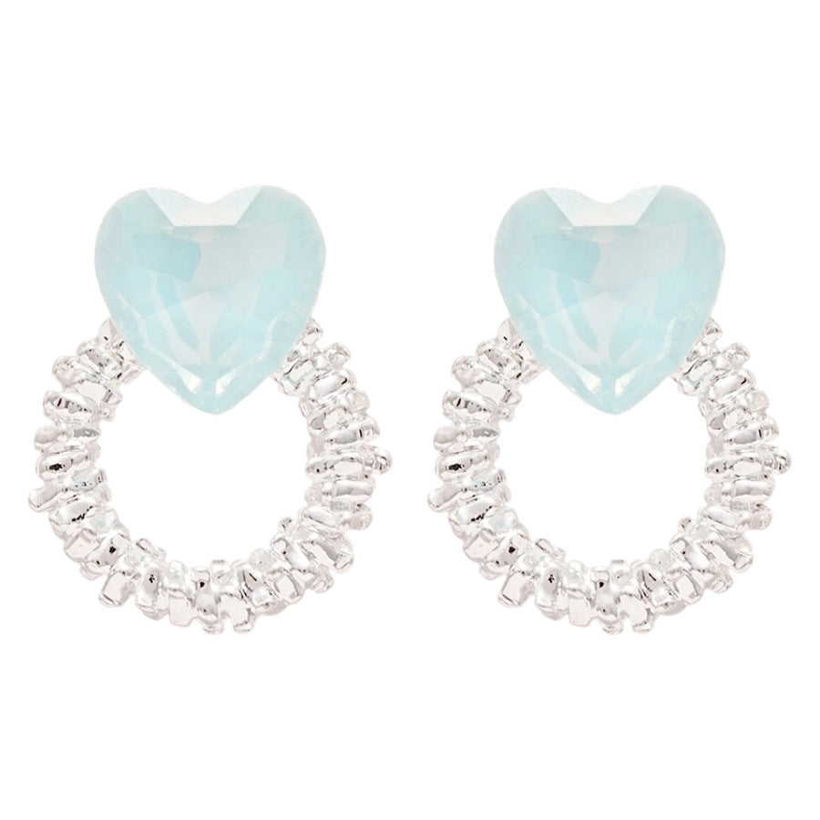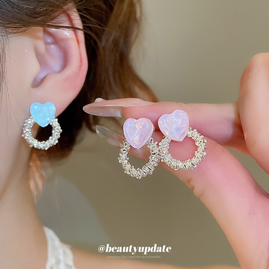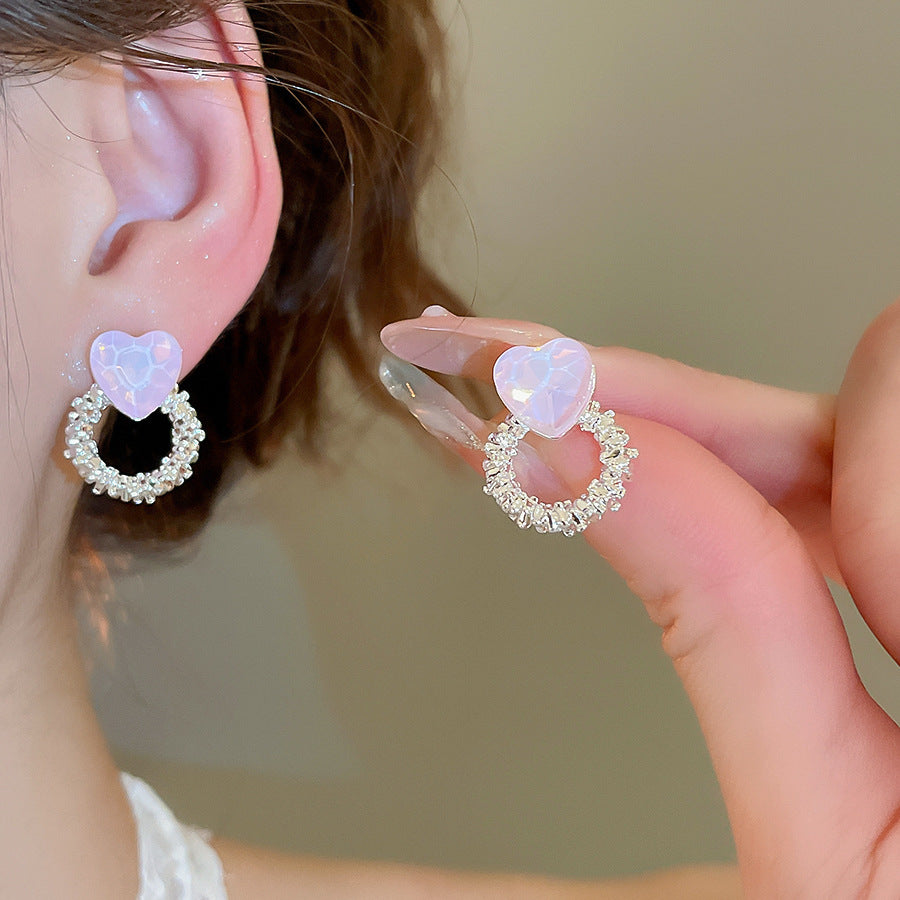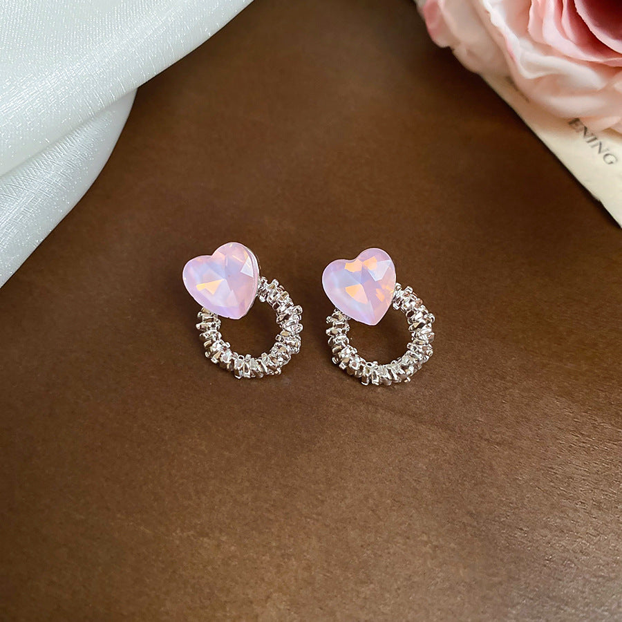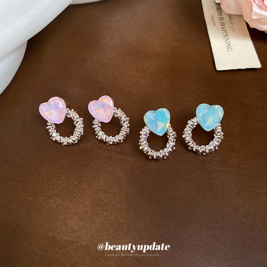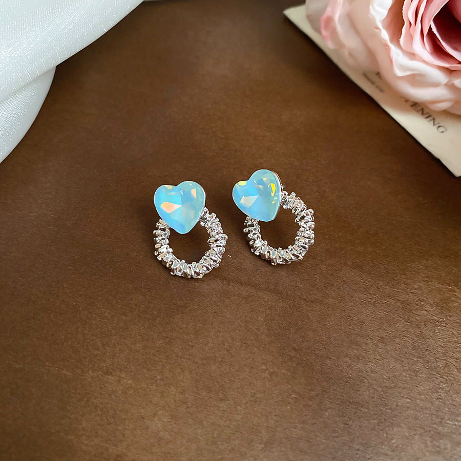 A廠【HE27535】925銀針水晶愛心幾何圓形耳環夏日小清新甜美氣質耳環輕奢高級感耳飾 25.07-1