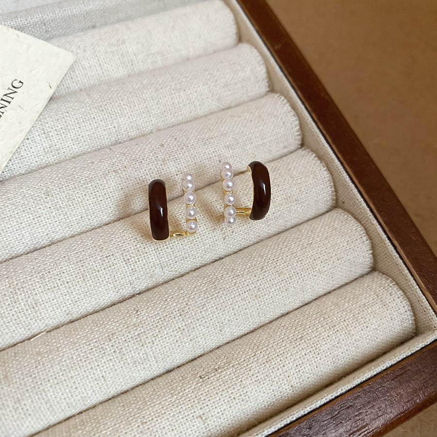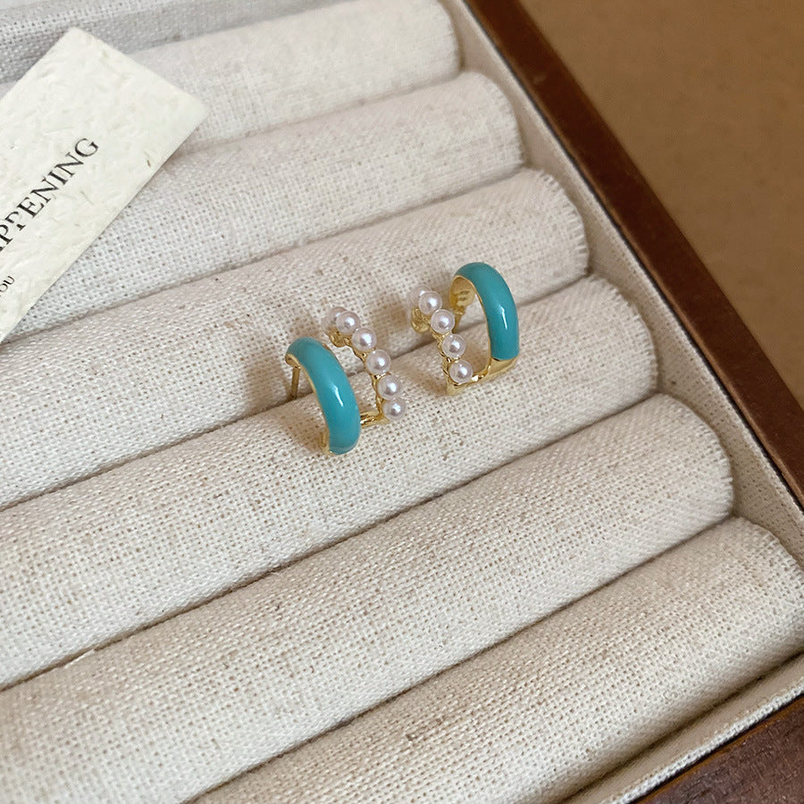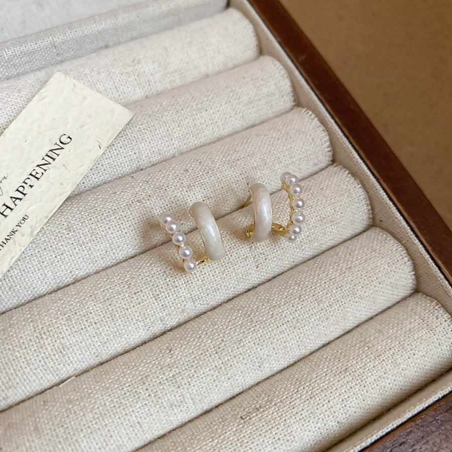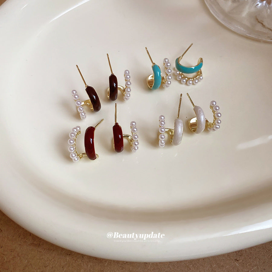 A廠【HE27542】925銀針滴油C型珍珠耳環夏季新款時尚通勤百搭耳環耳環設計感小眾女 25.07-1