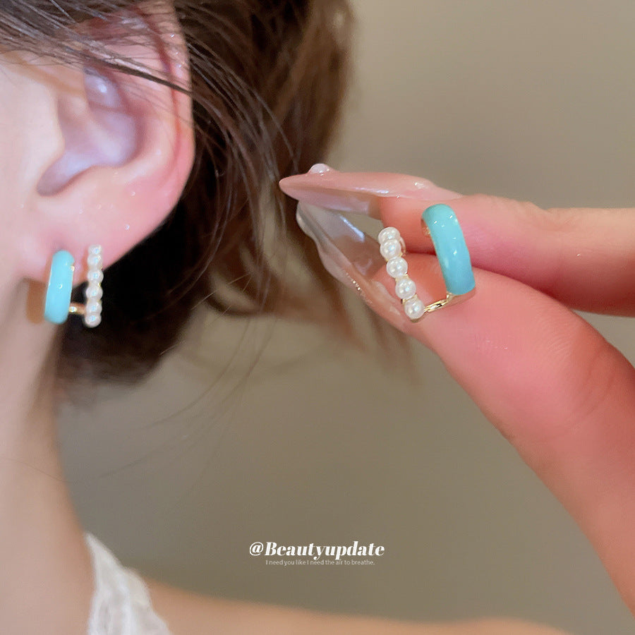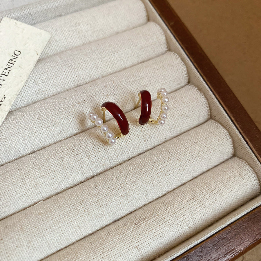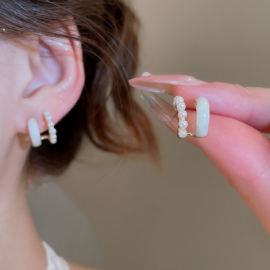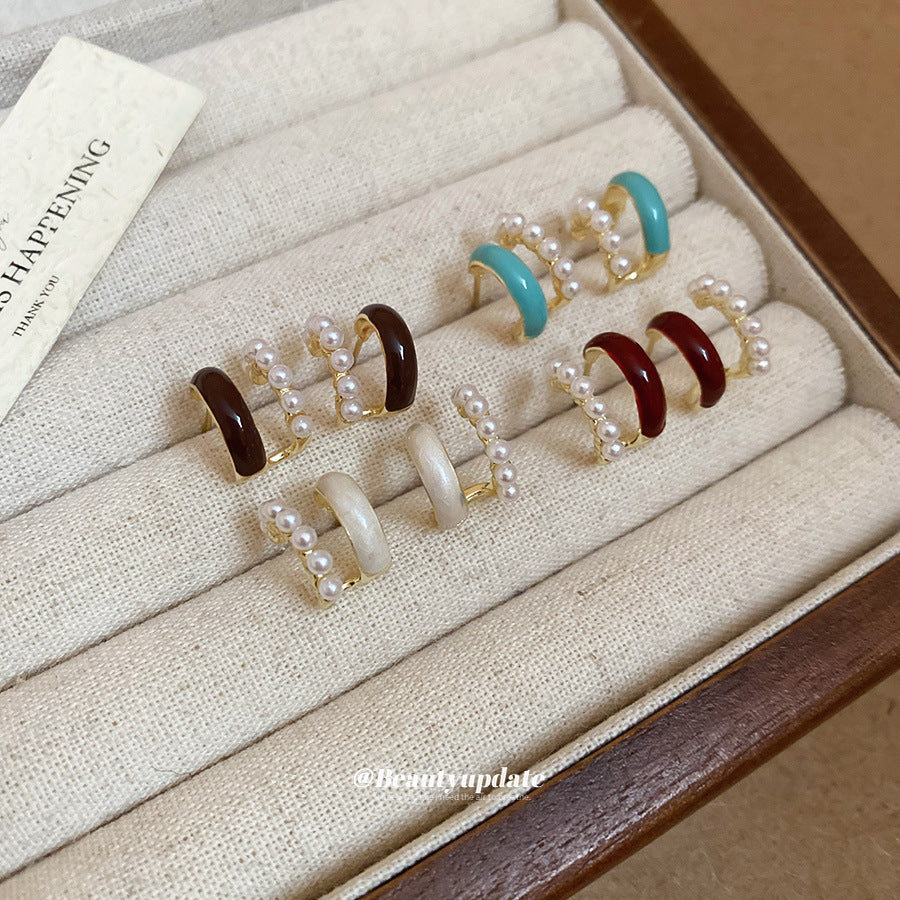 A廠【HE27542】925銀針滴油C型珍珠耳環夏季新款時尚通勤百搭耳環耳環設計感小眾女 25.07-1