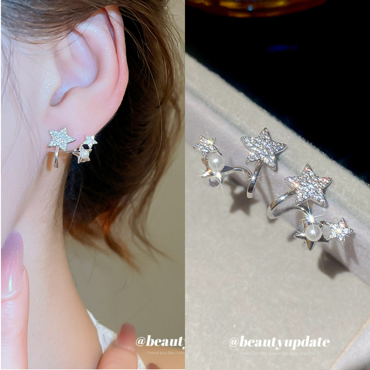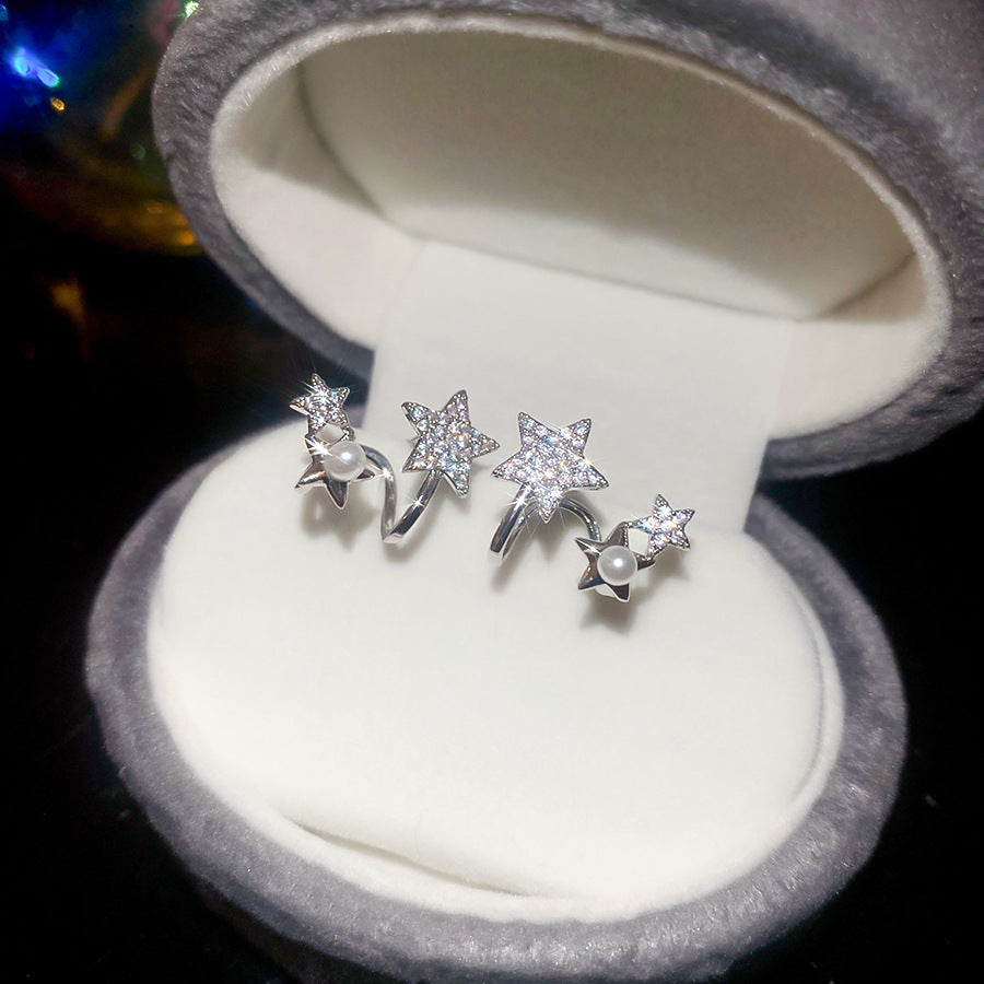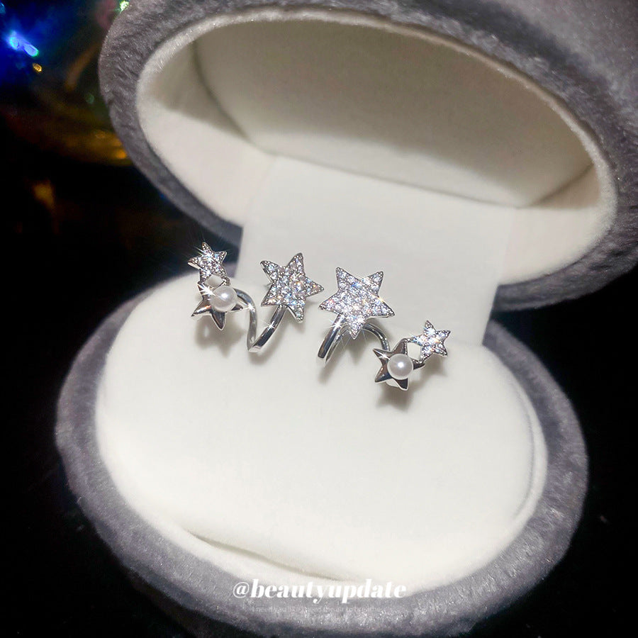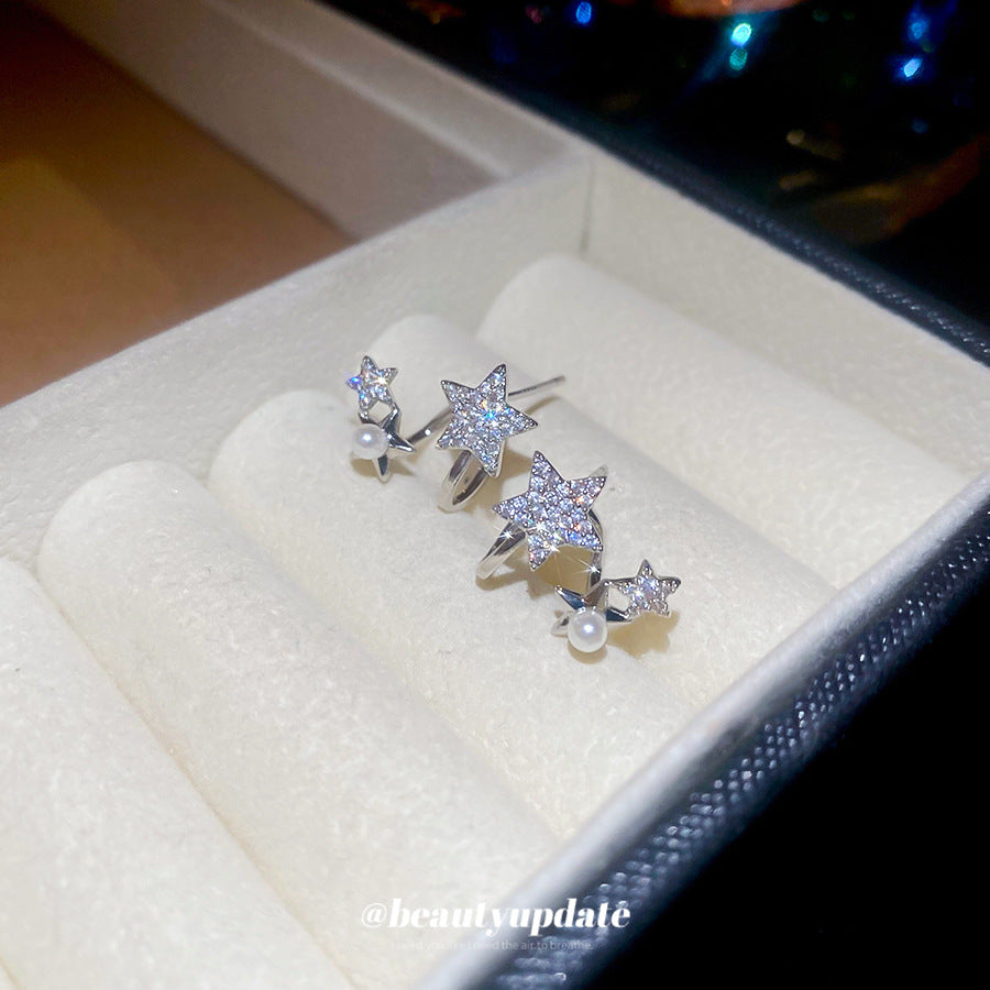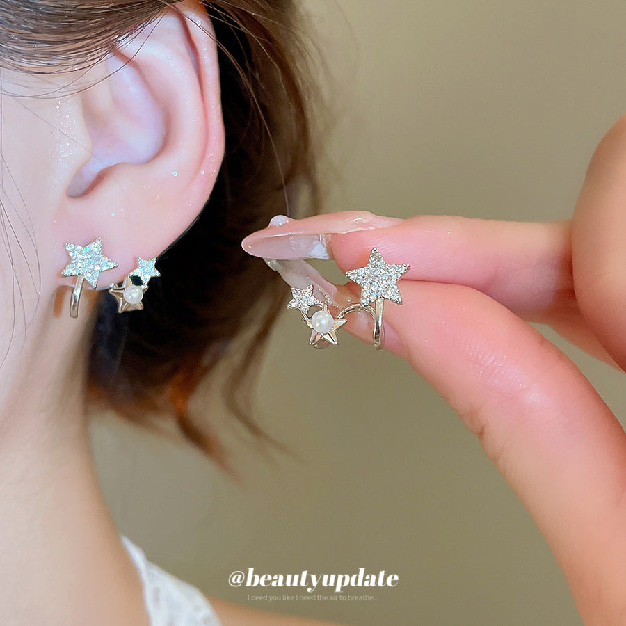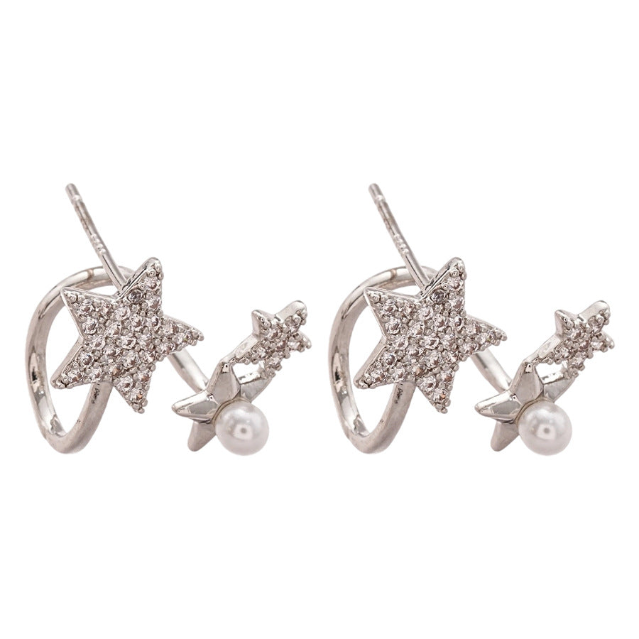 A廠【HE27568】925銀針鋯石星星珍珠耳環氣質簡約通勤耳環輕奢高級感耳飾設計感小眾 25.07-2