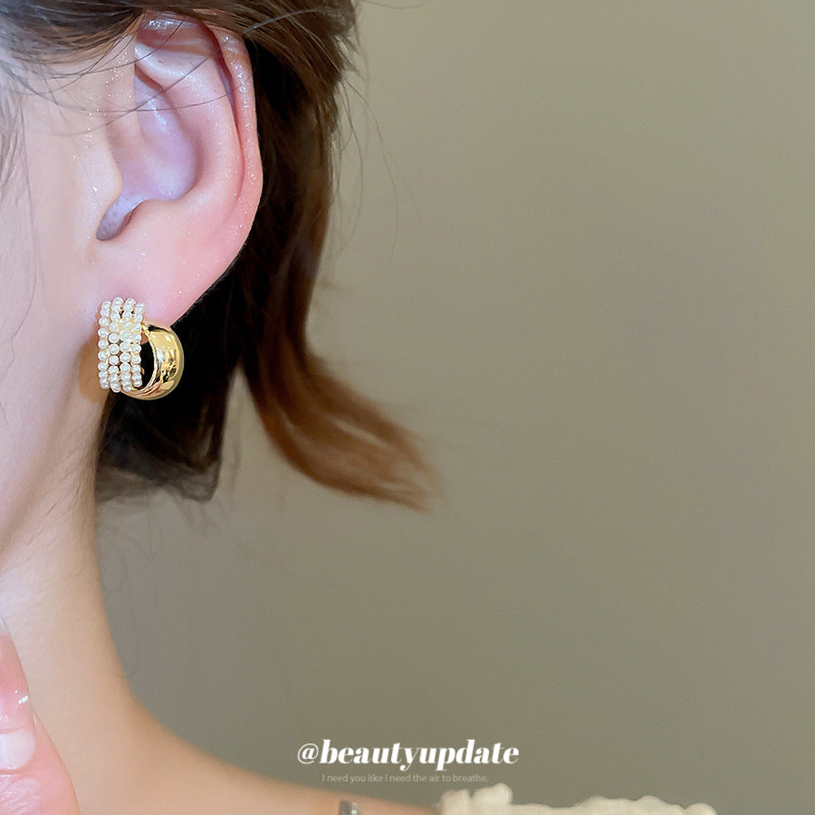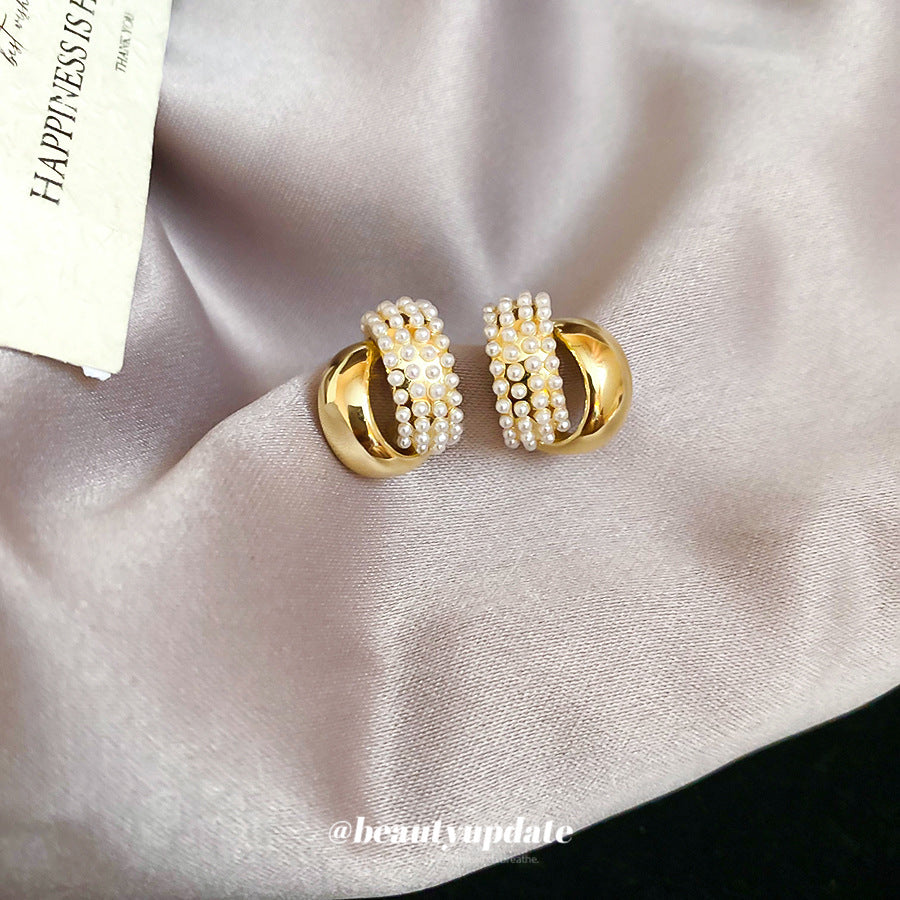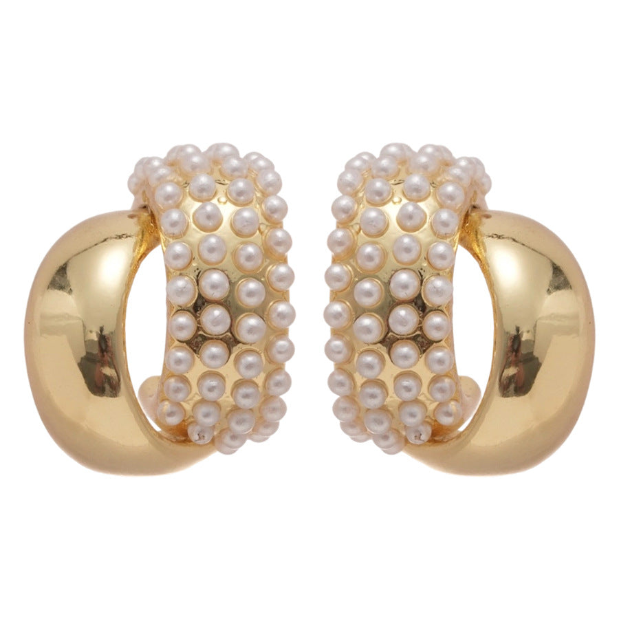 A廠【HE27587】925銀針C形珍珠圓耳環法式優雅氣質耳環時尚簡約耳環設計感小眾女 25.07-1